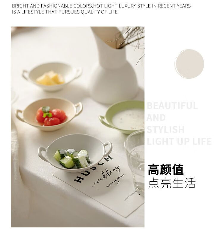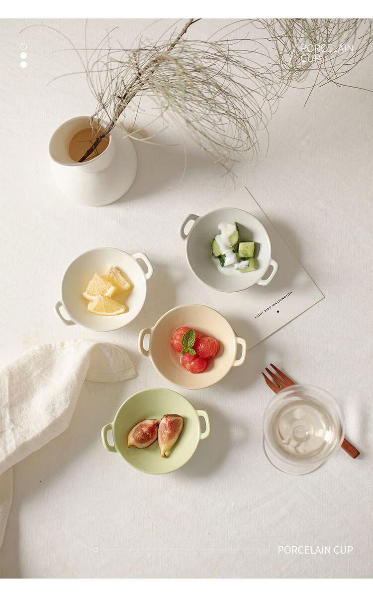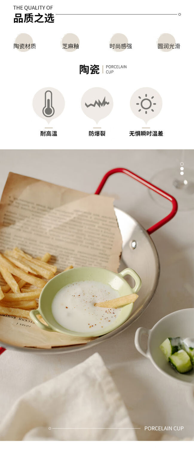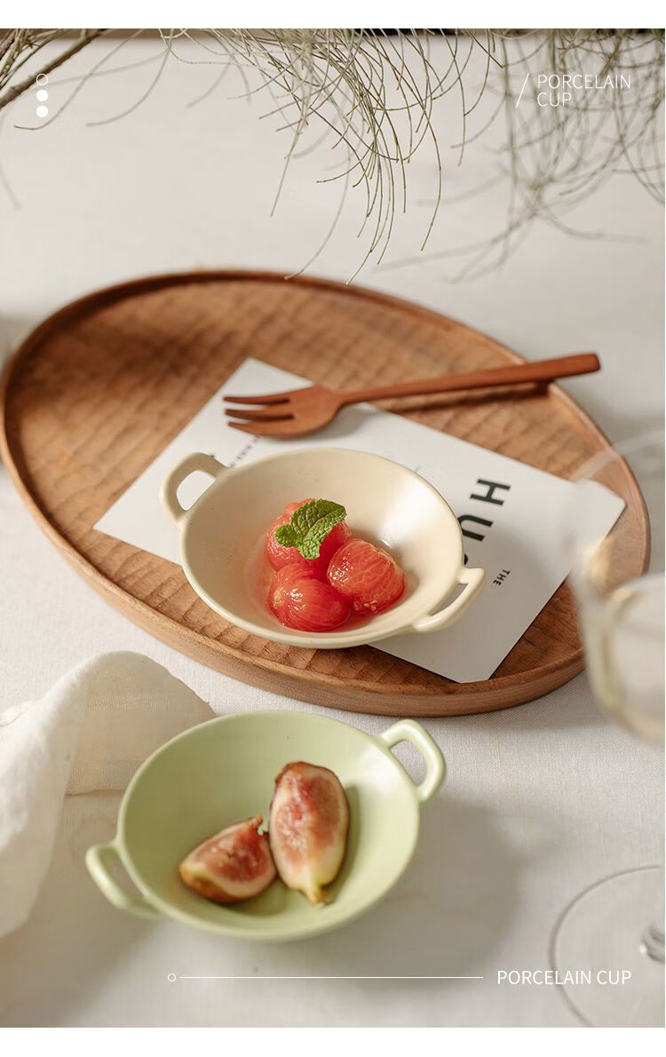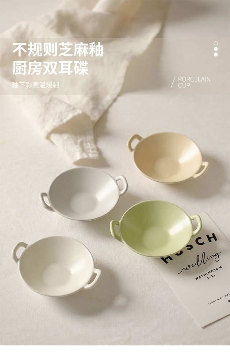 蘸料碟味碟调料碟小碟子调味碟酱料碟小号碗ins陶瓷家用INS风餐具 迷你双耳锅绿色1个装