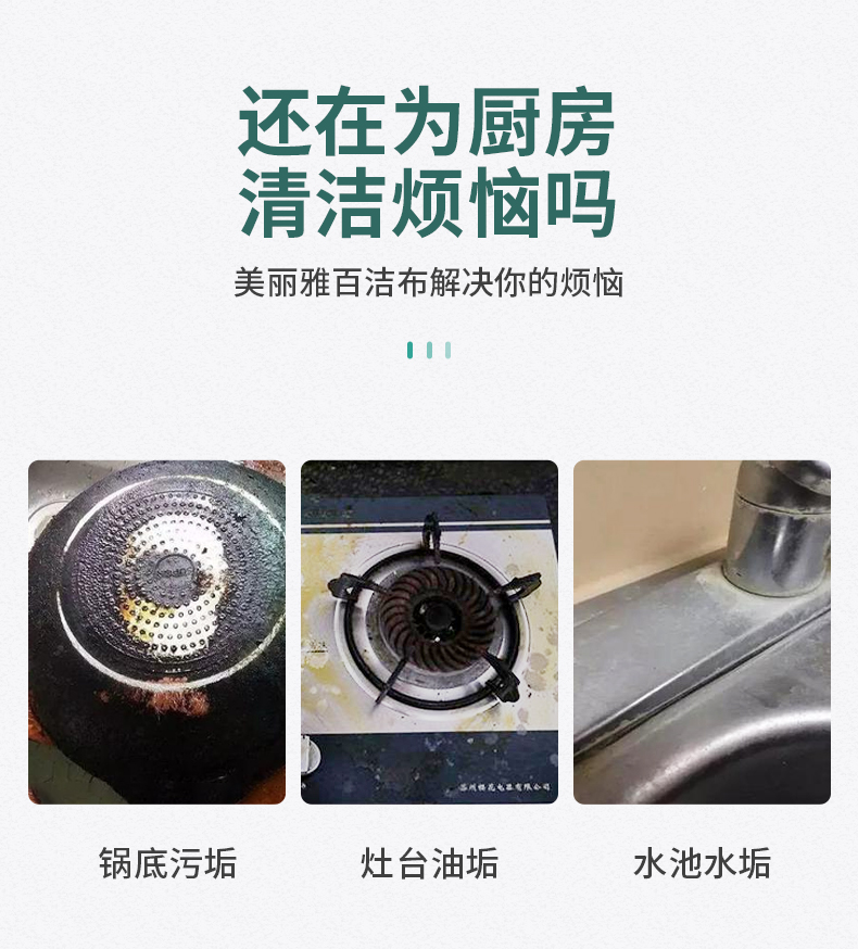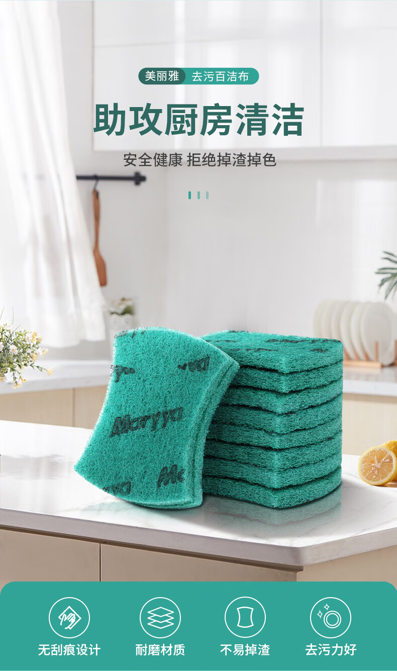 美丽雅强力去污百洁布 易清洗金刚砂擦锅洗碗除重垢清洁抹布 15片