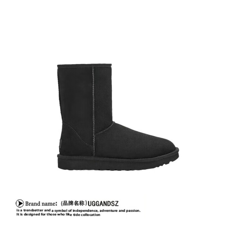 UGG EVERSHEEPSKINS雪地靴女经典基础款羊皮毛一体短筒短靴棉鞋雪地鞋 黑色中筒 6223 40