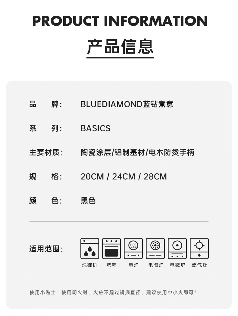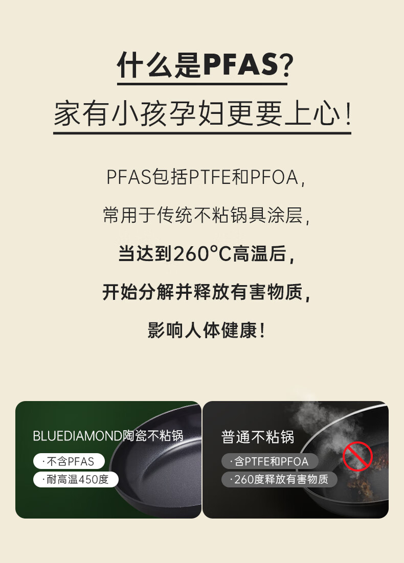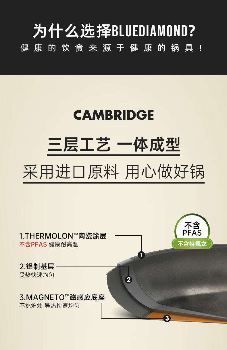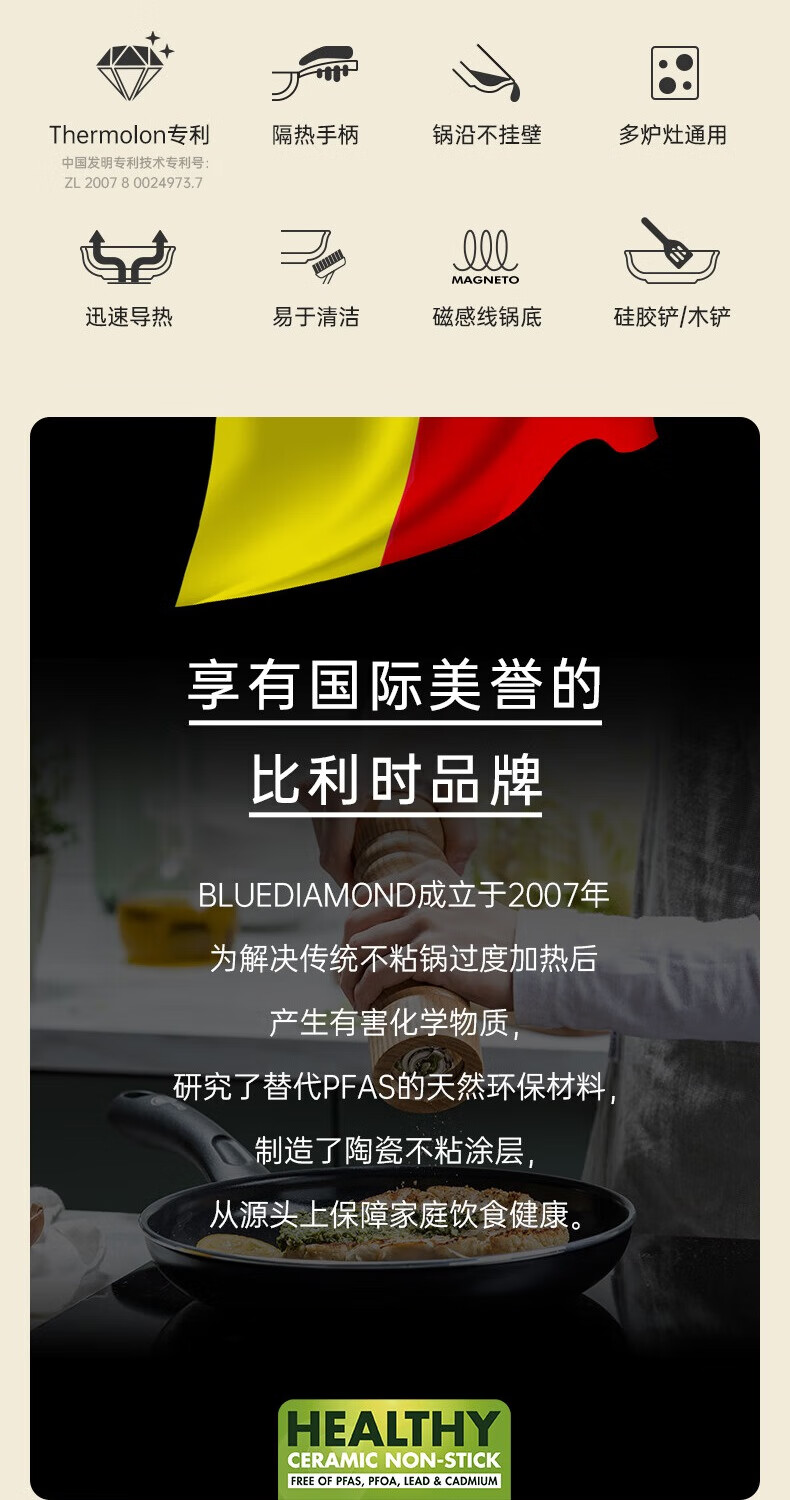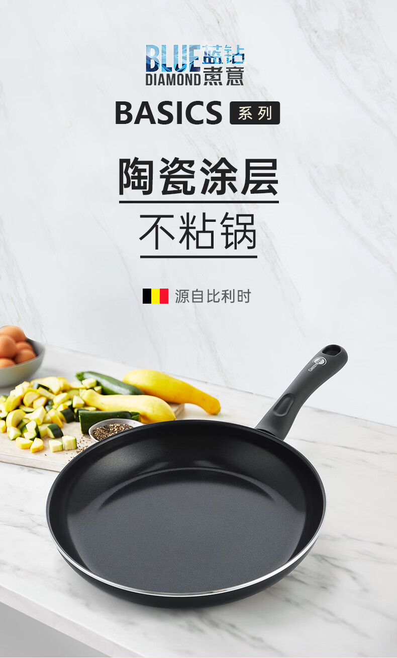 BLUE DIAMOND蓝钻煮意 不粘锅平底锅家用陶瓷早餐锅煎饼烙饼煎牛排煎鸡蛋煎锅 平底煎锅 30cm