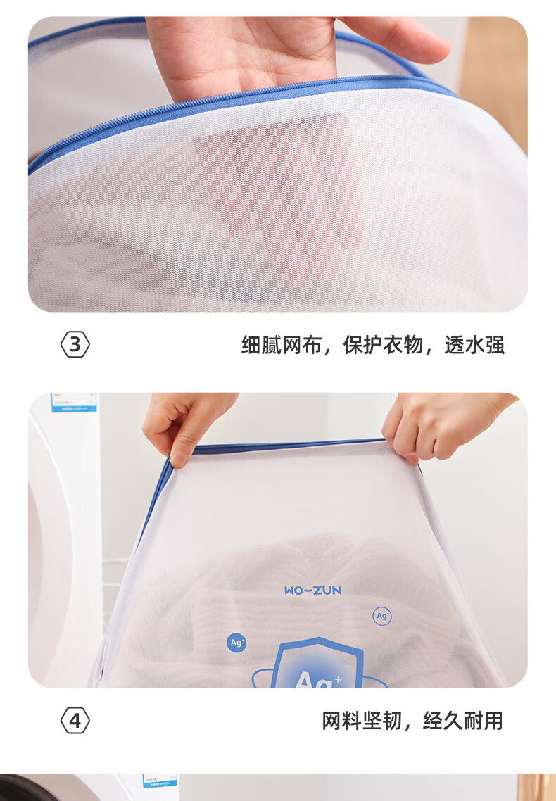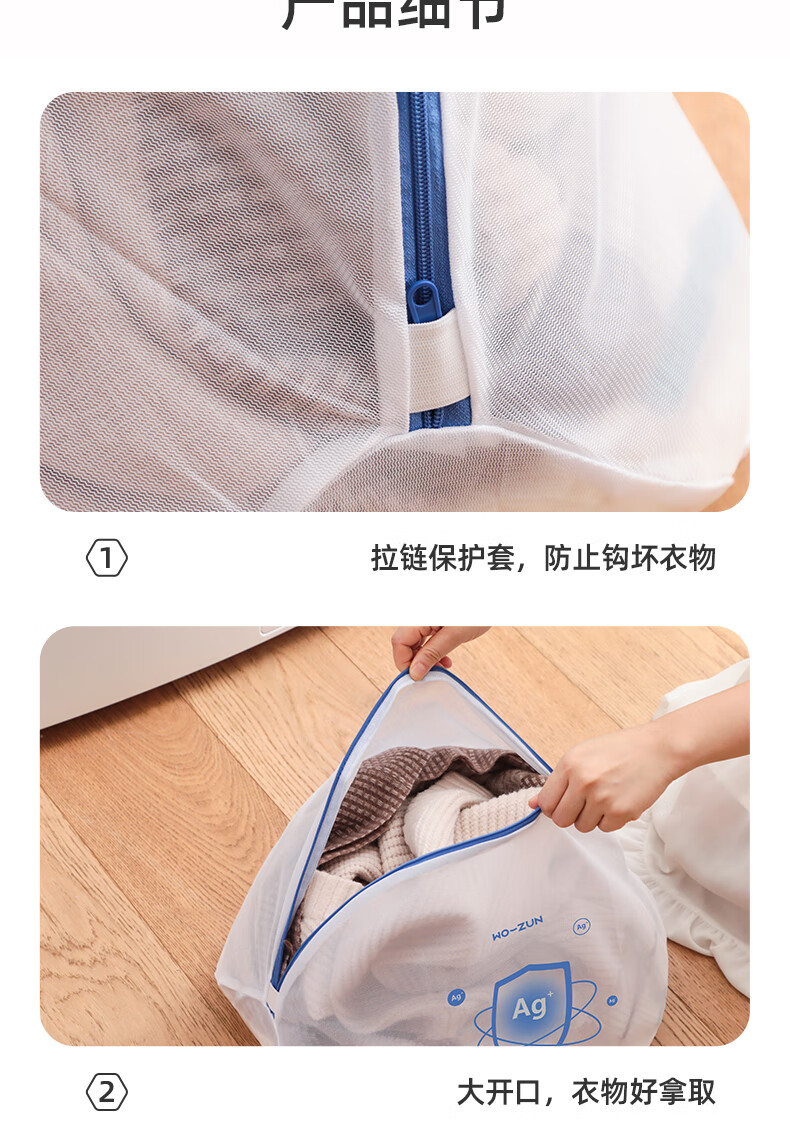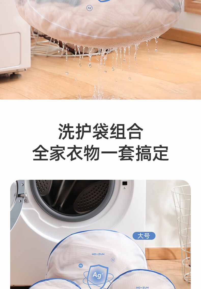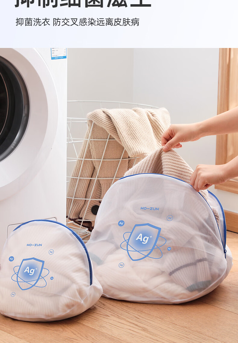 沃尊洗衣袋洗衣机专用防变形抗菌毛衣羊毛衫护洗袋细网洗衣服内衣网袋 立体3件套【大+中+文胸】抗菌款