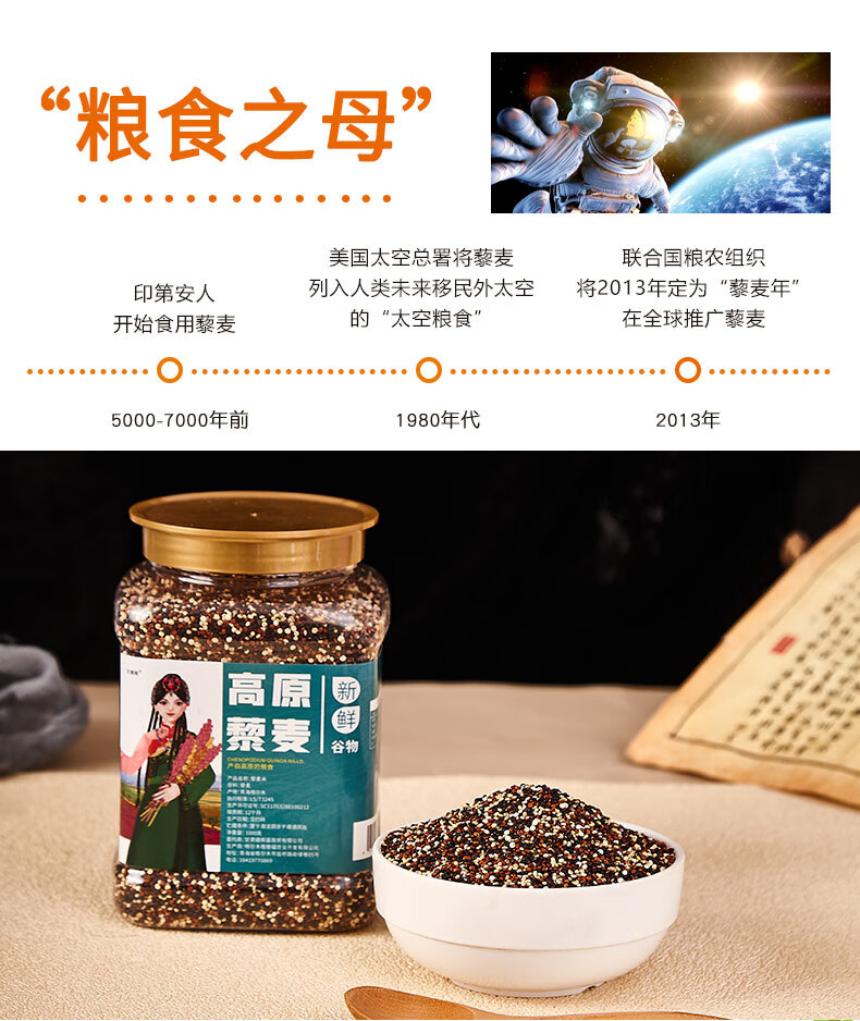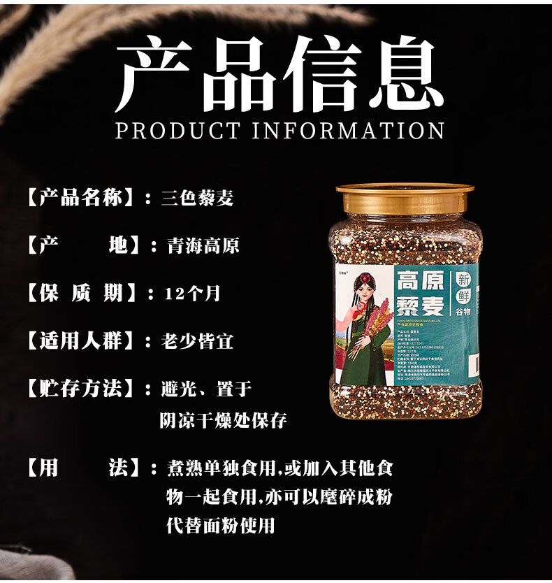 甘健辉青海三色藜麦 高品质藜麦米1KG罐装 黎麦 五谷杂粮粗粮代餐