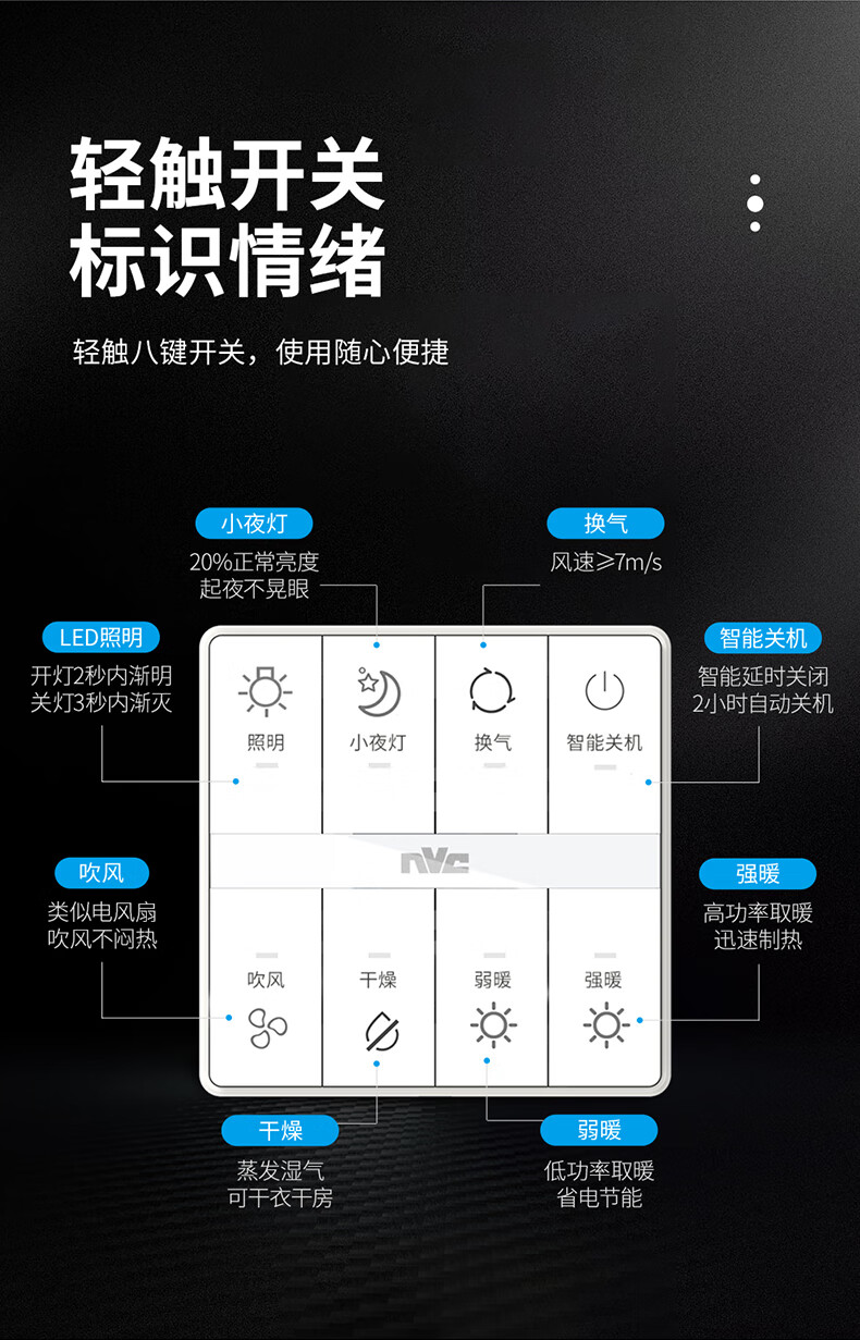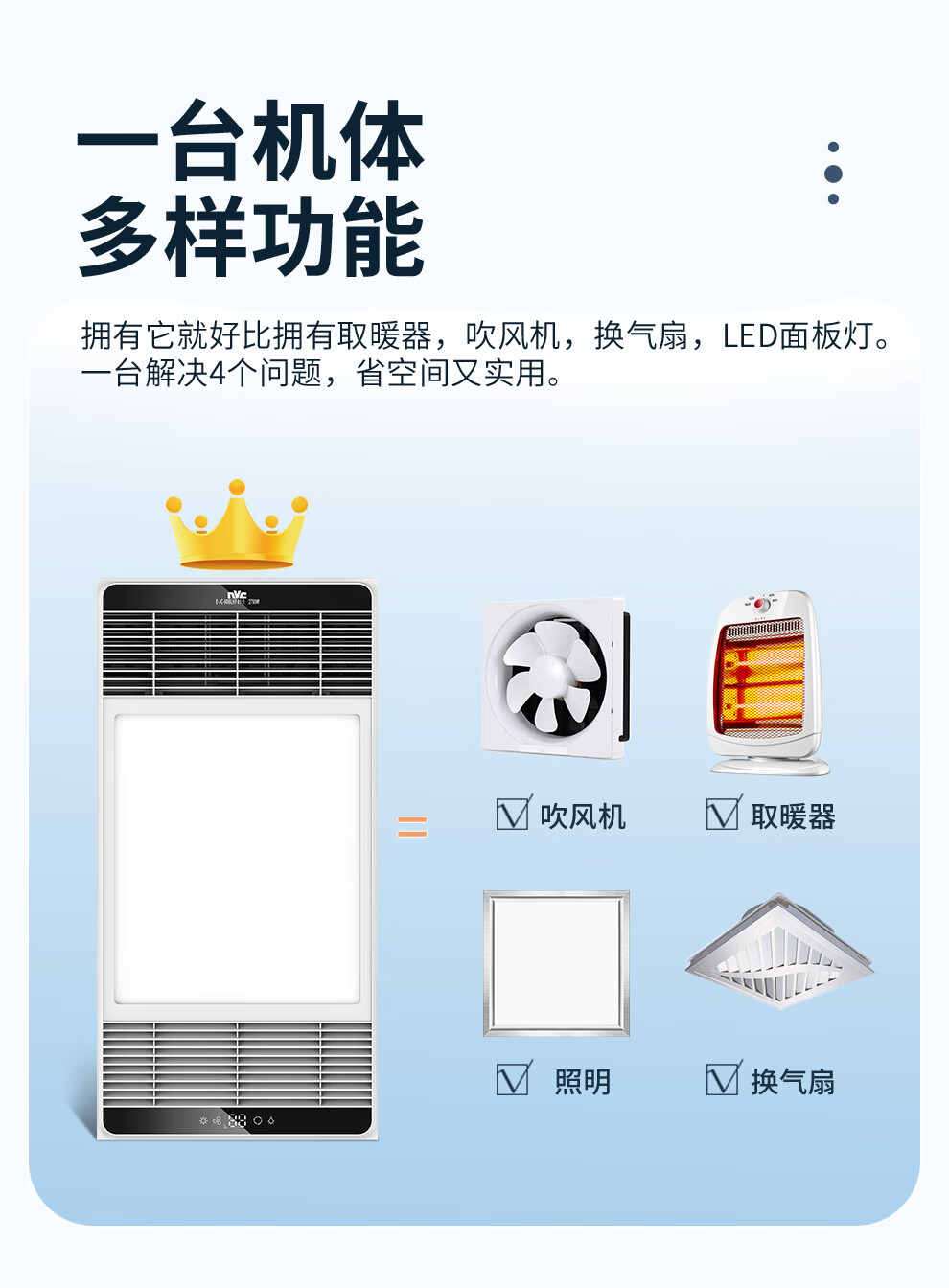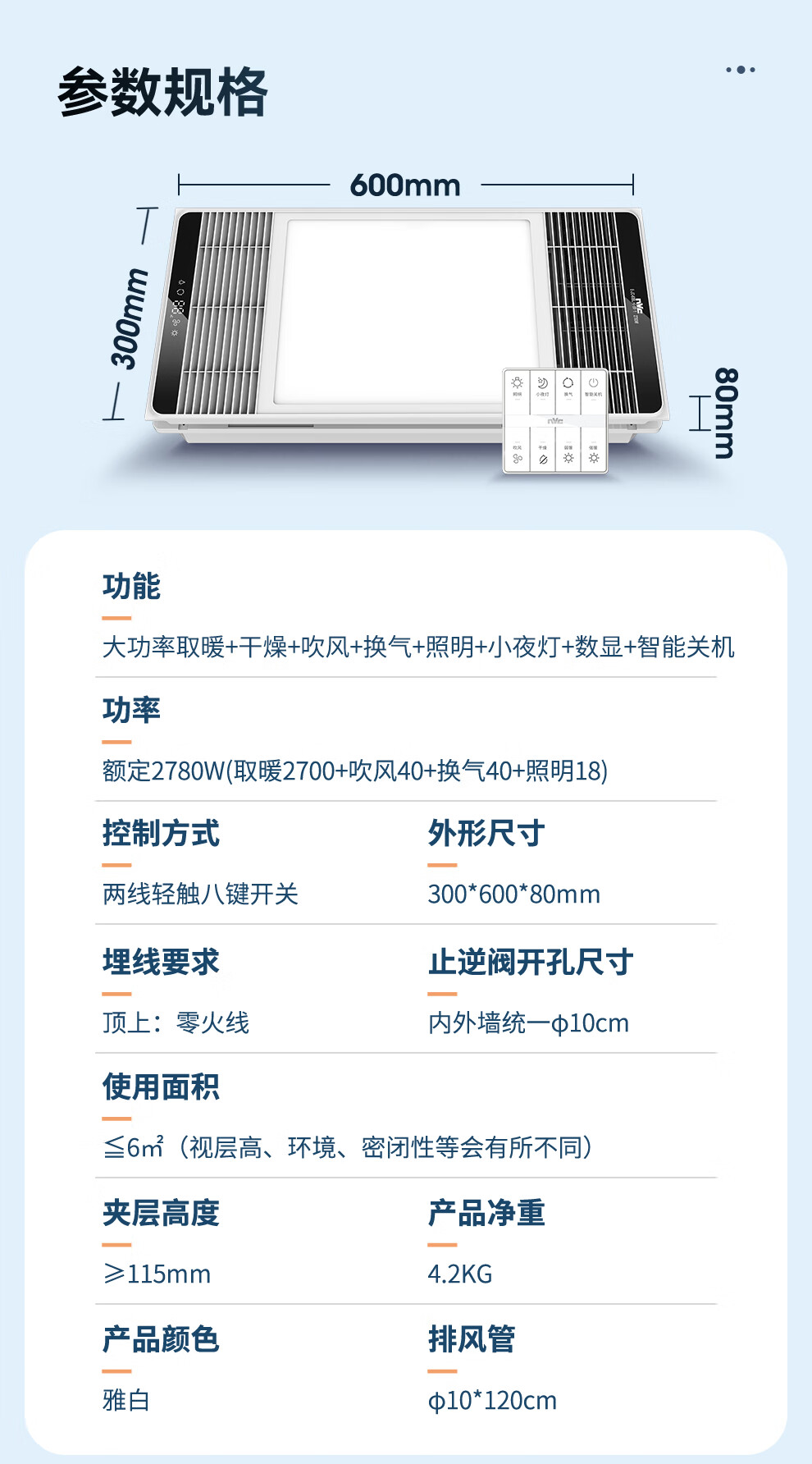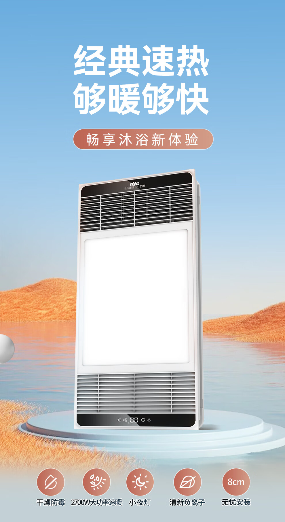 雷士(NVC)浴霸风暖大功率集成吊顶暖风机排气扇照明灯一体卫生间浴室Y295 【2700W】8cm轻薄机身