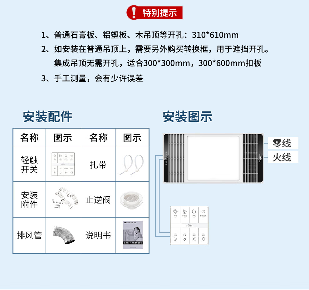 海尔(Haier)海尔风暖浴霸卫生间暖风照明排气一体机浴室集成吊顶 FS3