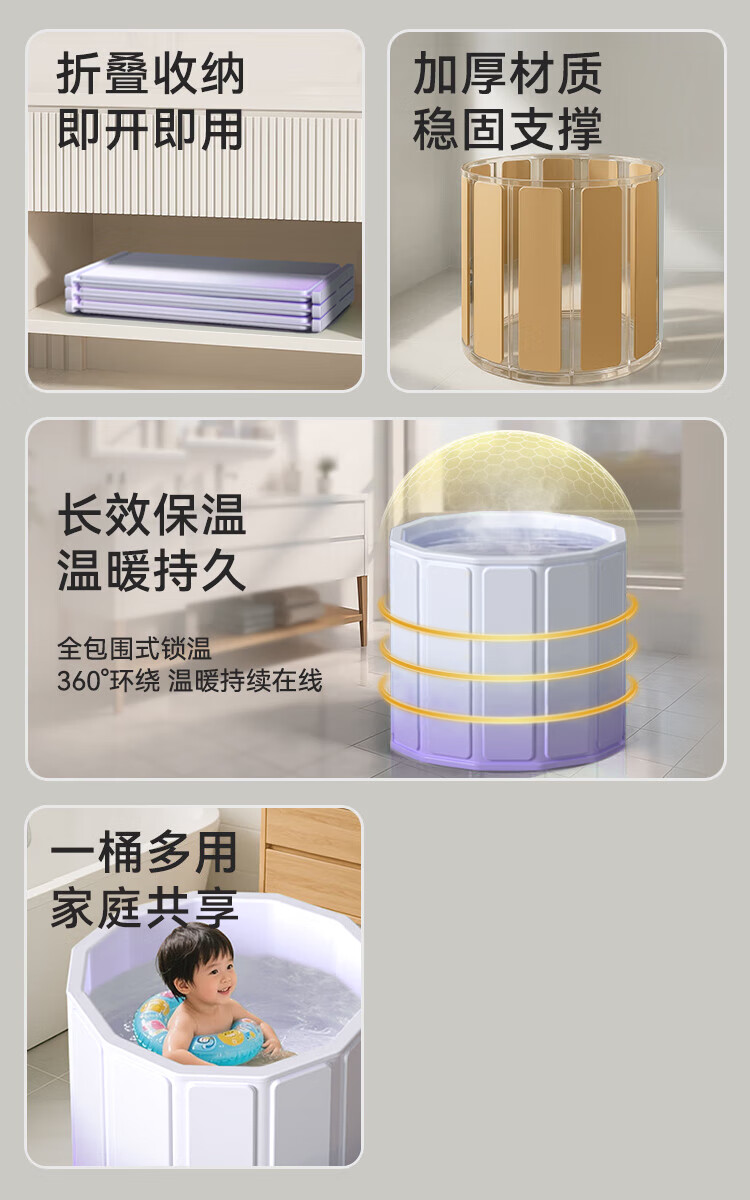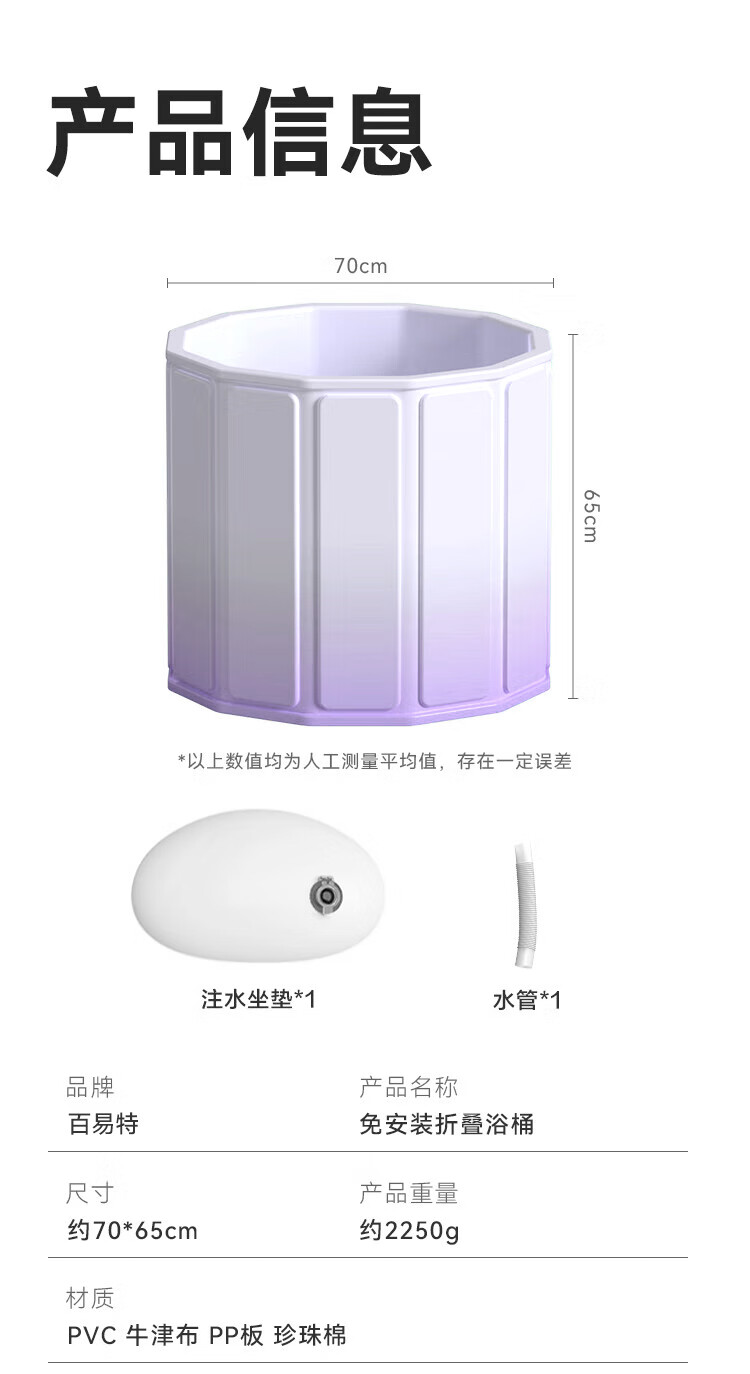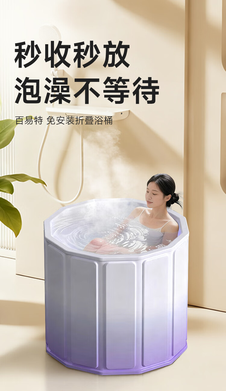 百易特成人折叠泡澡桶 婴儿浴盆浴缸儿童家用洗澡浴桶游泳桶 渐变紫