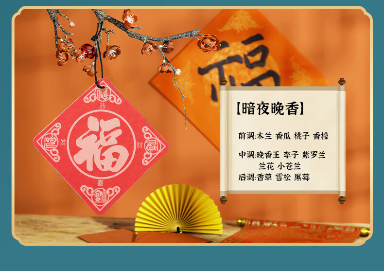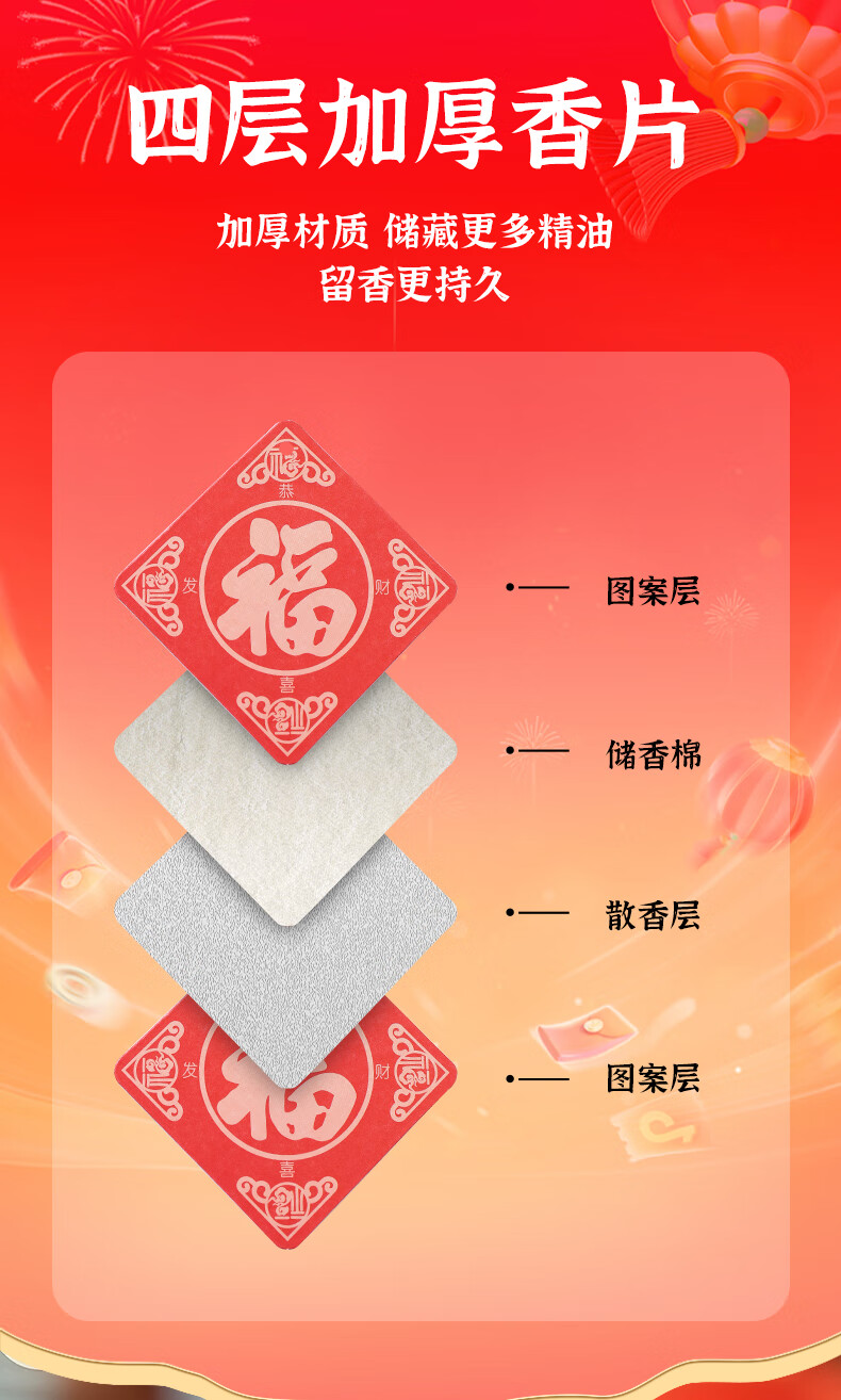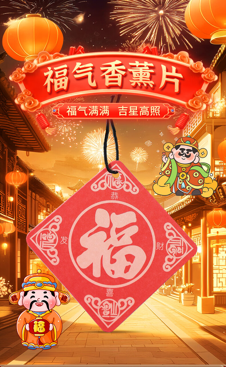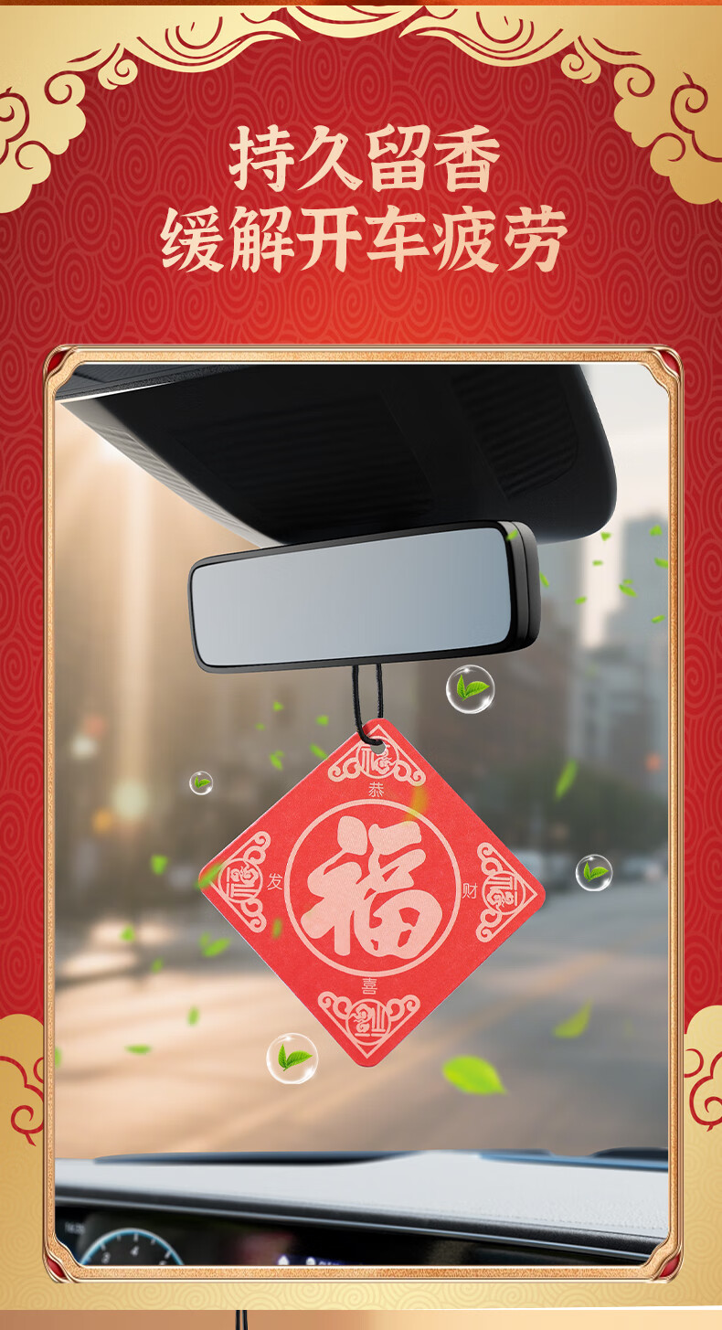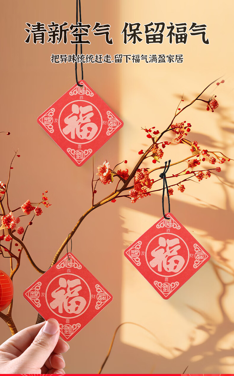 福字车载香薰香片过年车内挂件挂饰香水片春节房间留香去异味香氛 【3片装】福到了随机香味