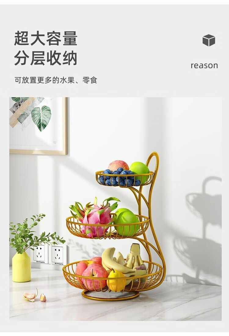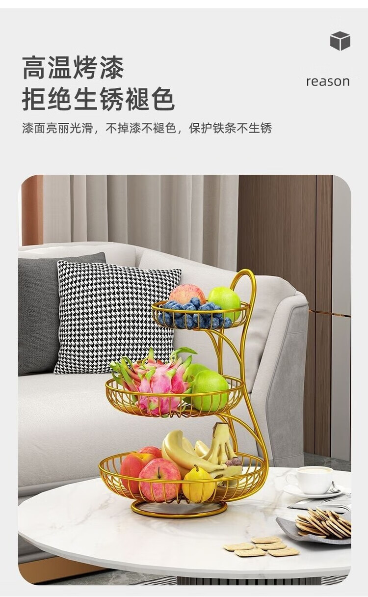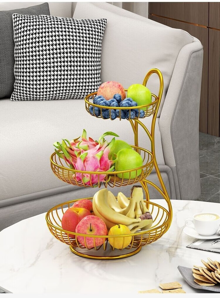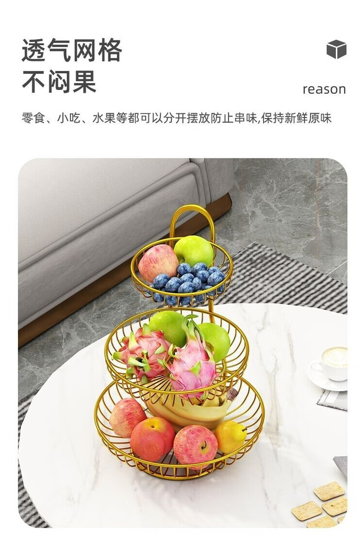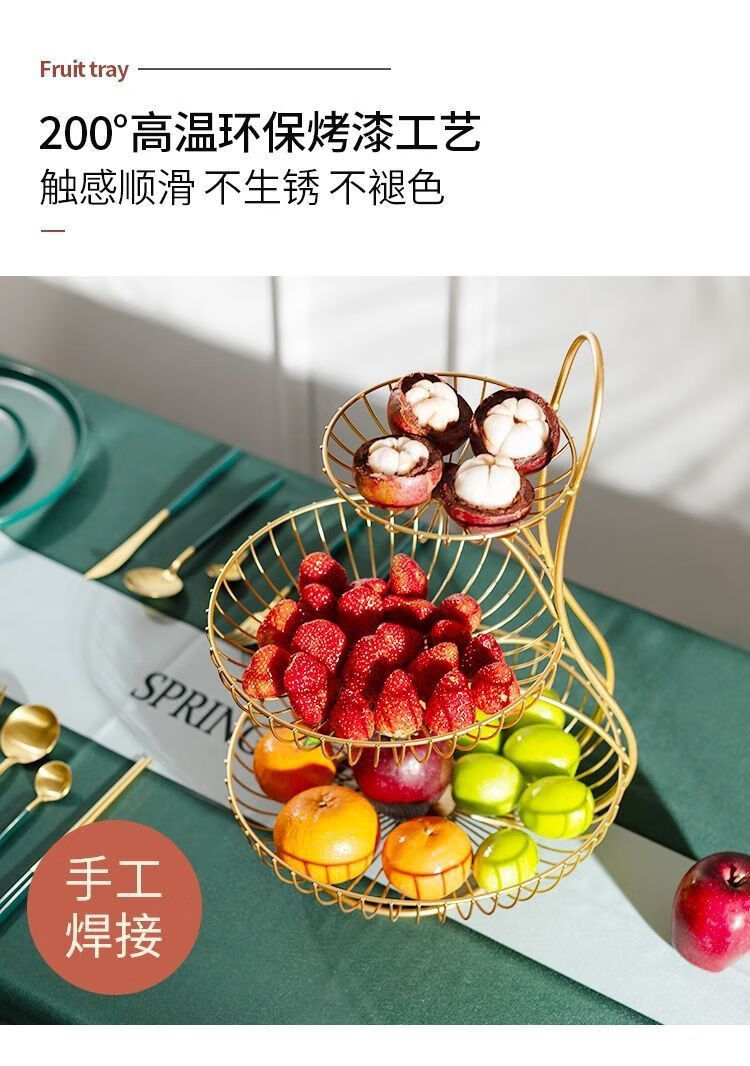 LZJV水果盘零食置物架餐桌收纳架客厅茶几糖果盘桌面轻奢水果果盘家用 金色两层