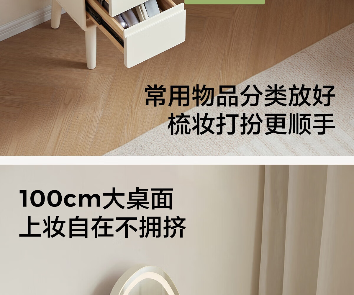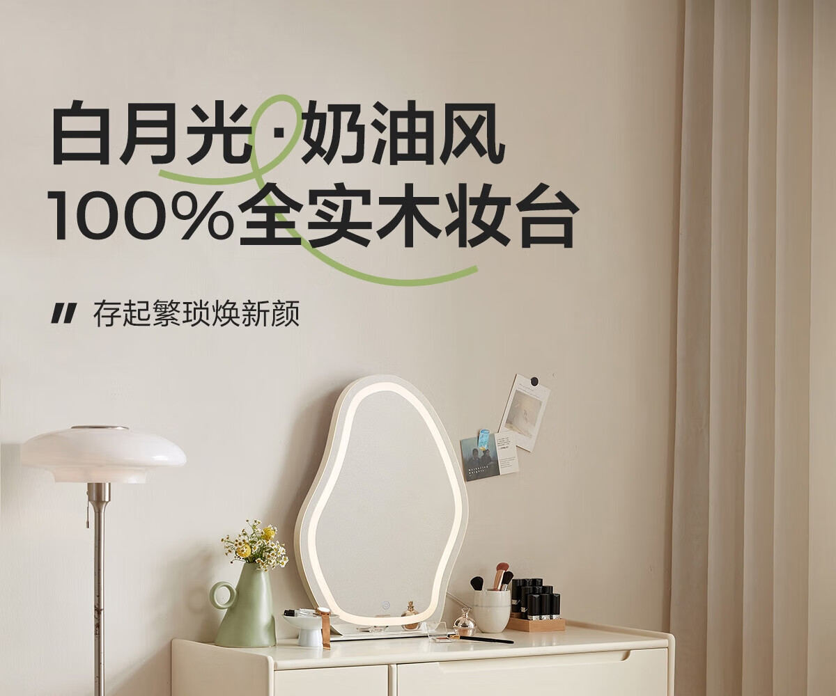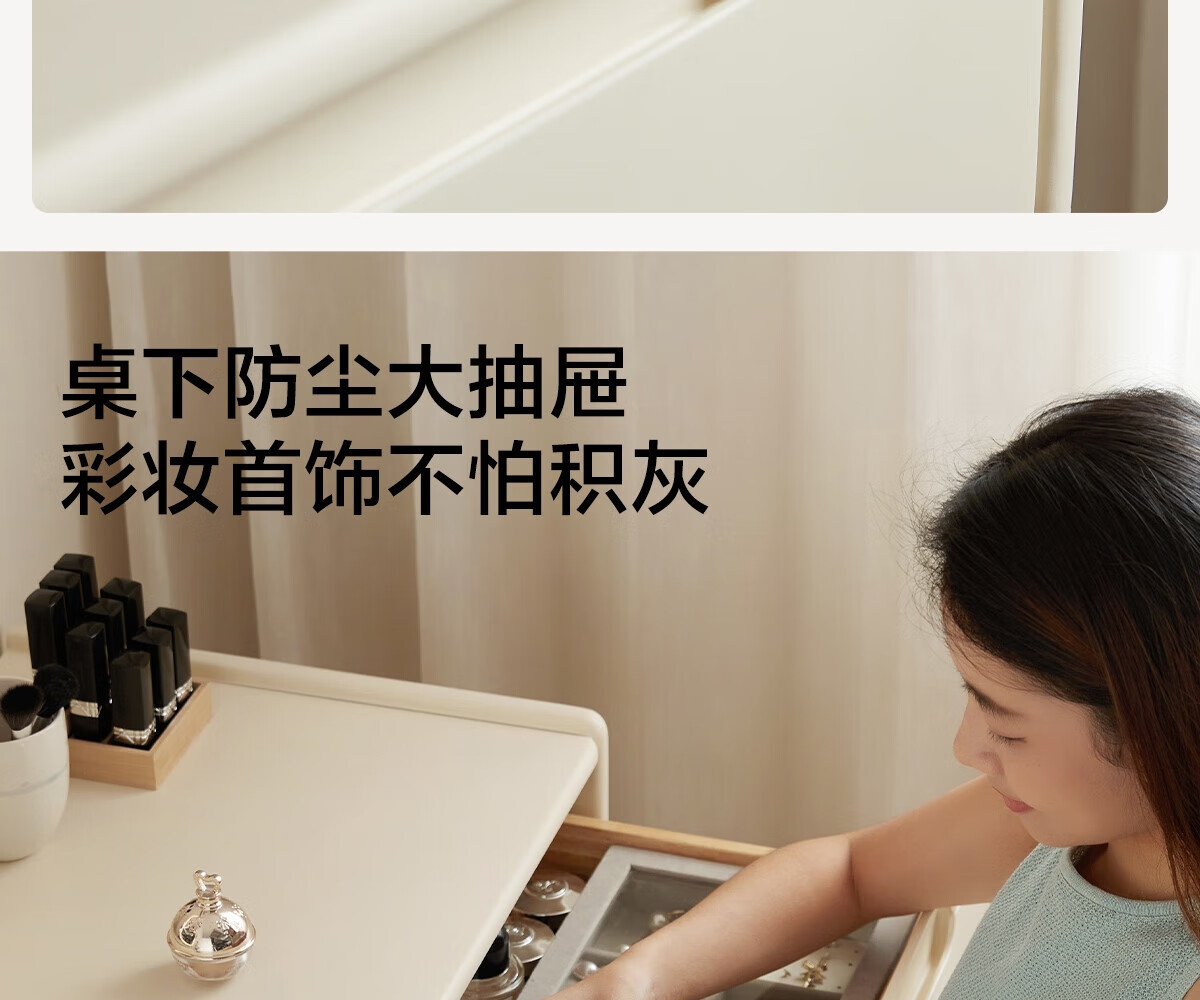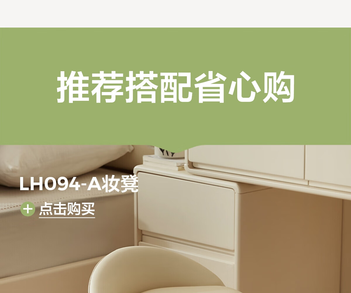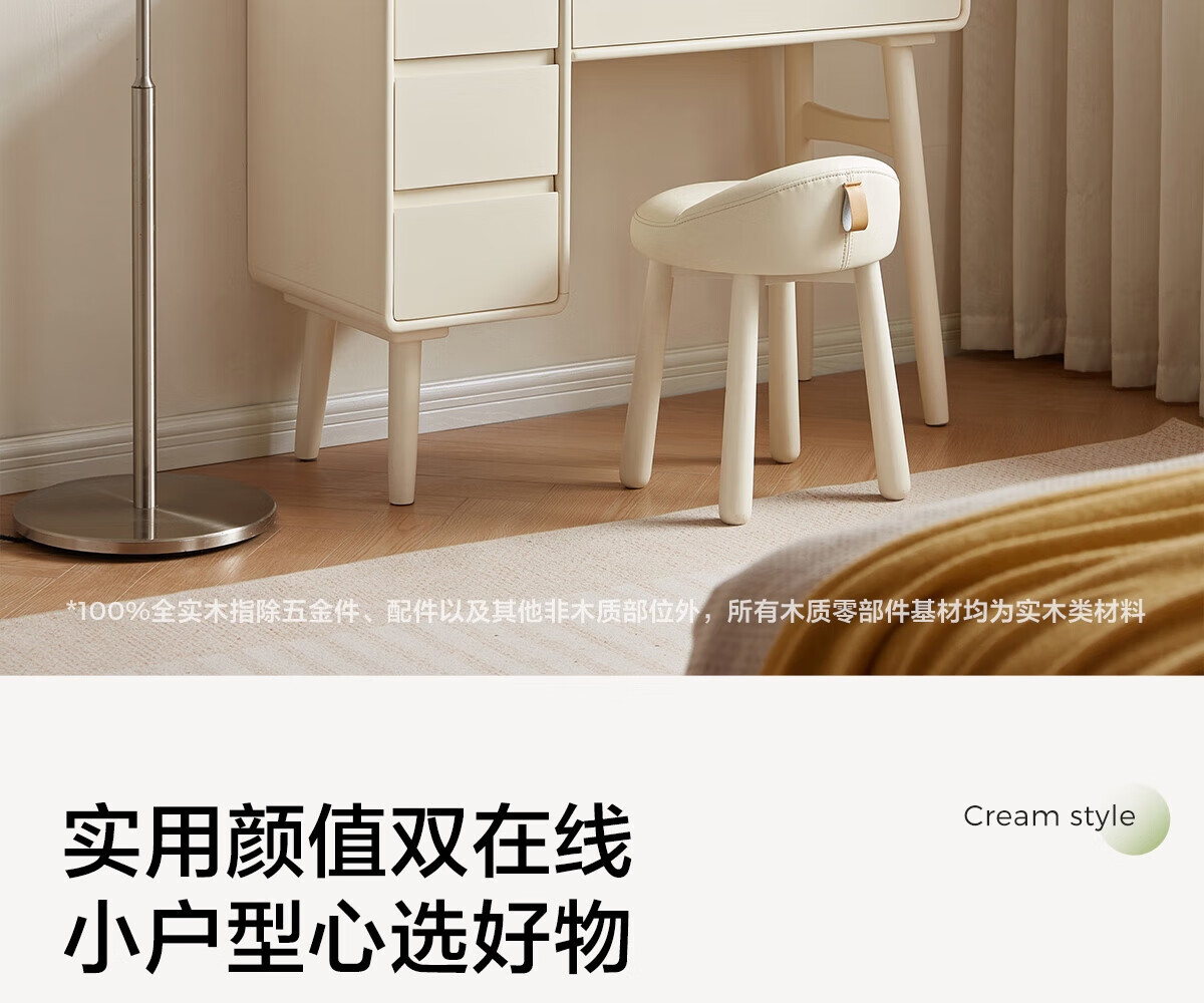 林氏家居奶油风全实木化妆桌梳妆台斗柜一体2025新款木业白月光LH094C10 【1.0m】全实木梳妆台+妆凳