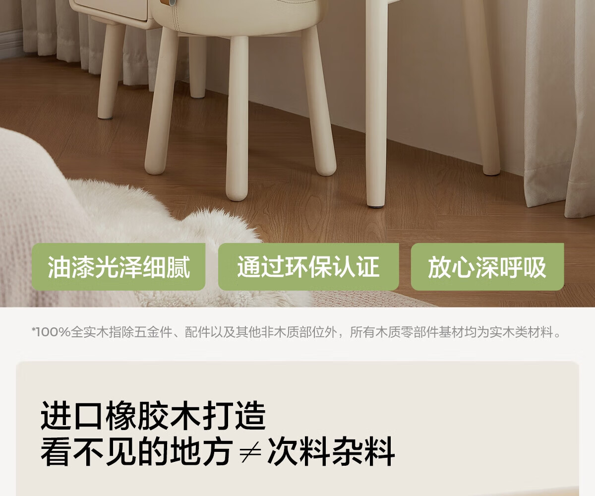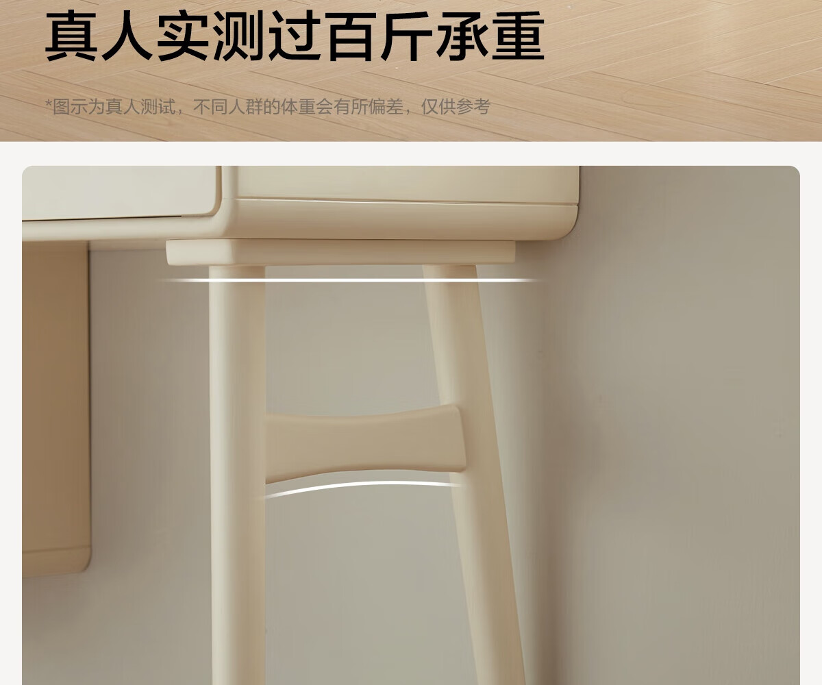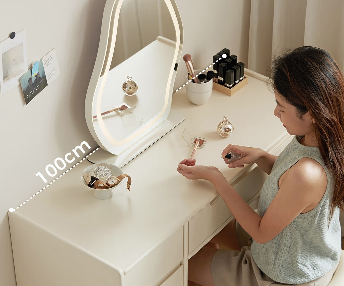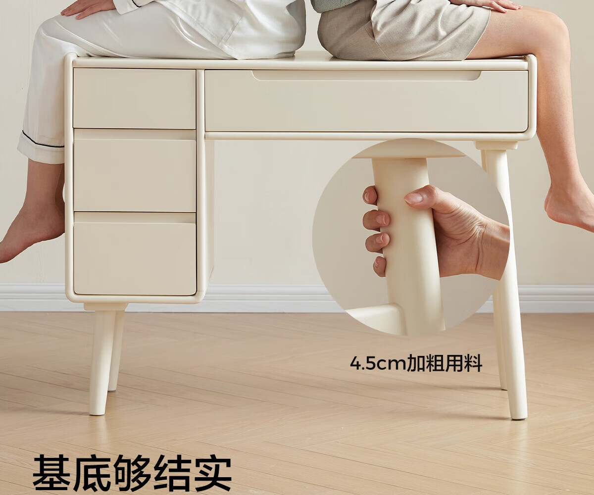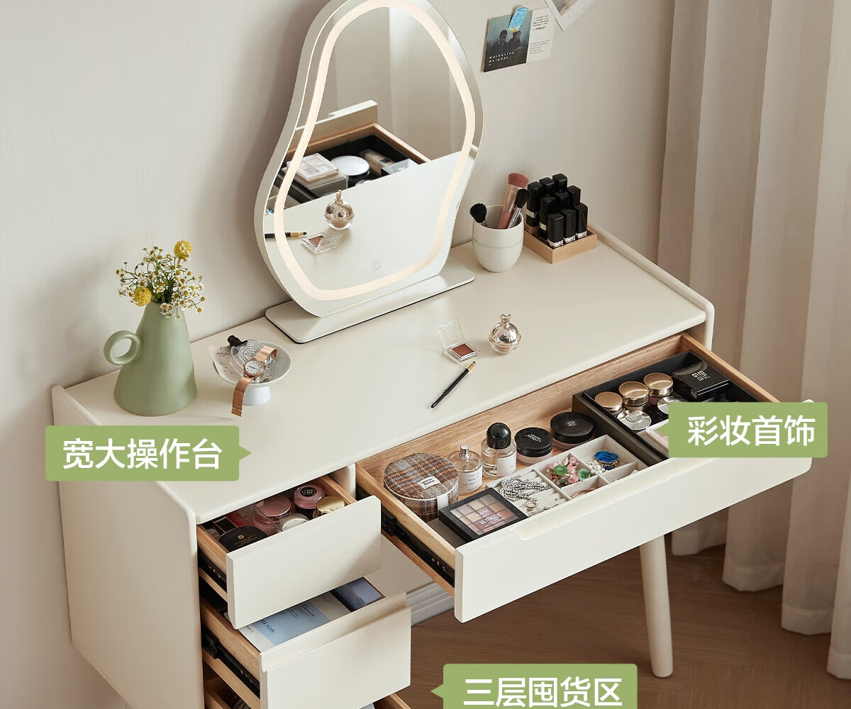 林氏家居奶油风全实木化妆桌梳妆台斗柜一体2025新款木业白月光LH094C10 【1.0m】全实木梳妆台+妆凳