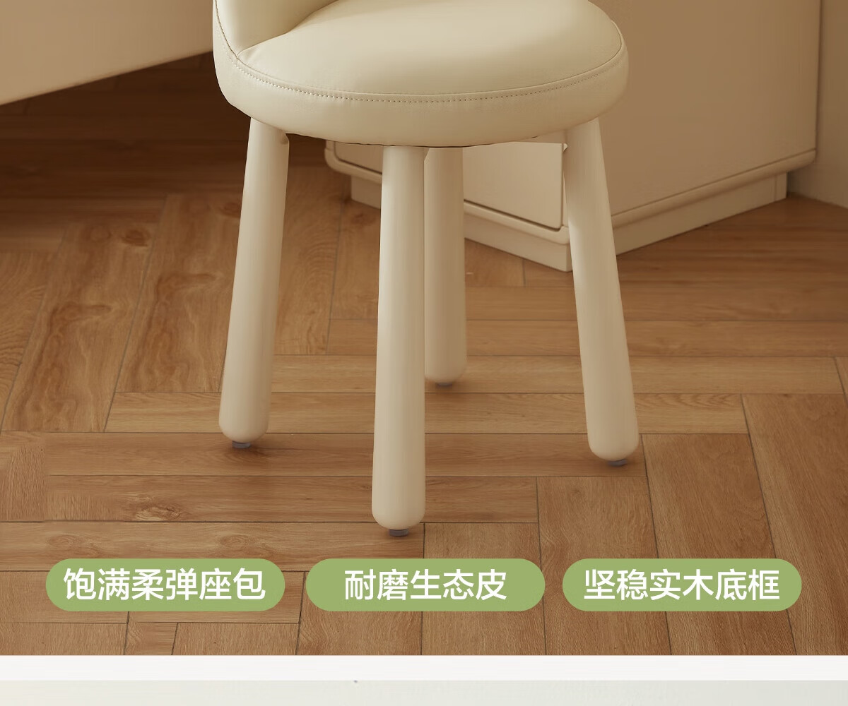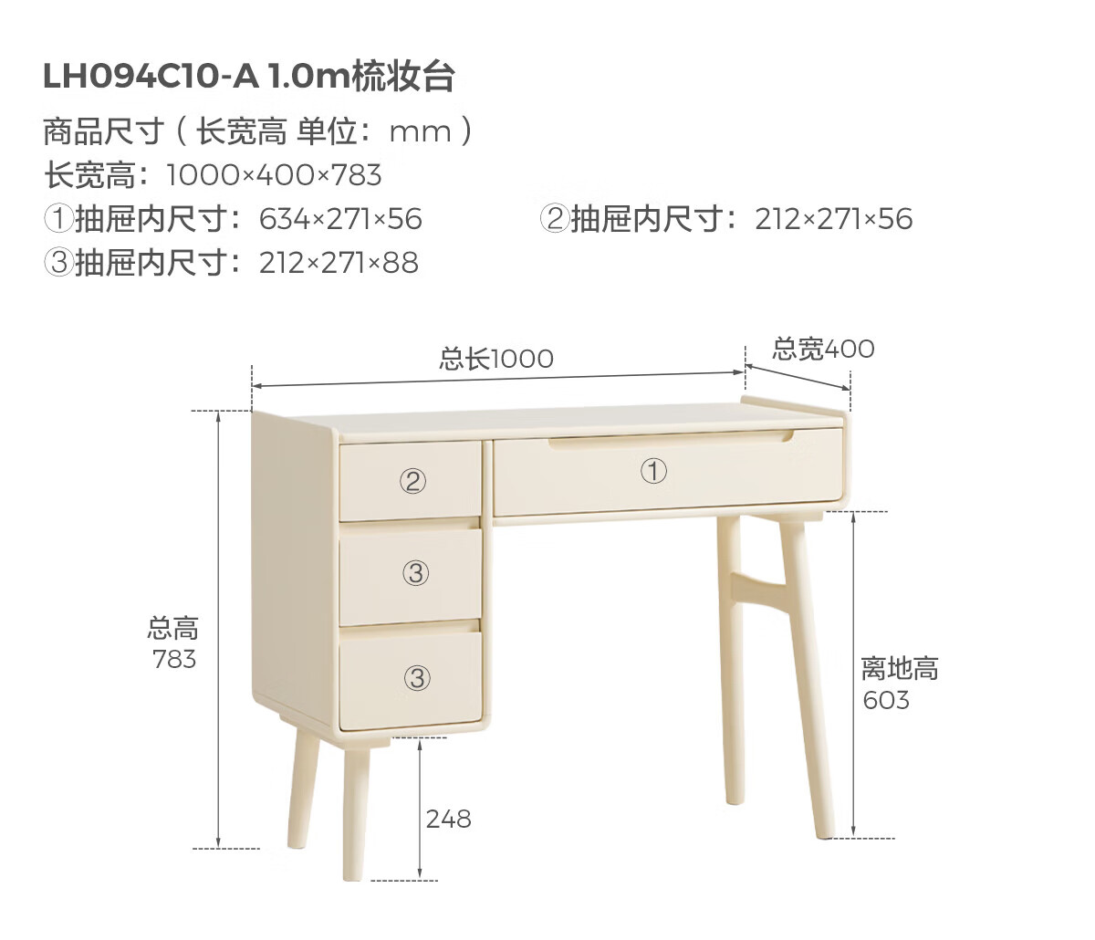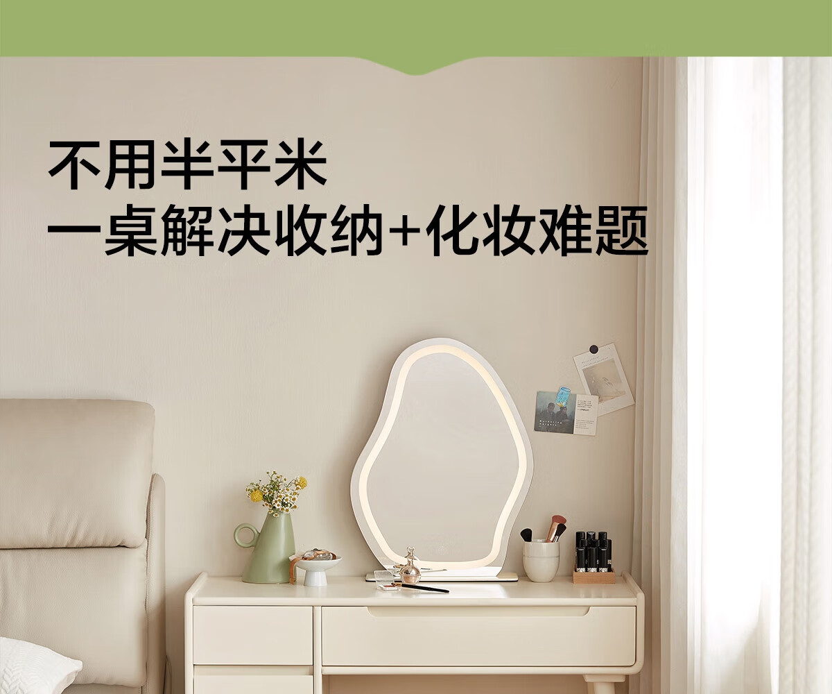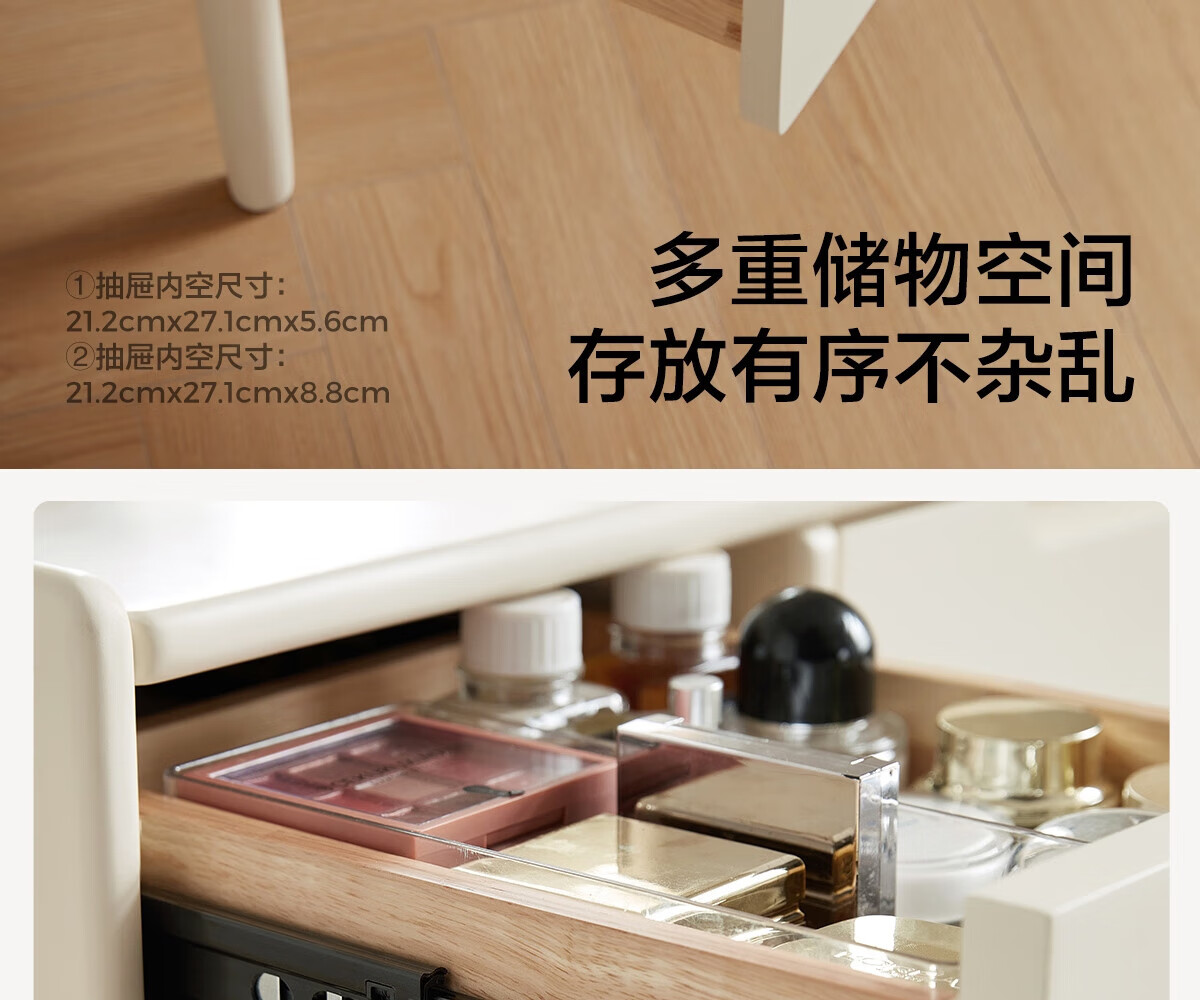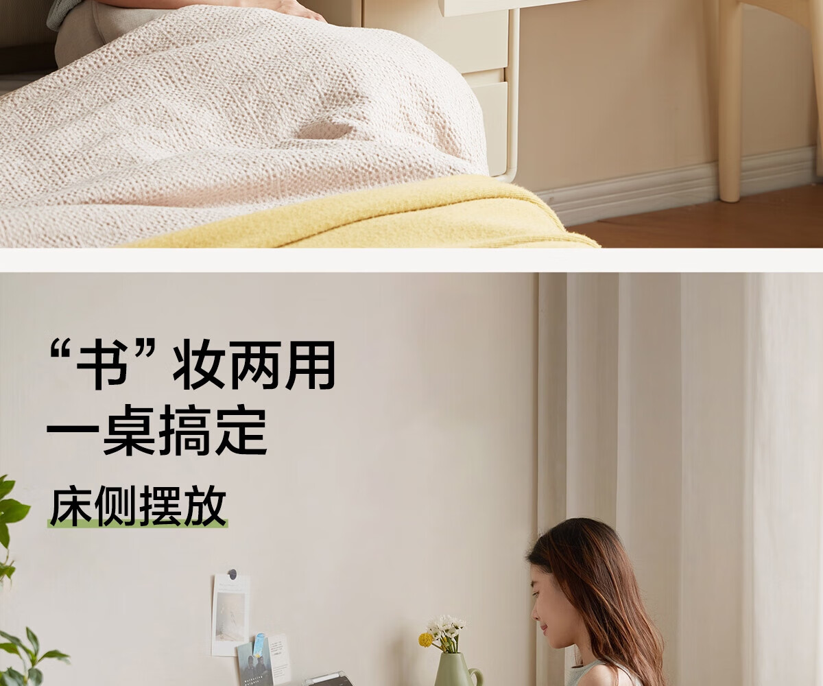 林氏家居奶油风全实木化妆桌梳妆台斗柜一体2025新款木业白月光LH094C10 【1.0m】全实木梳妆台+妆凳