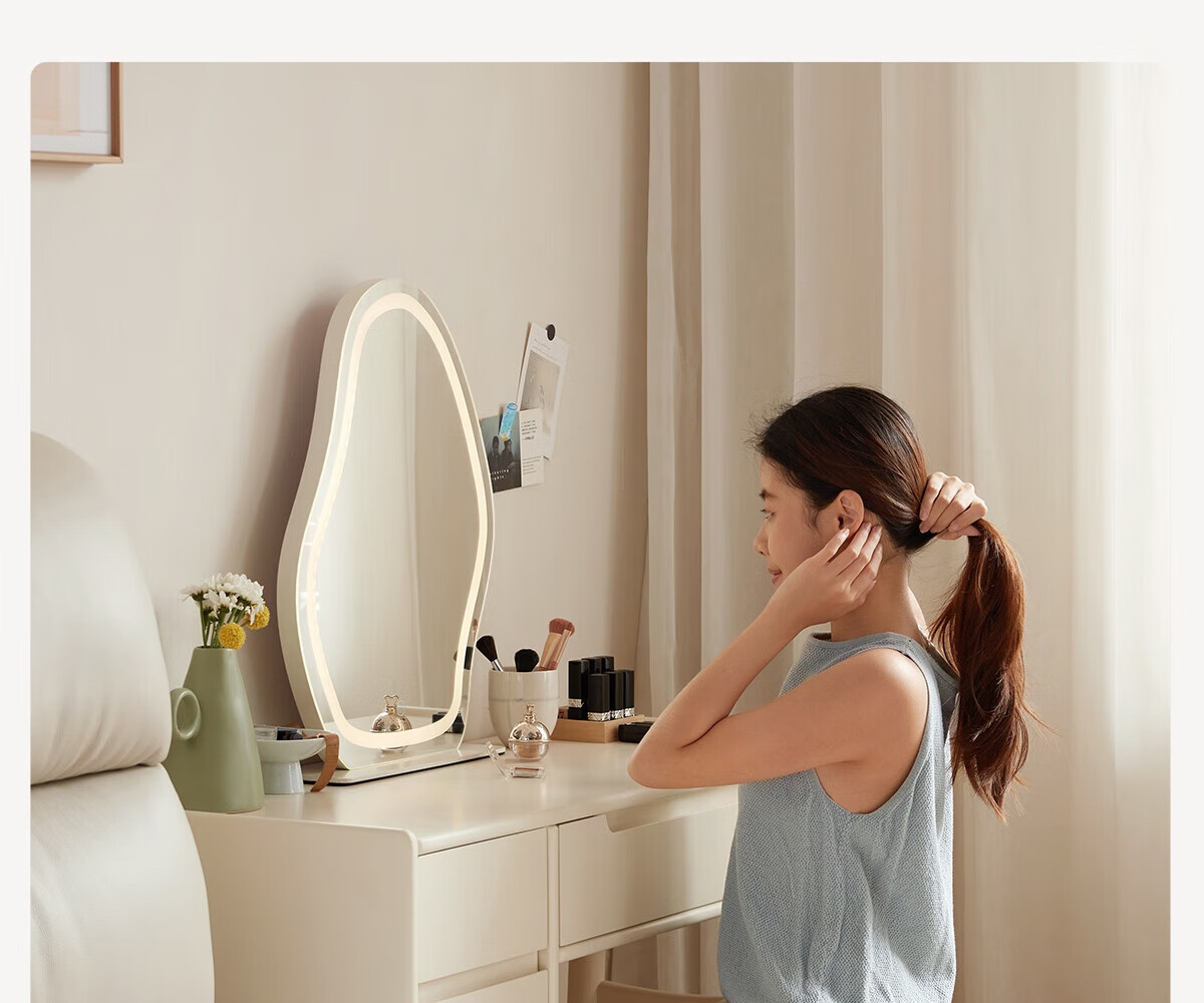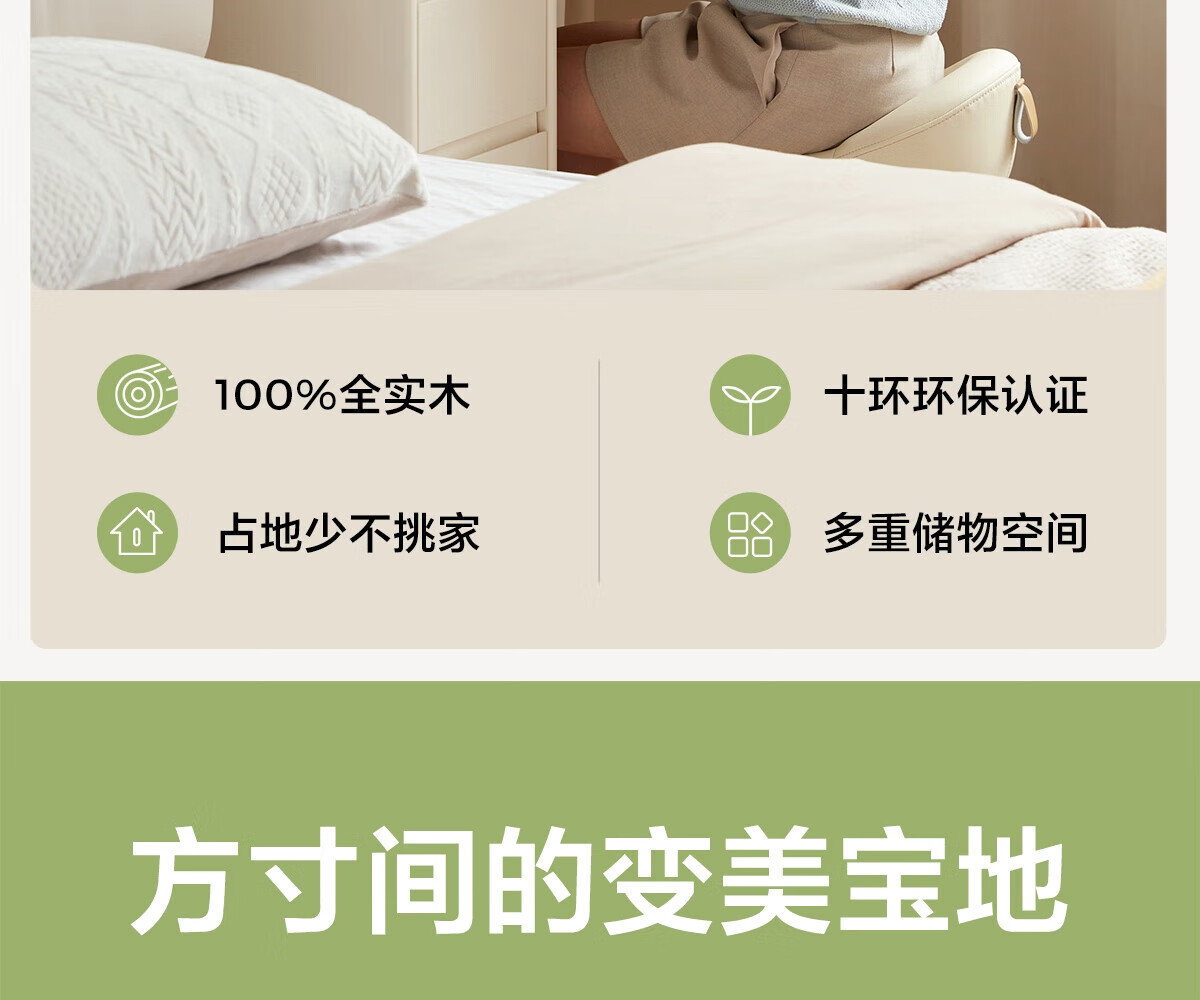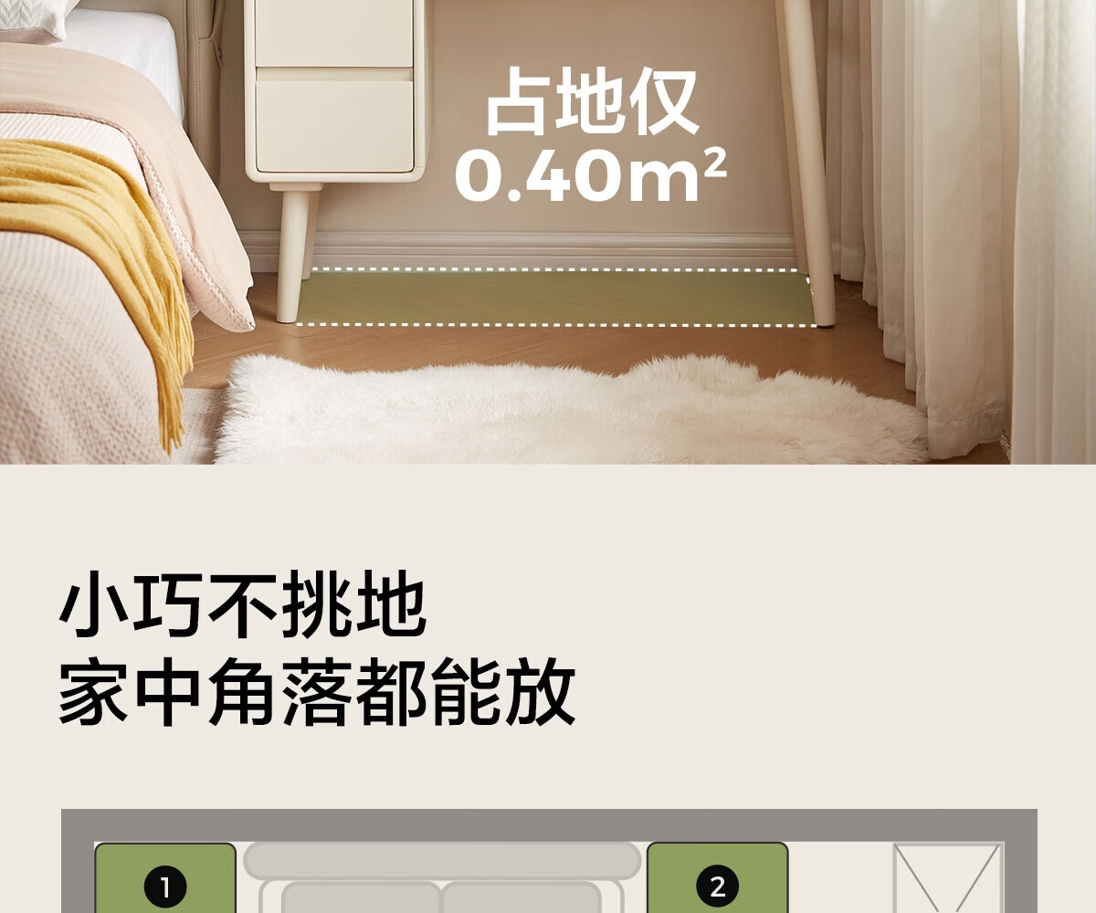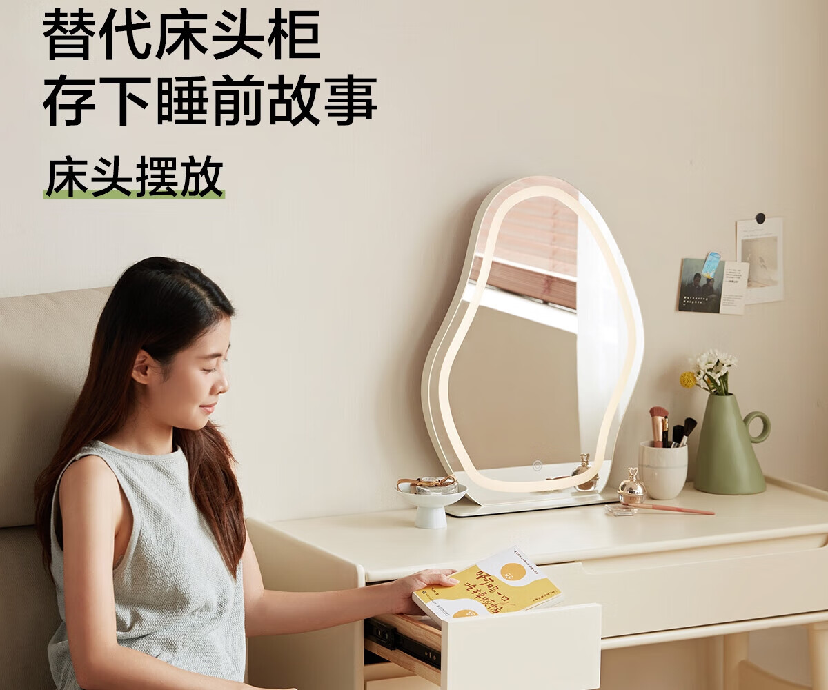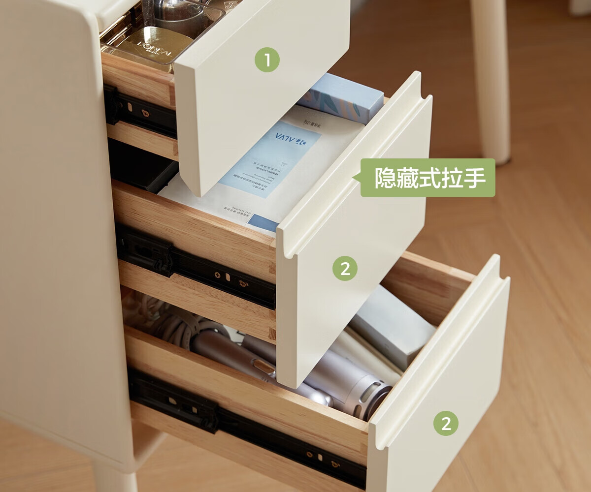林氏家居奶油风全实木化妆桌梳妆台斗柜一体2025新款木业白月光LH094C10 【1.0m】全实木梳妆台+妆凳