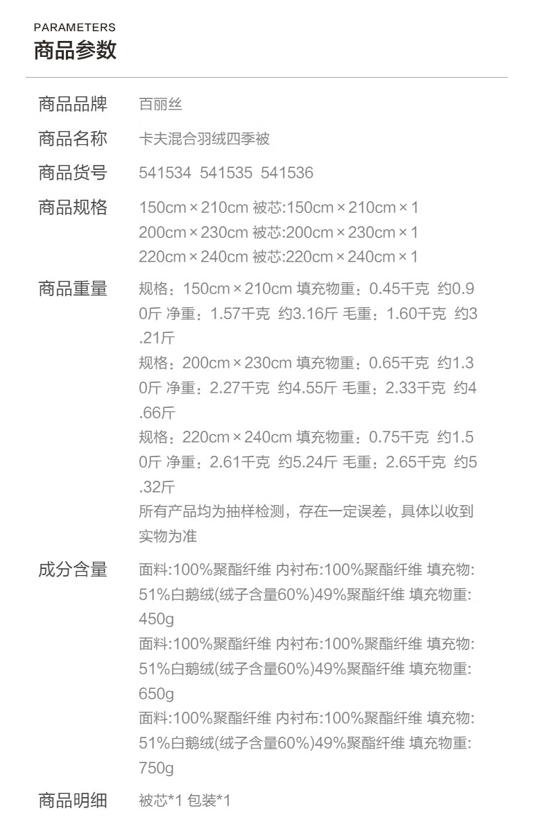 百丽丝被子混合羽绒鹅绒蓬松保暖四季被家用冬季被子加厚 混合羽绒加厚冬被 150cm×210cm