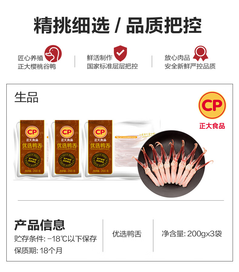 CP正大食品 鸭舌共1.2斤(3包) 鸭舌鸭货生鲜麻辣鸭货卤煮鸭舌