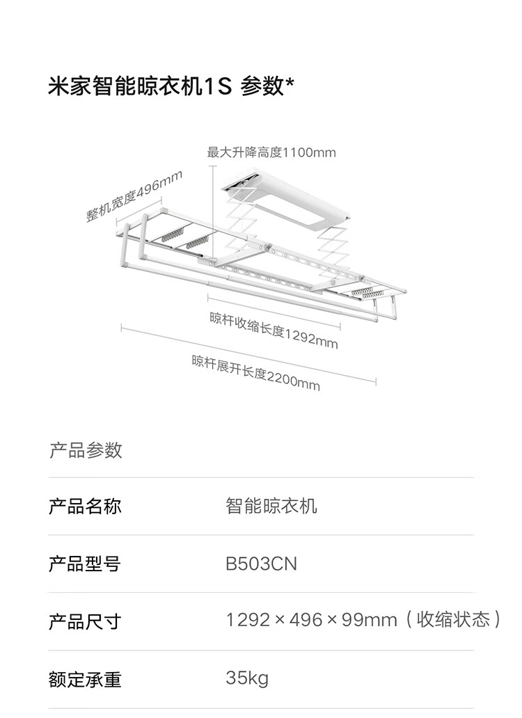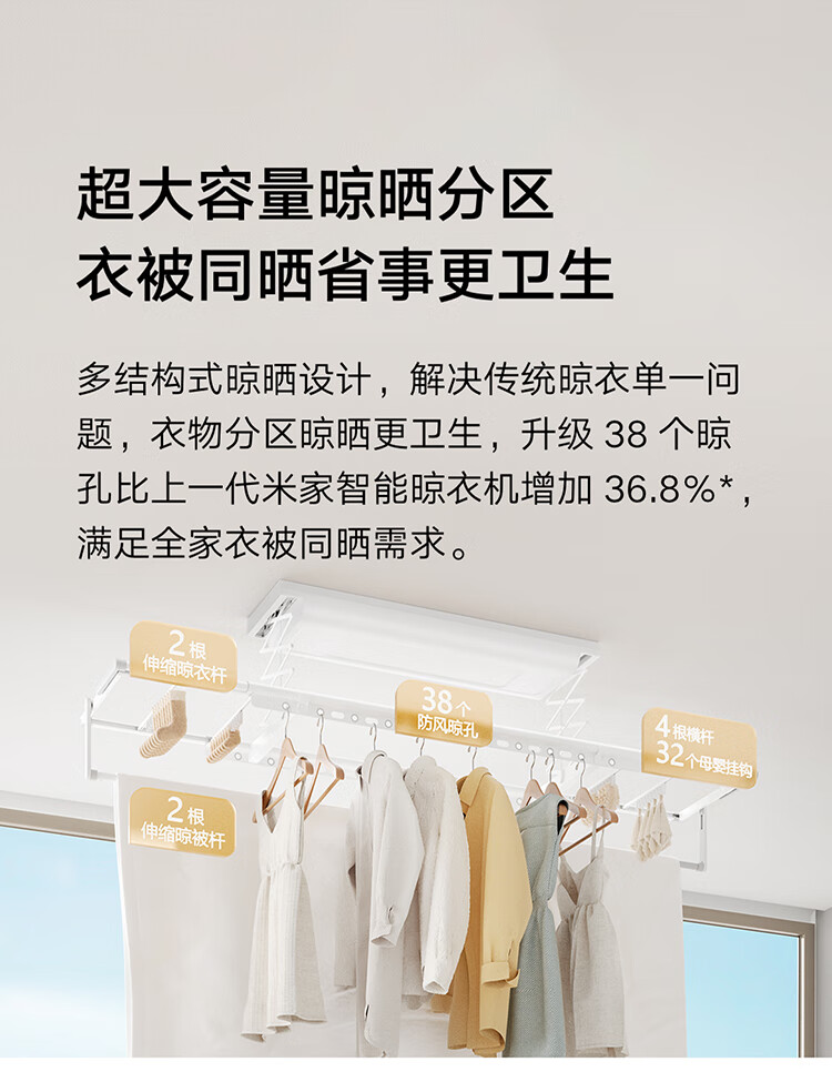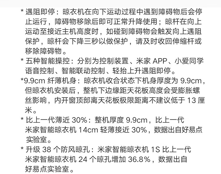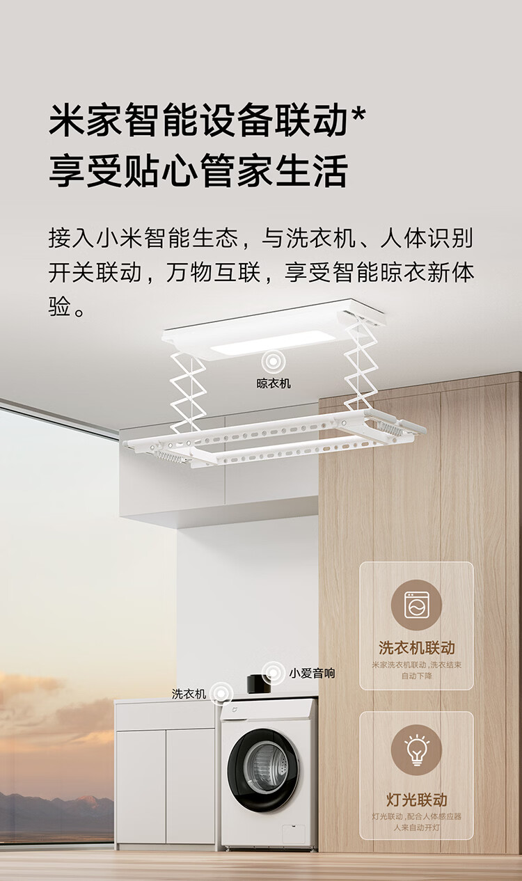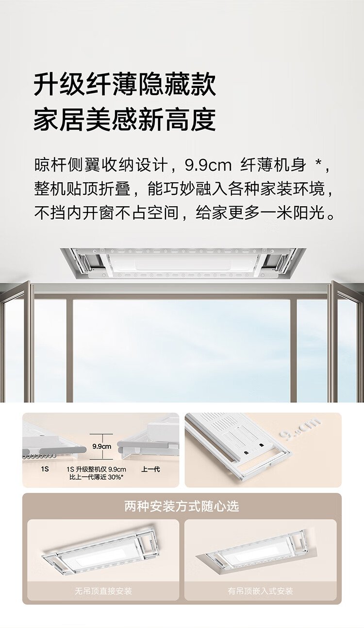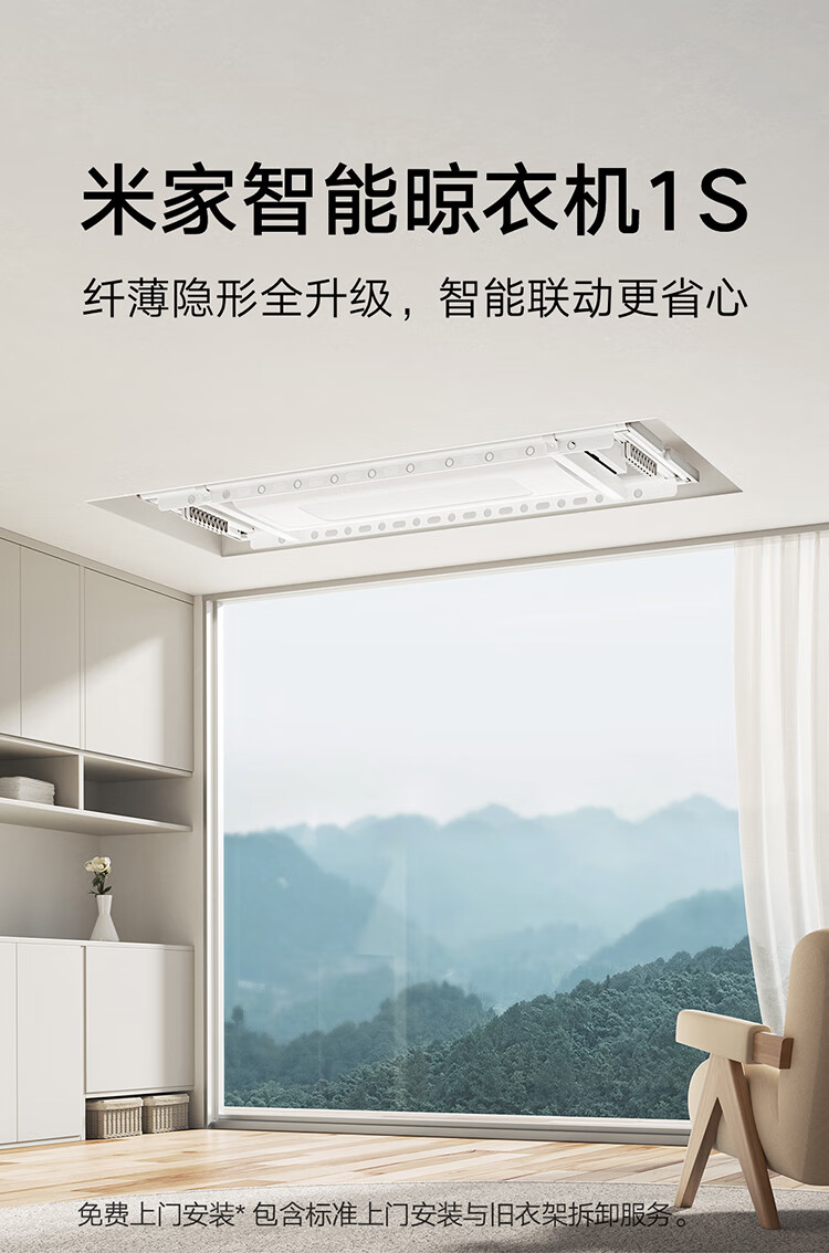 米家智能晾衣机1S【国家补贴】小米电动隐形晾衣架超薄机身无线遥控
