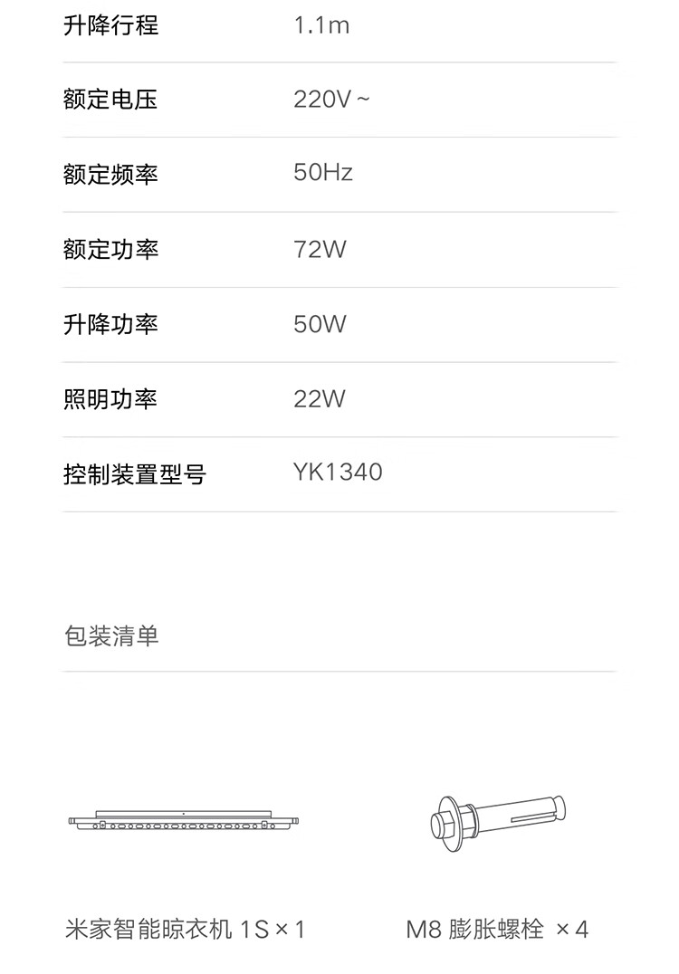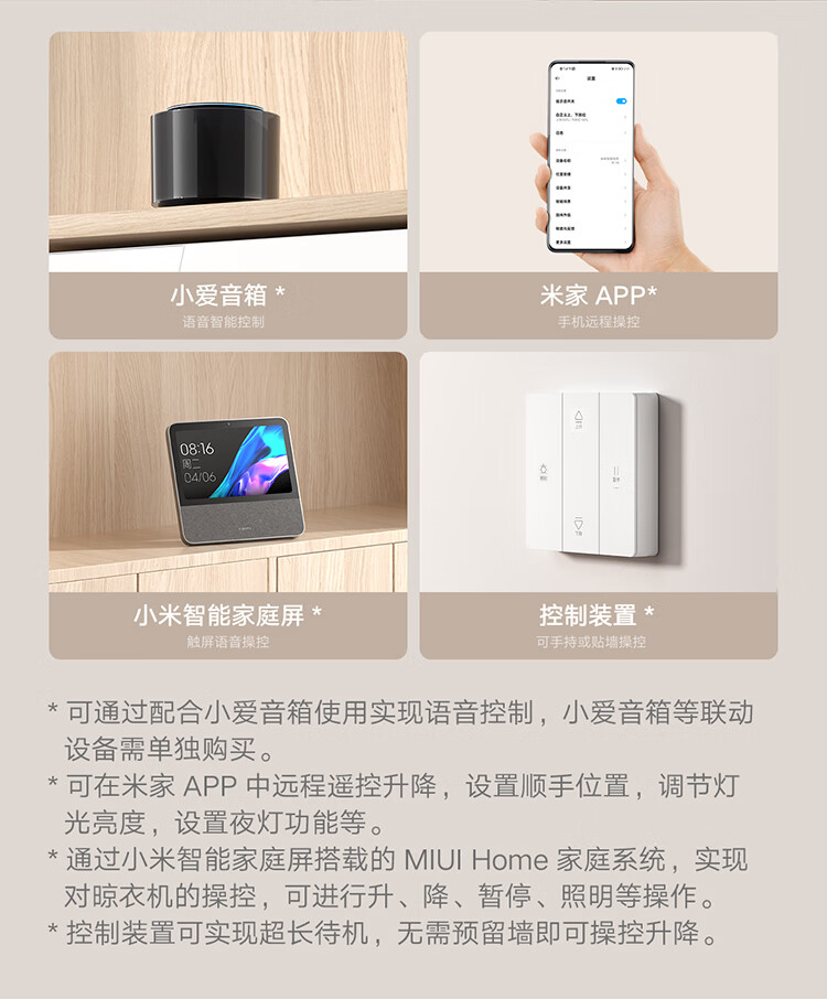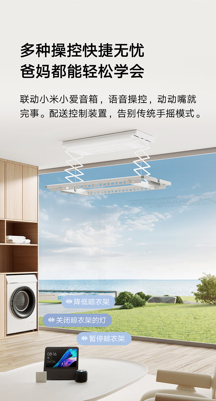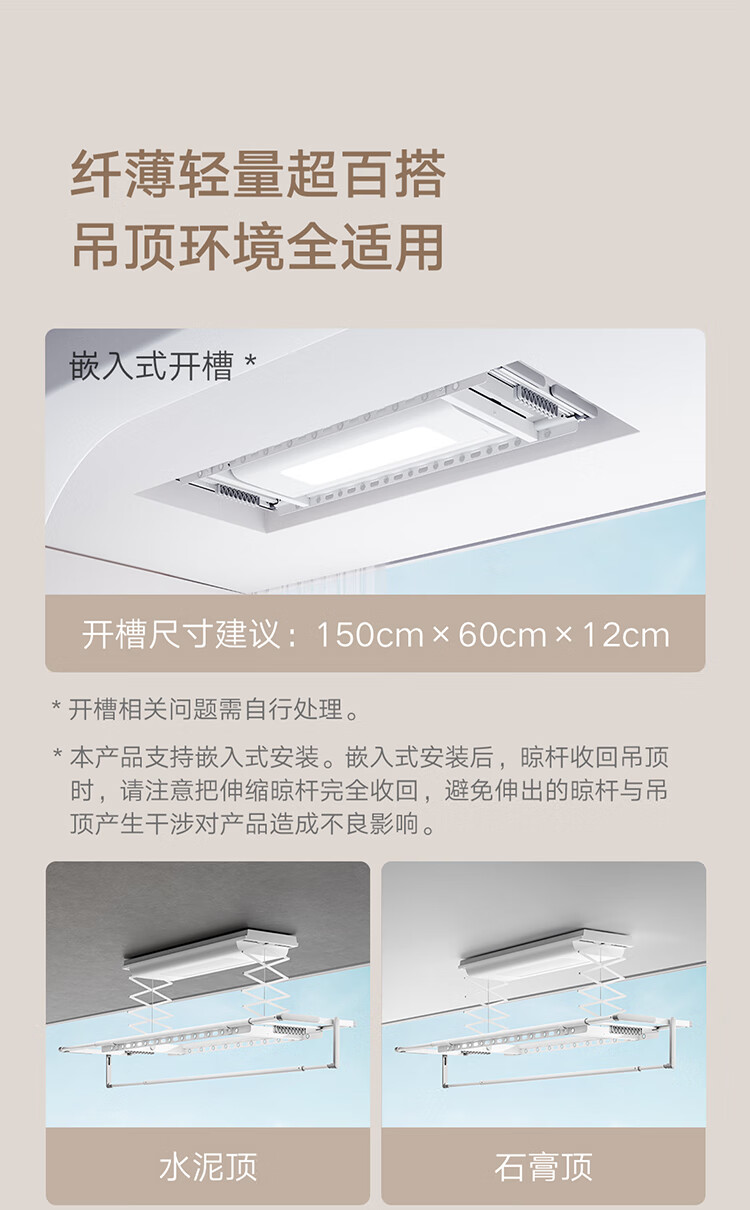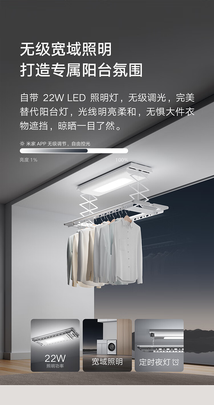 米家智能晾衣机1S【国家补贴】小米电动隐形晾衣架超薄机身无线遥控