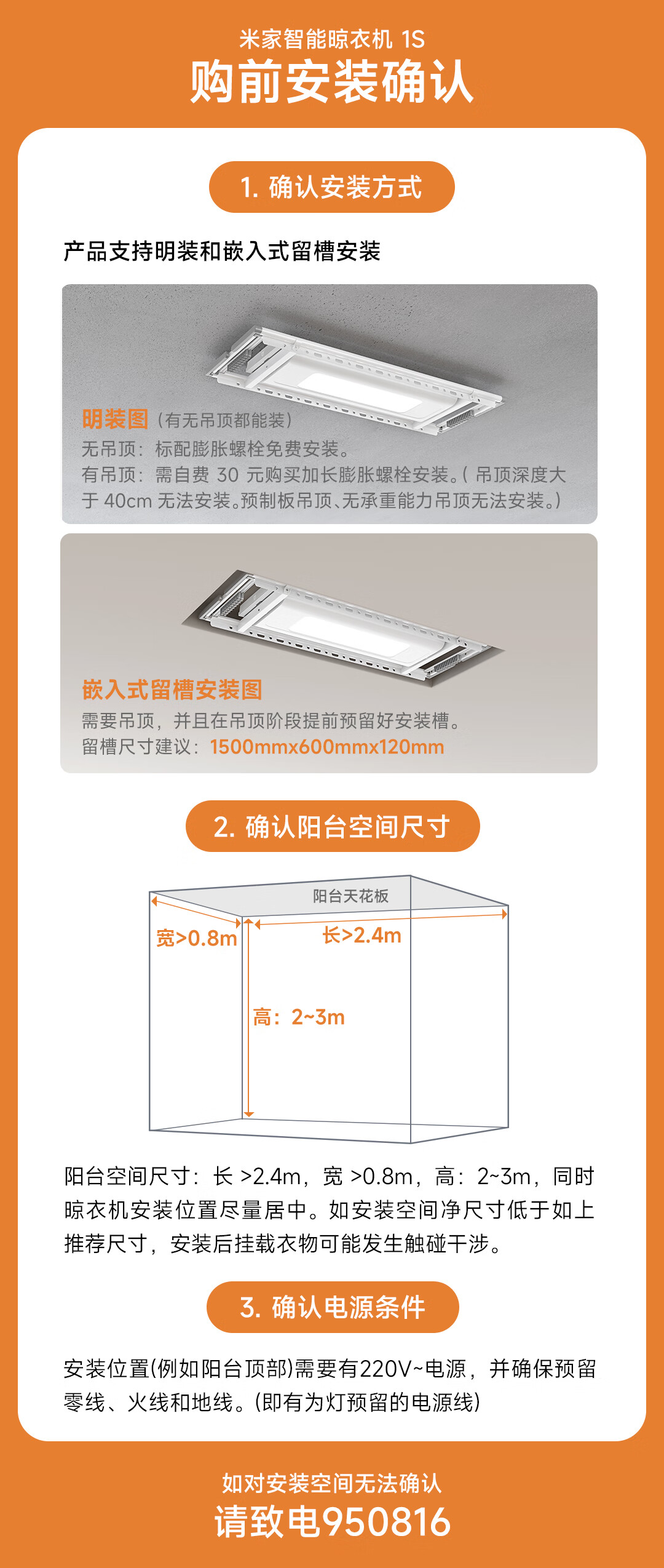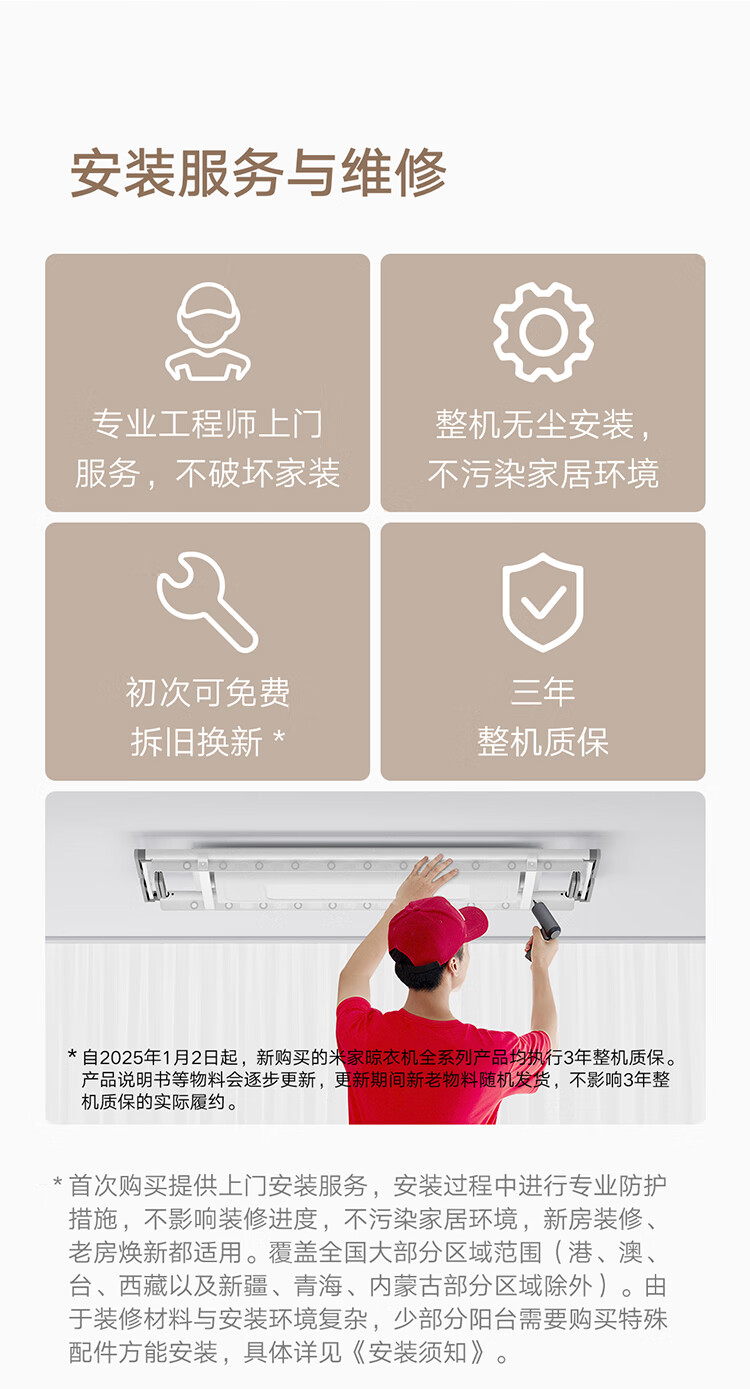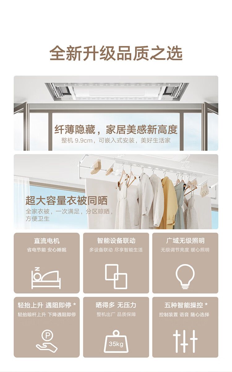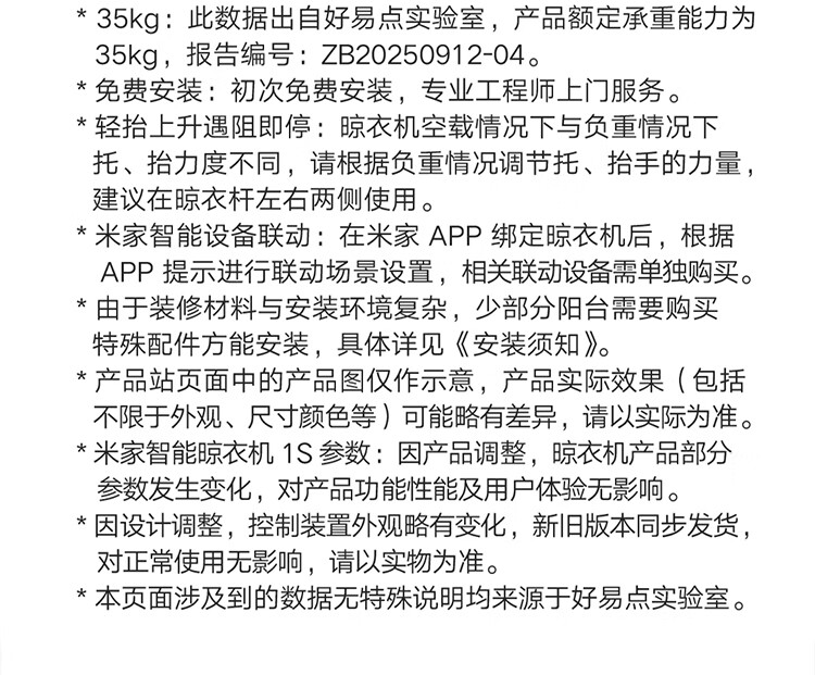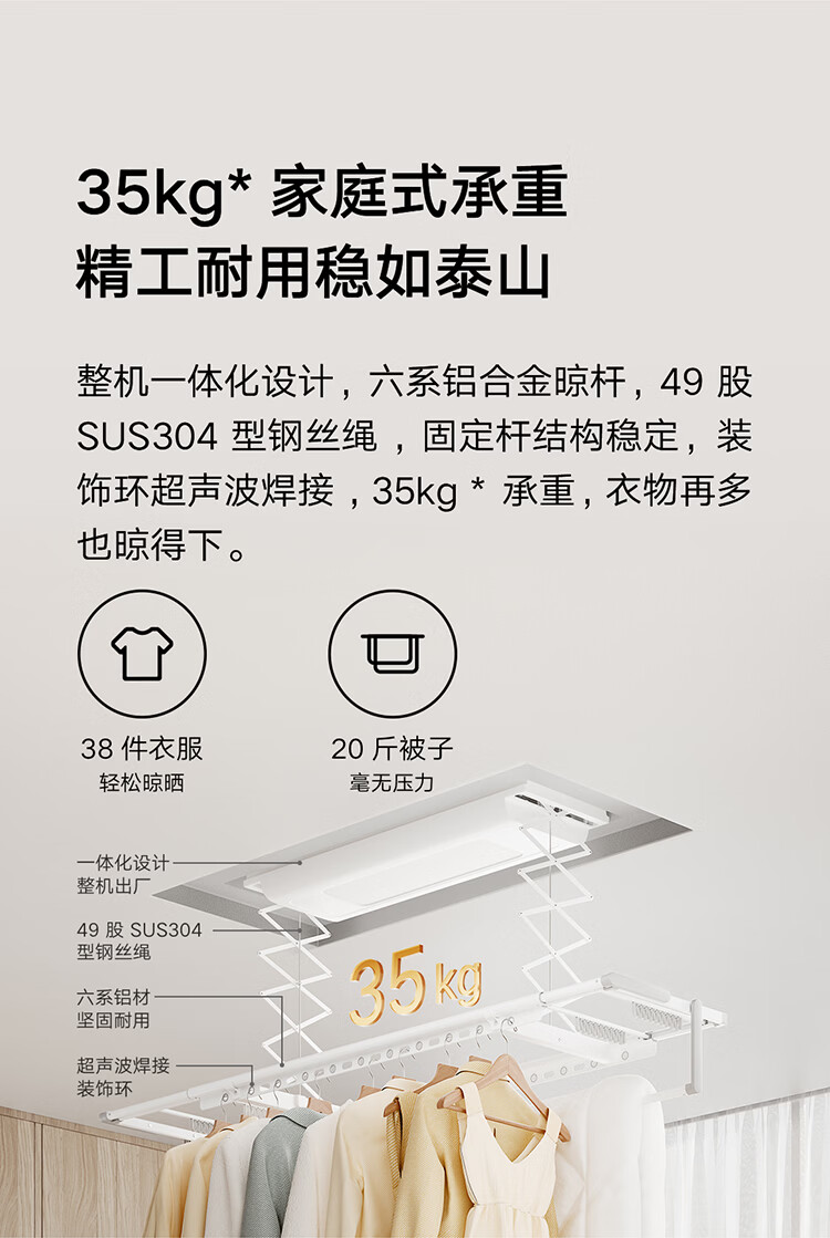 米家智能晾衣机1S【国家补贴】小米电动隐形晾衣架超薄机身无线遥控