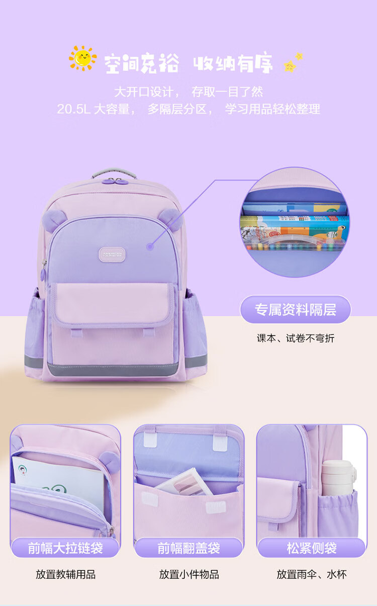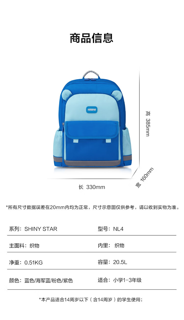 美旅男孩放心书包1-3年级小学生双肩包儿童减负背包高颜值大容量NL4