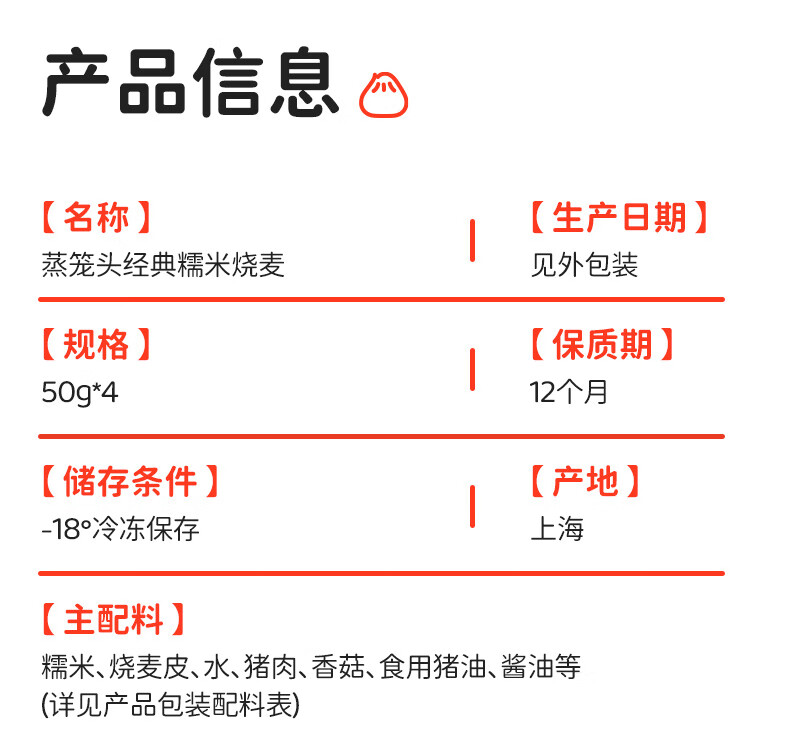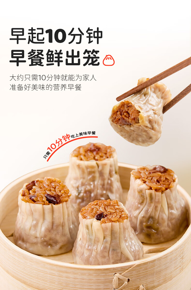 蒸笼头香菇猪肉糯米烧麦200g*2袋共8个 儿童营养速食早餐 经典糯米烧麦