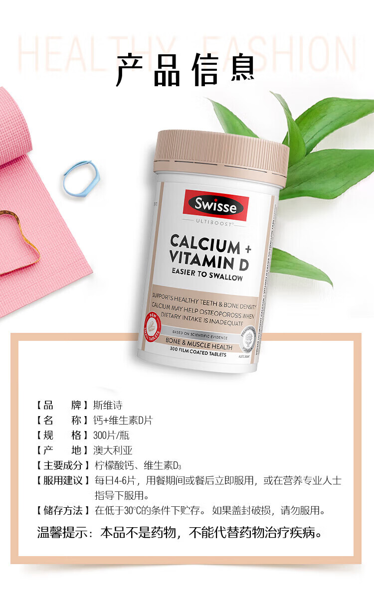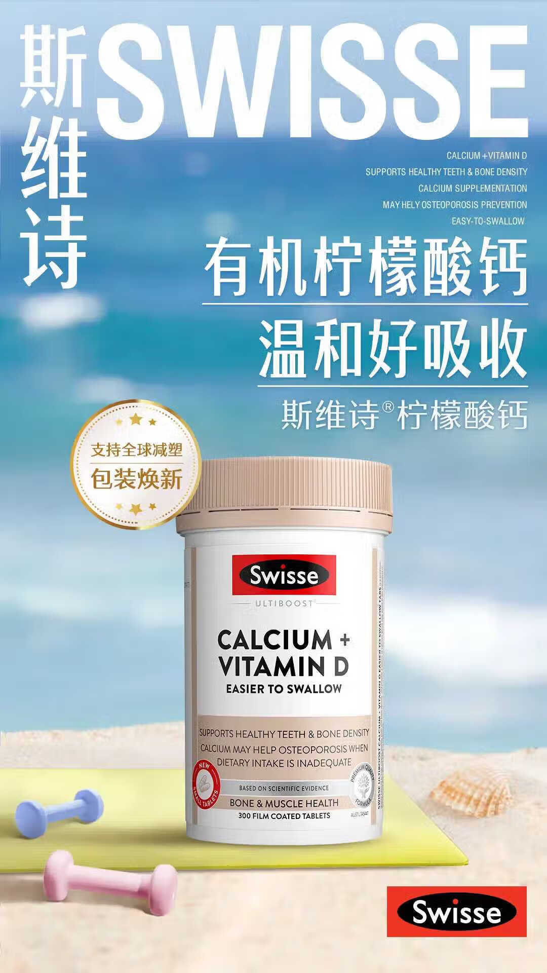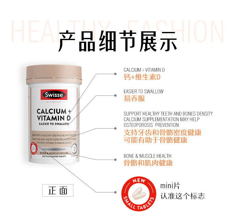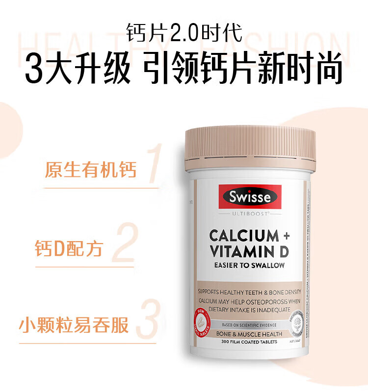 Swisse【联盟专享】钙+维生素D迷你片300片柠檬酸钙片海外进口 迷你钙 300粒*2瓶