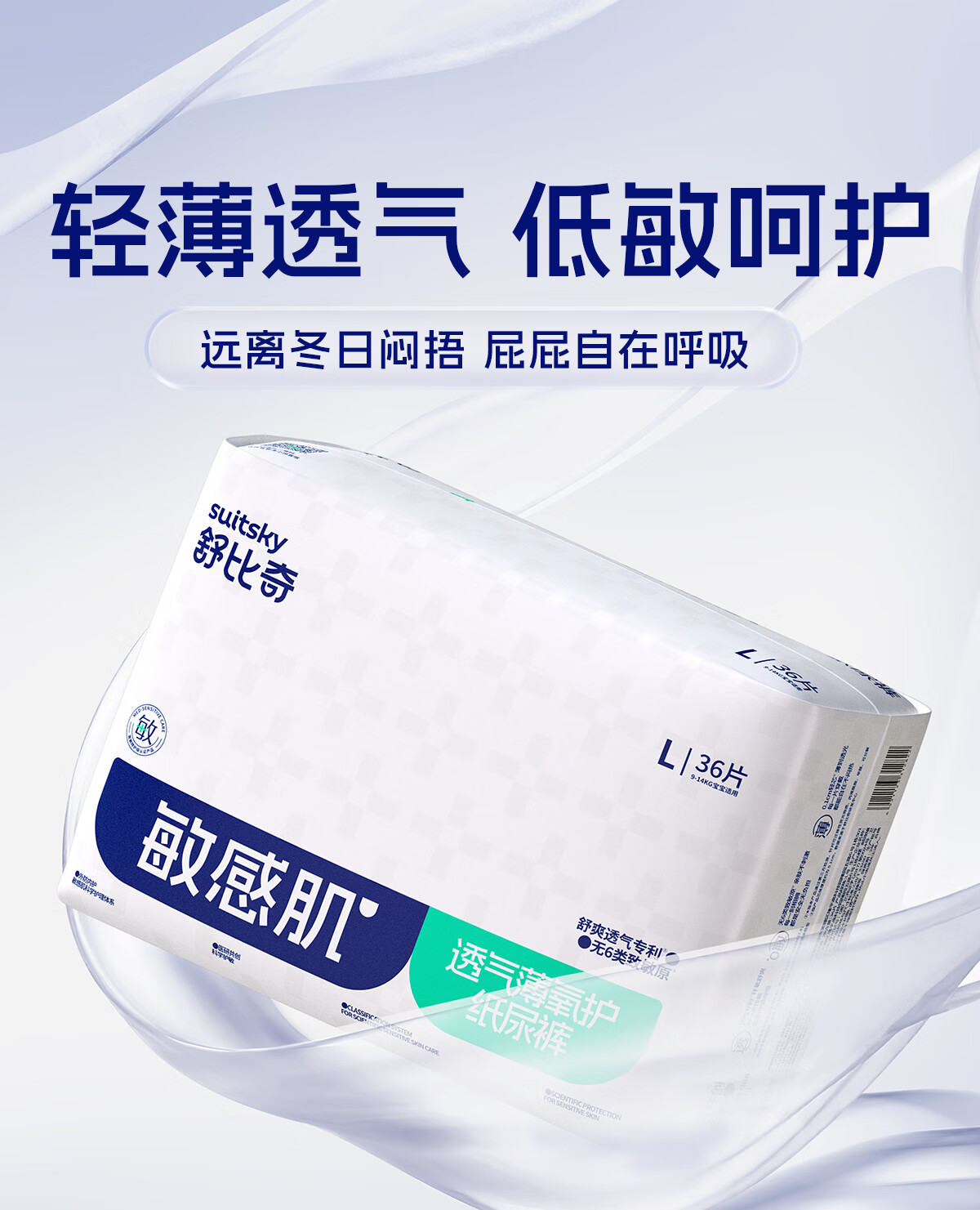 舒比奇(Suitsky)透气薄氧护敏感肌纸尿裤L码36片(9-14kg)尿不湿超薄透气