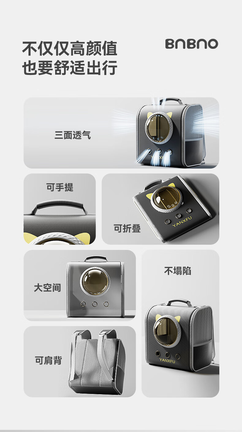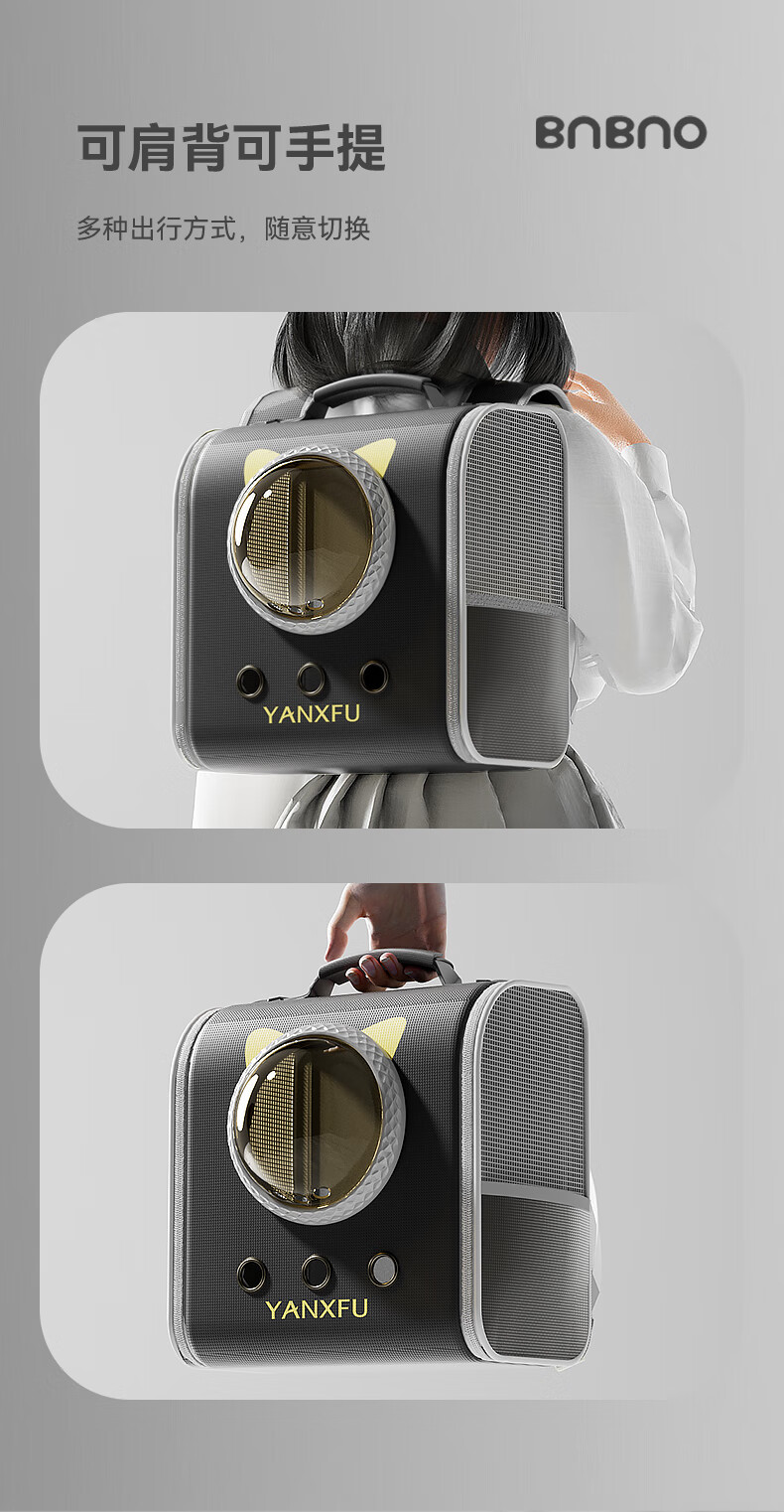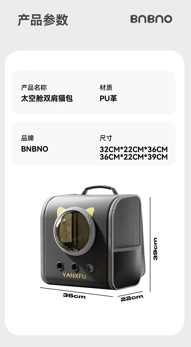 BNBNO猫包太空舱双肩包大容量宠物背包书包便携外出猫咪狗狗防应激猫笼