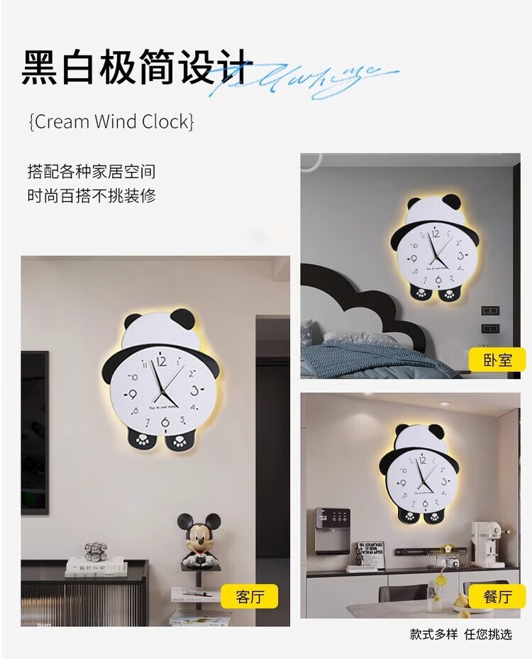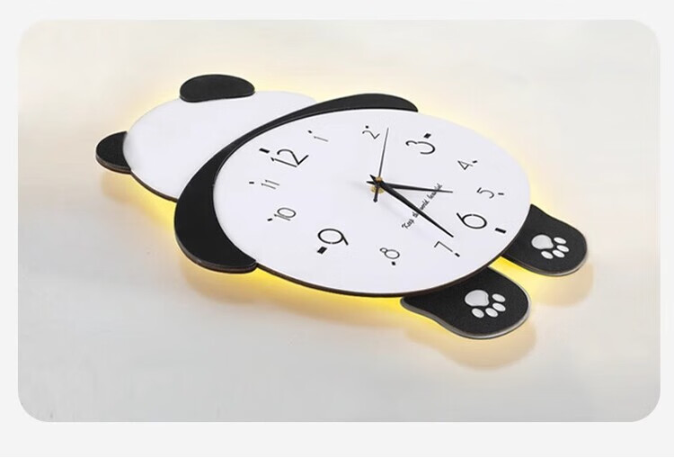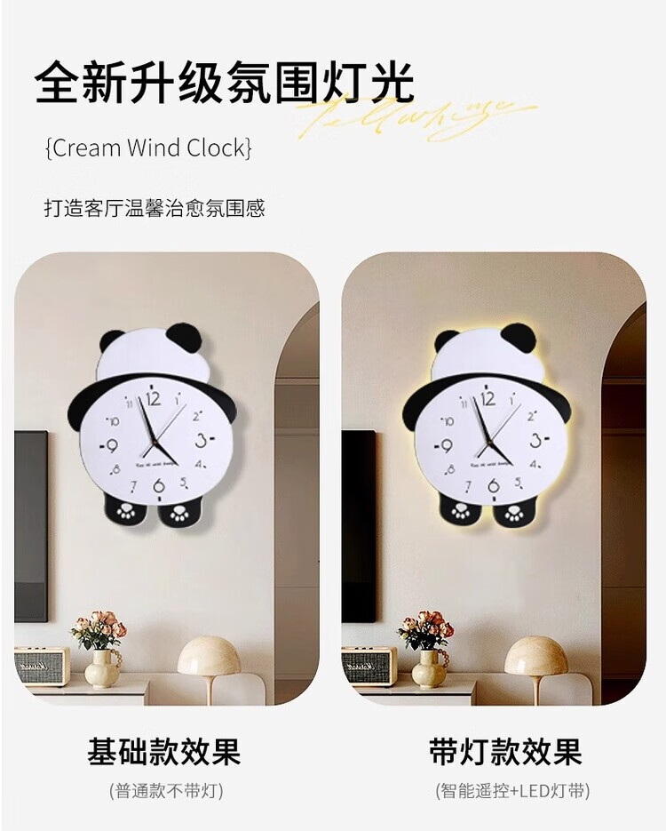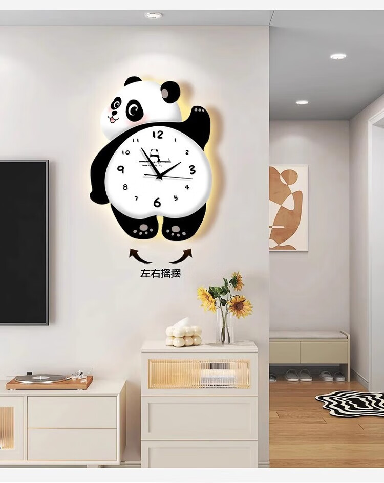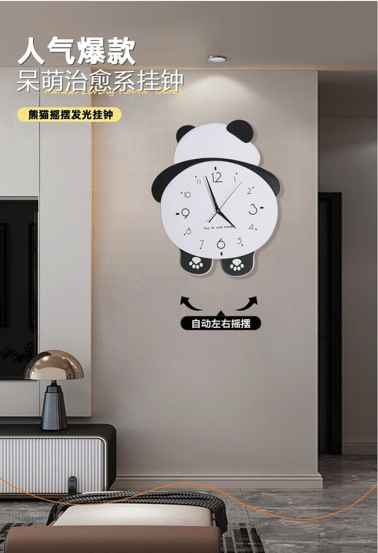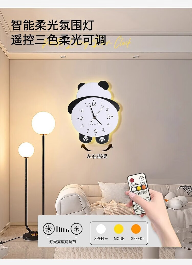 OYKTN熊猫钟表网红新款客厅挂钟壁灯家用钟表画时钟挂墙简约壁钟石英钟 熊猫氛围灯款A (脚脚摆动+遥控灯光) 【送电池/无痕钉/