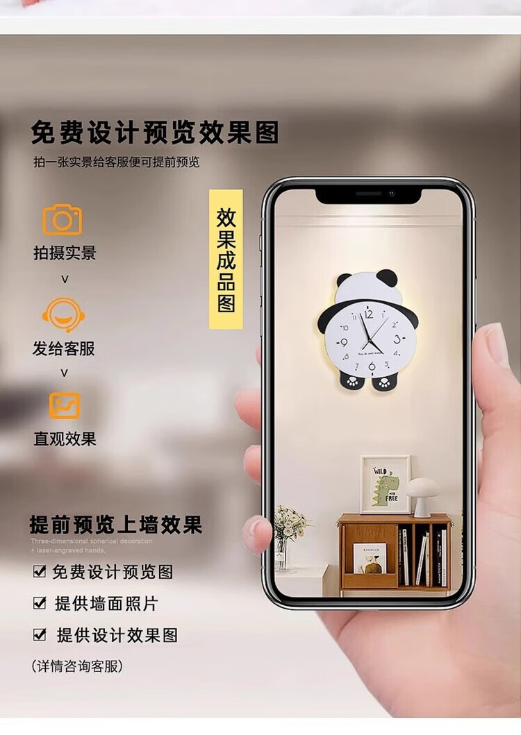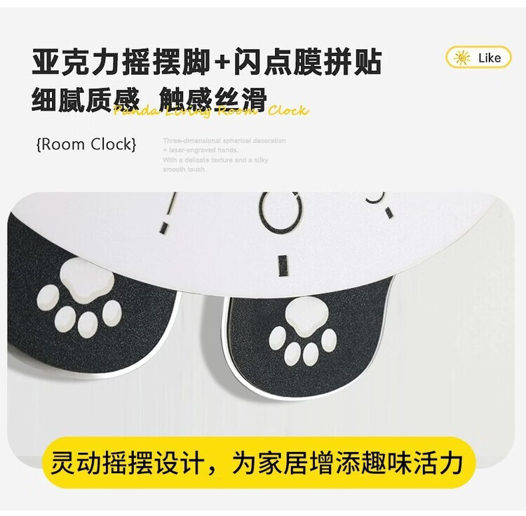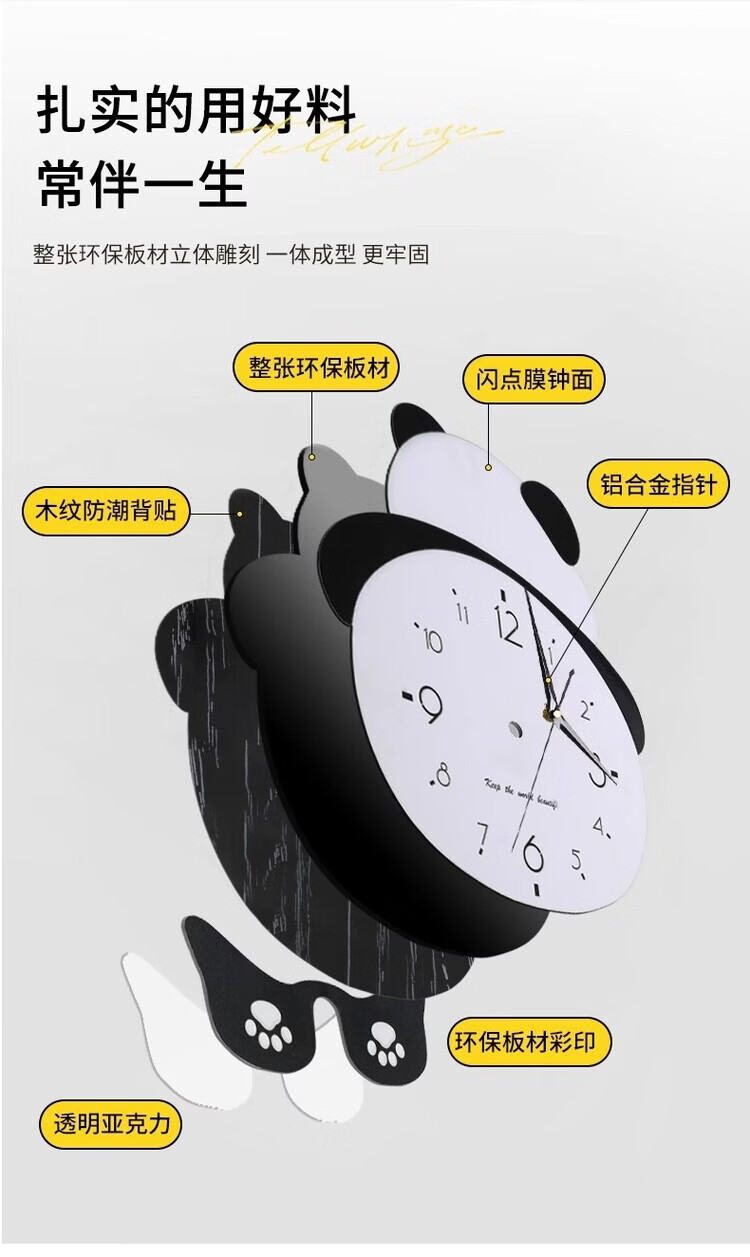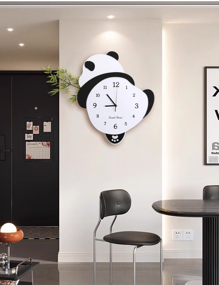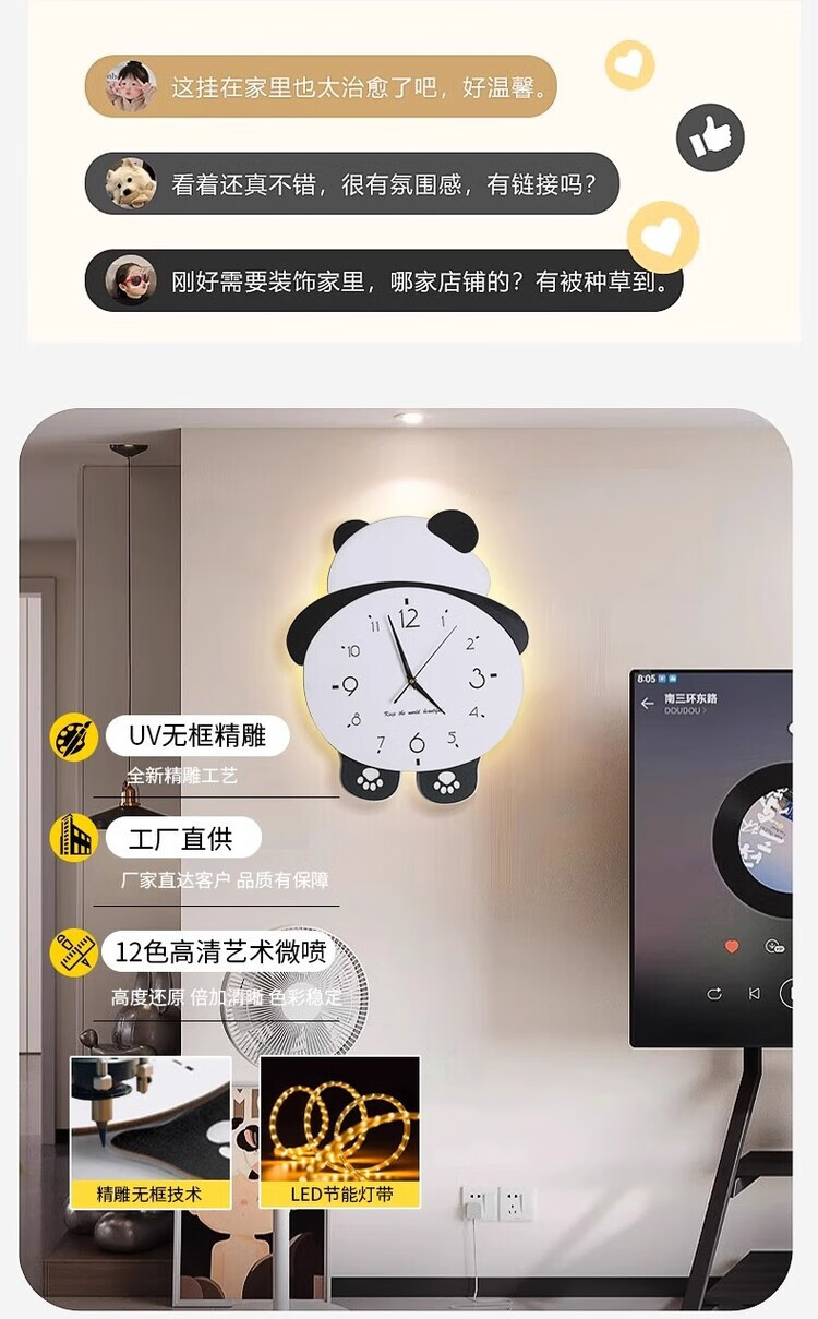 OYKTN熊猫钟表网红新款客厅挂钟壁灯家用钟表画时钟挂墙简约壁钟石英钟 熊猫氛围灯款A (脚脚摆动+遥控灯光) 【送电池/无痕钉/