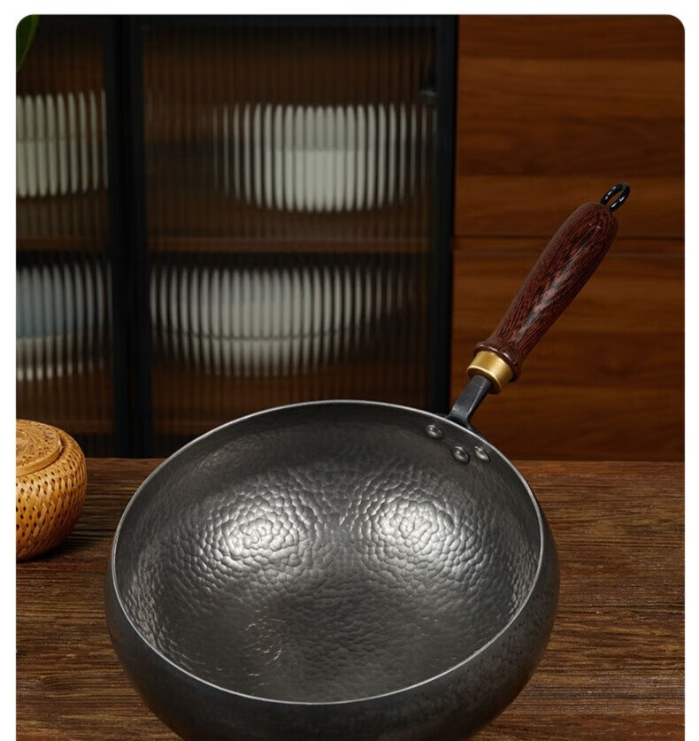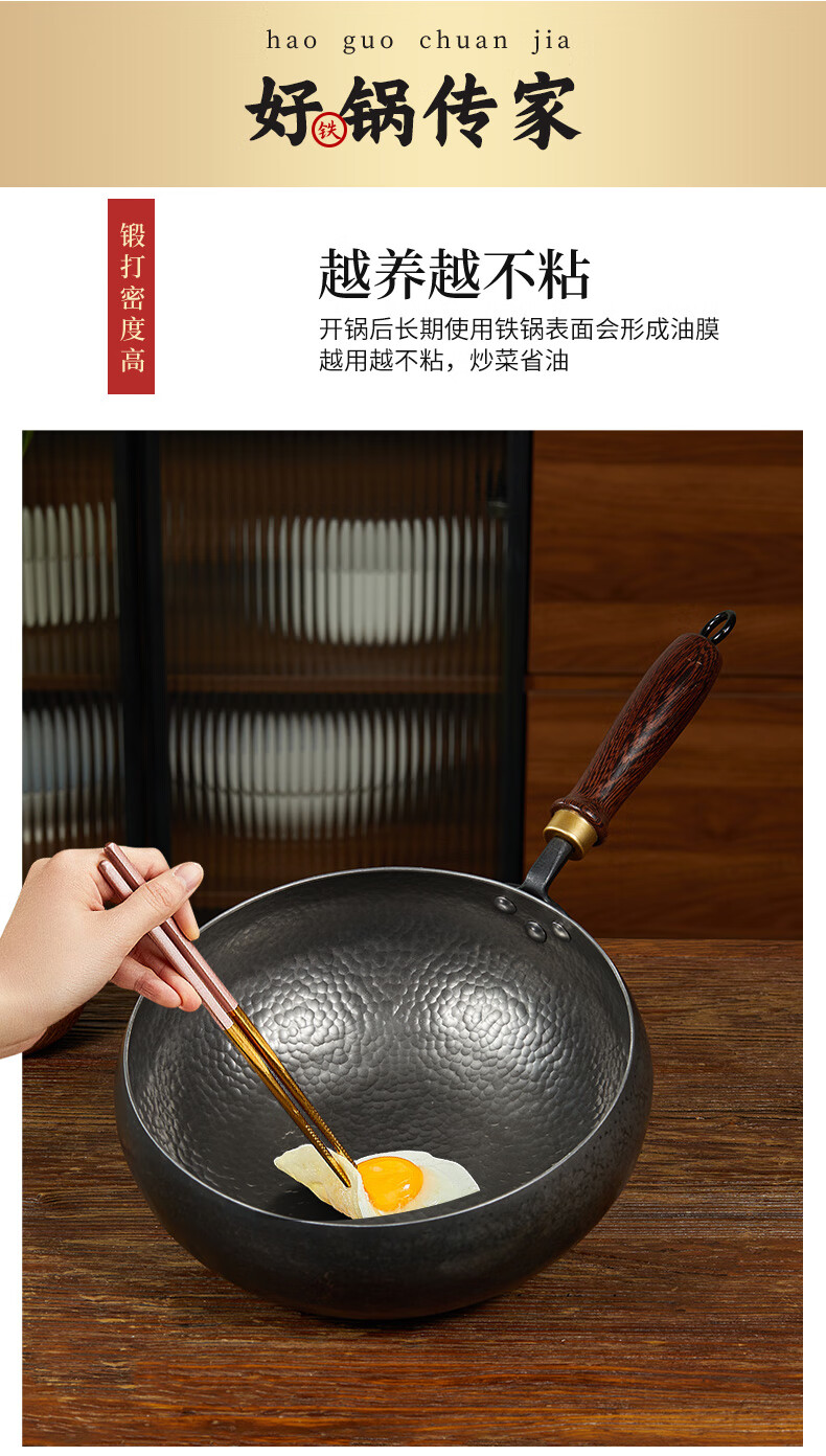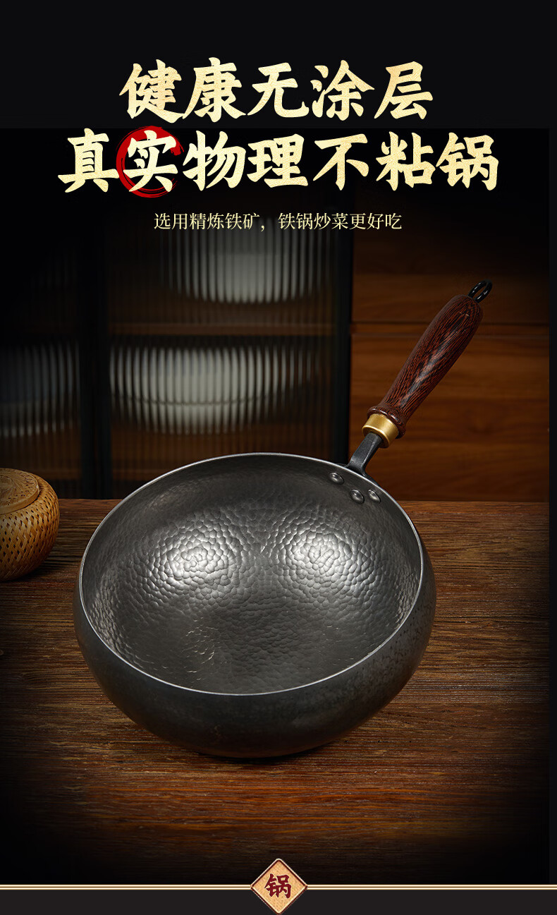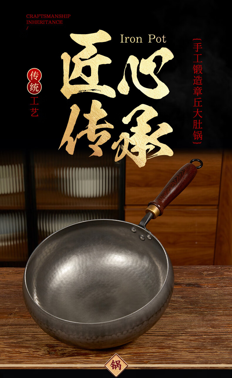 谭铁匠章丘大肚腩铁锅加深纯手工锻打官方旗舰家用无涂层不易粘熟铁炒锅 章丘镜面大肚锅【适用3-5人】(送盖铲) 26cm