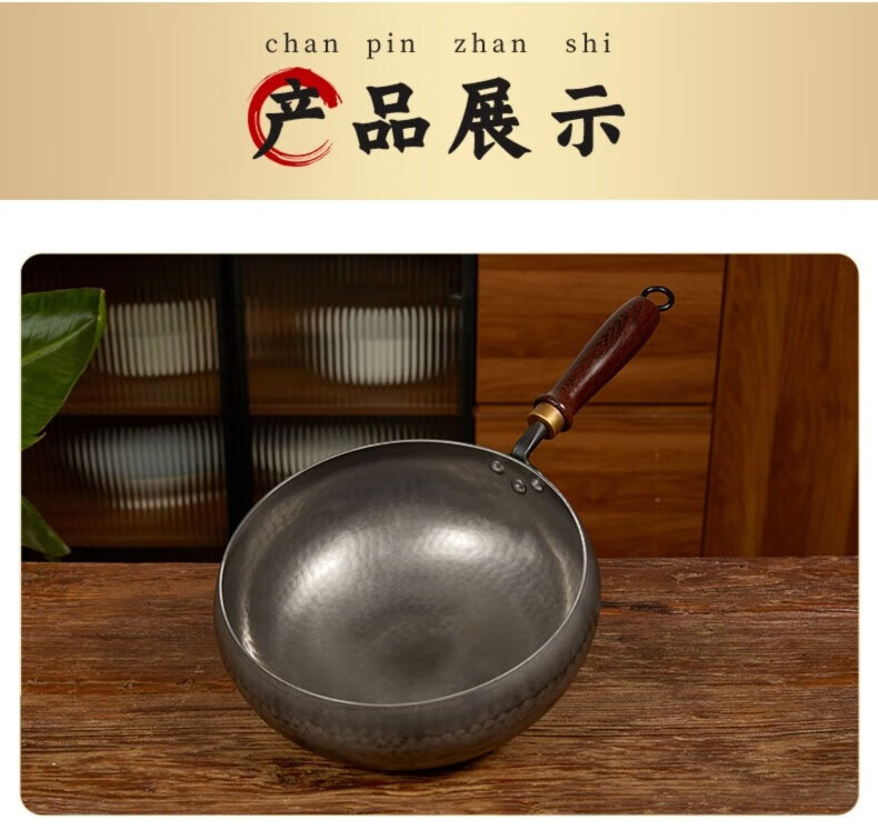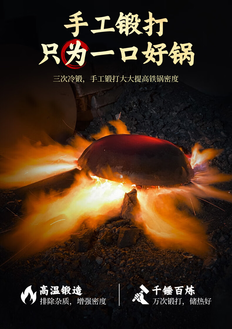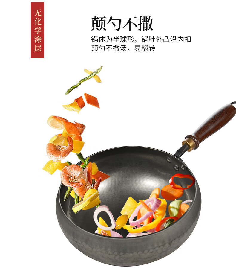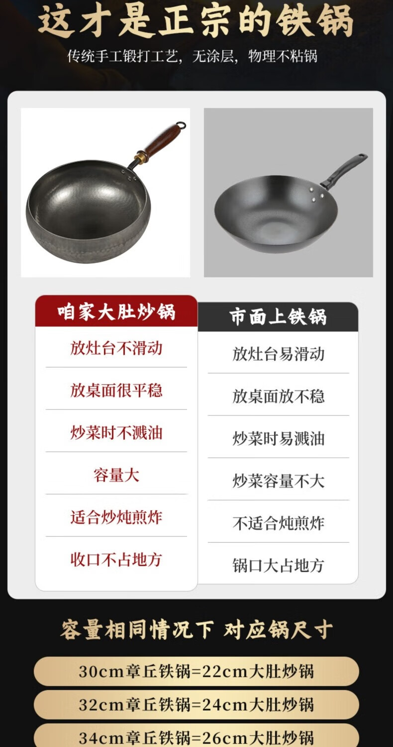 谭铁匠章丘大肚腩铁锅加深纯手工锻打官方旗舰家用无涂层不易粘熟铁炒锅 章丘镜面大肚锅【适用3-5人】(送盖铲) 26cm