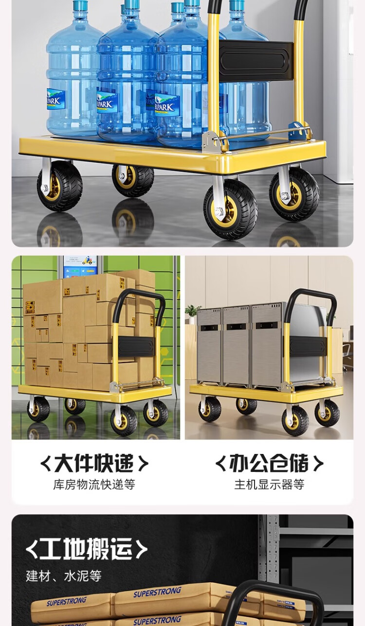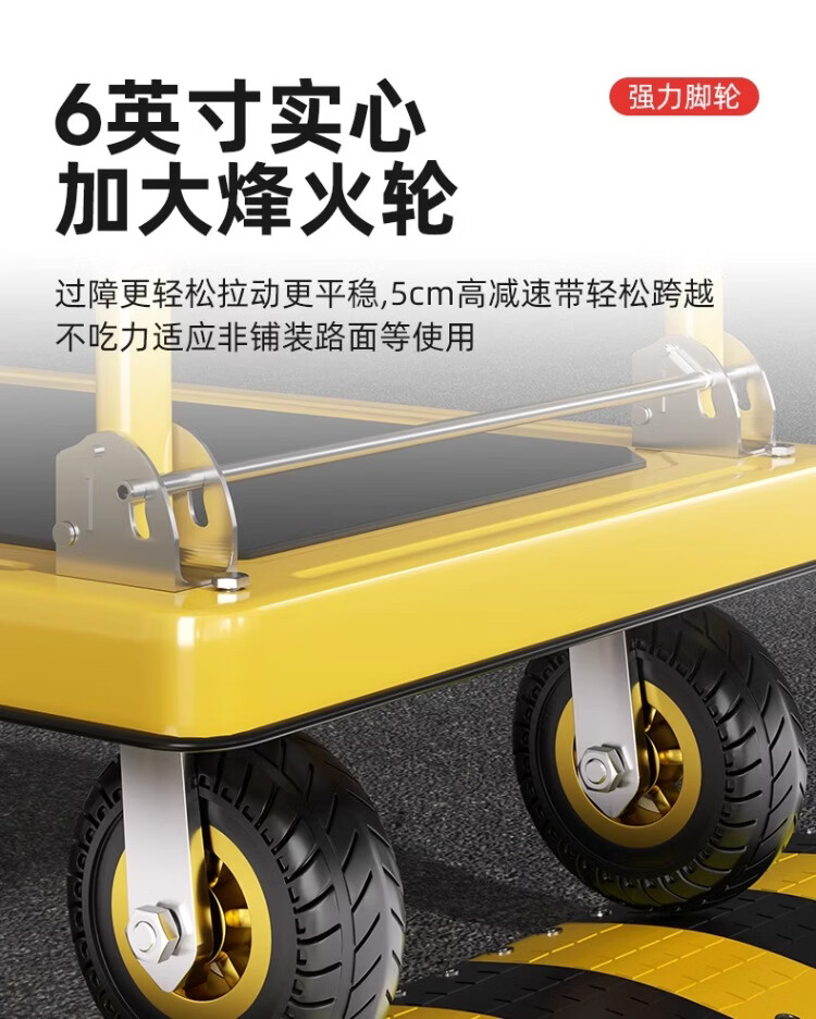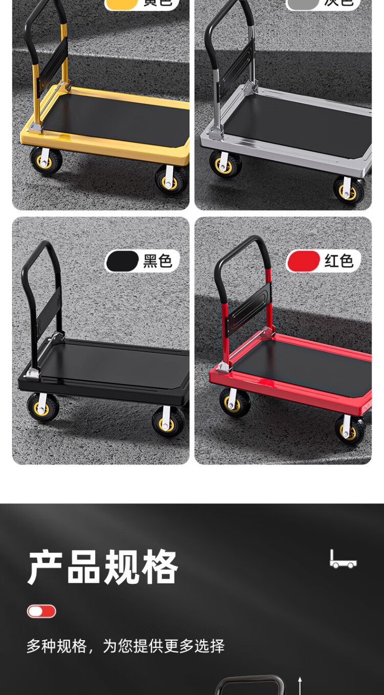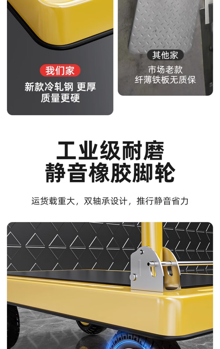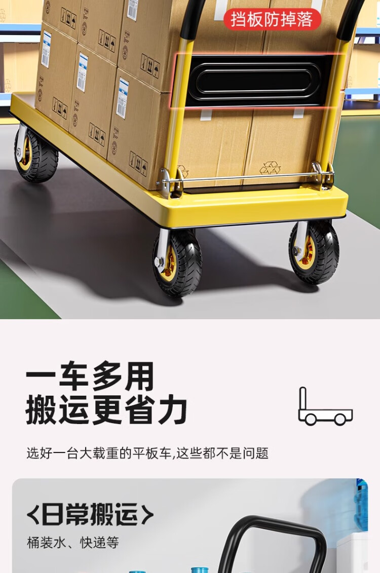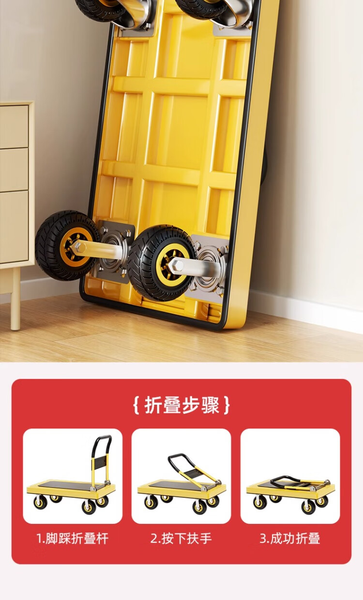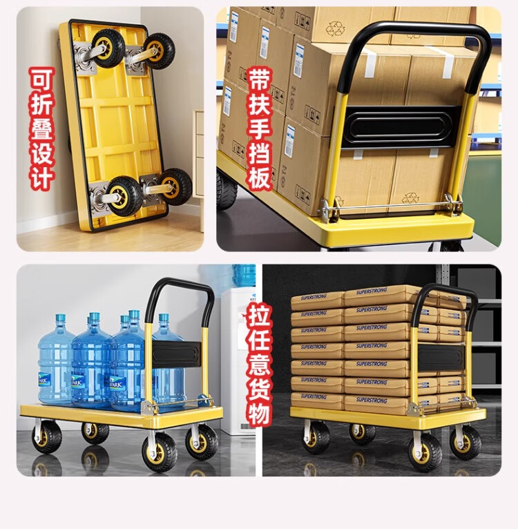 衣炫小推车手推车折叠拉车拉货重型平板车搬运车拖车家用四轮围栏 【围栏刹车款】110x65加厚钢板【8寸烽火轮】 强力承重