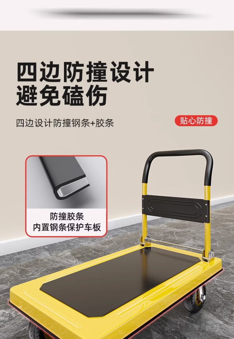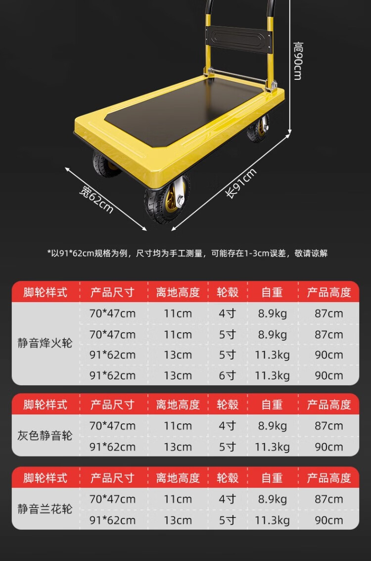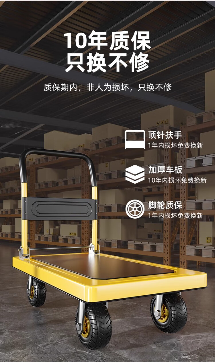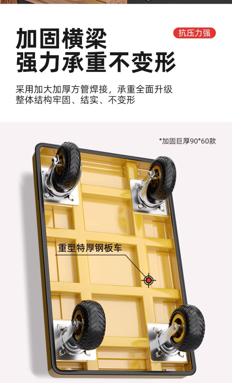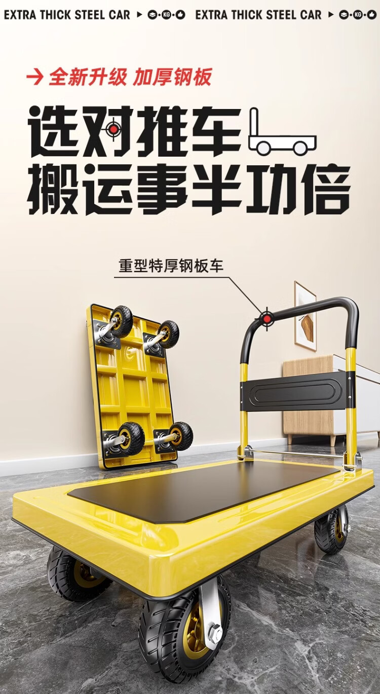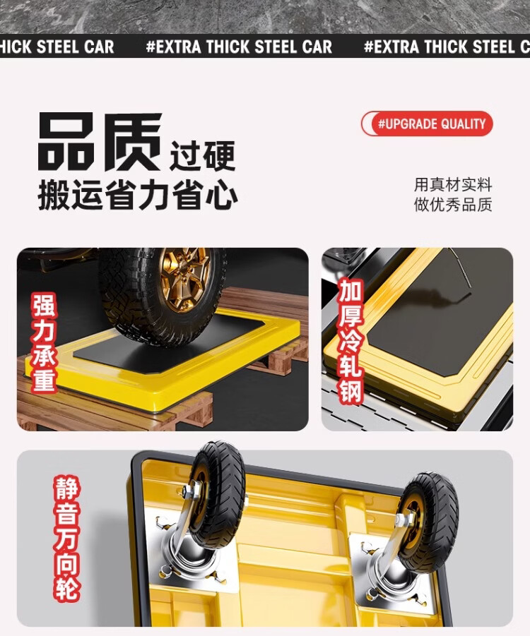 衣炫小推车手推车折叠拉车拉货重型平板车搬运车拖车家用四轮围栏 【围栏刹车款】110x65加厚钢板【8寸烽火轮】 强力承重