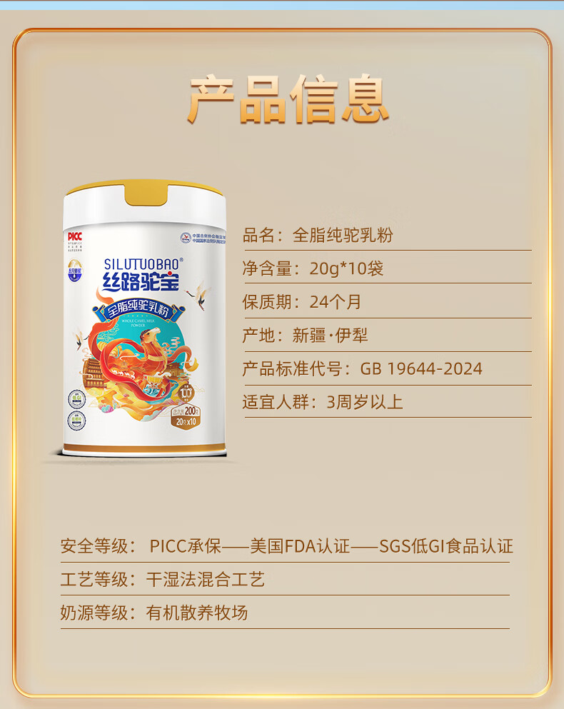 丝路驼宝新疆纯骆驼奶粉200g 骆驼奶粉 学生成人中老年 奶粉 200g*1罐 【骆驼奶粉】