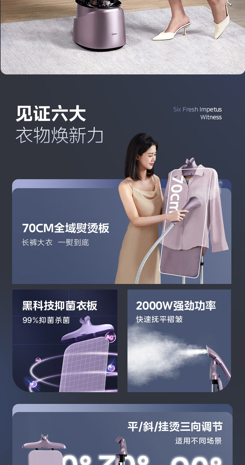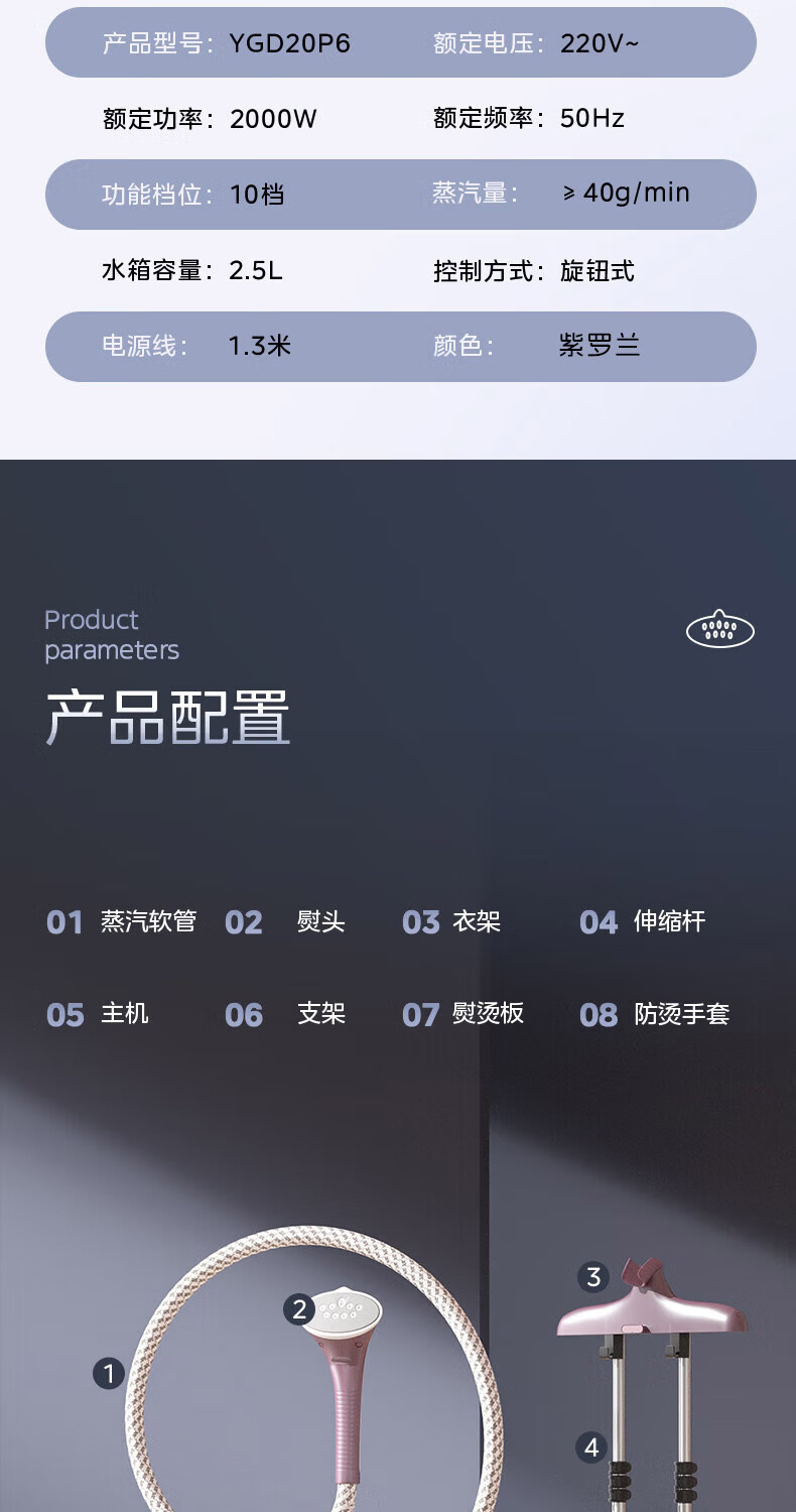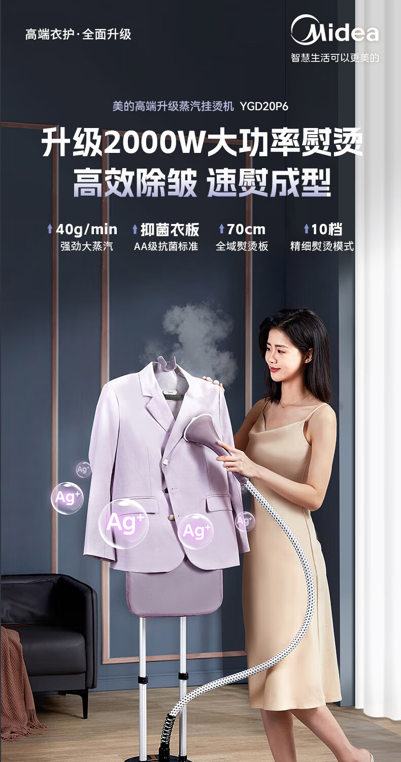 美的(Midea)挂烫机家用立式高端蒸汽熨烫机手持便携大功率电熨斗熨衣服一体机服装店专用烫衣服神器 YGD20P6