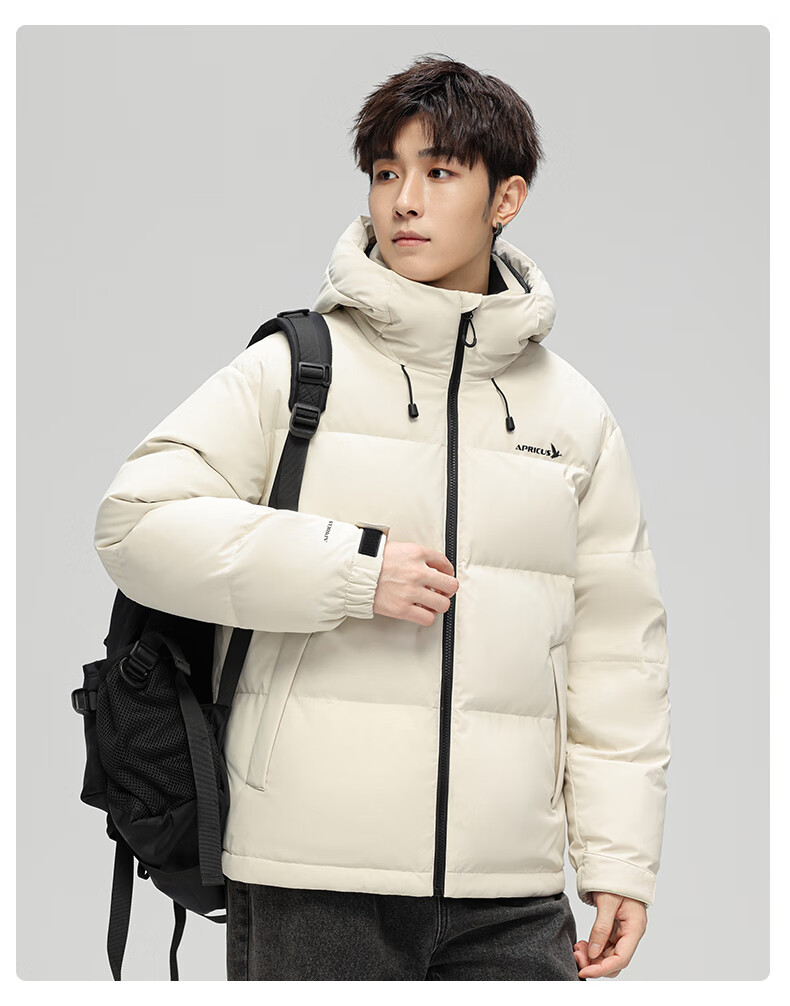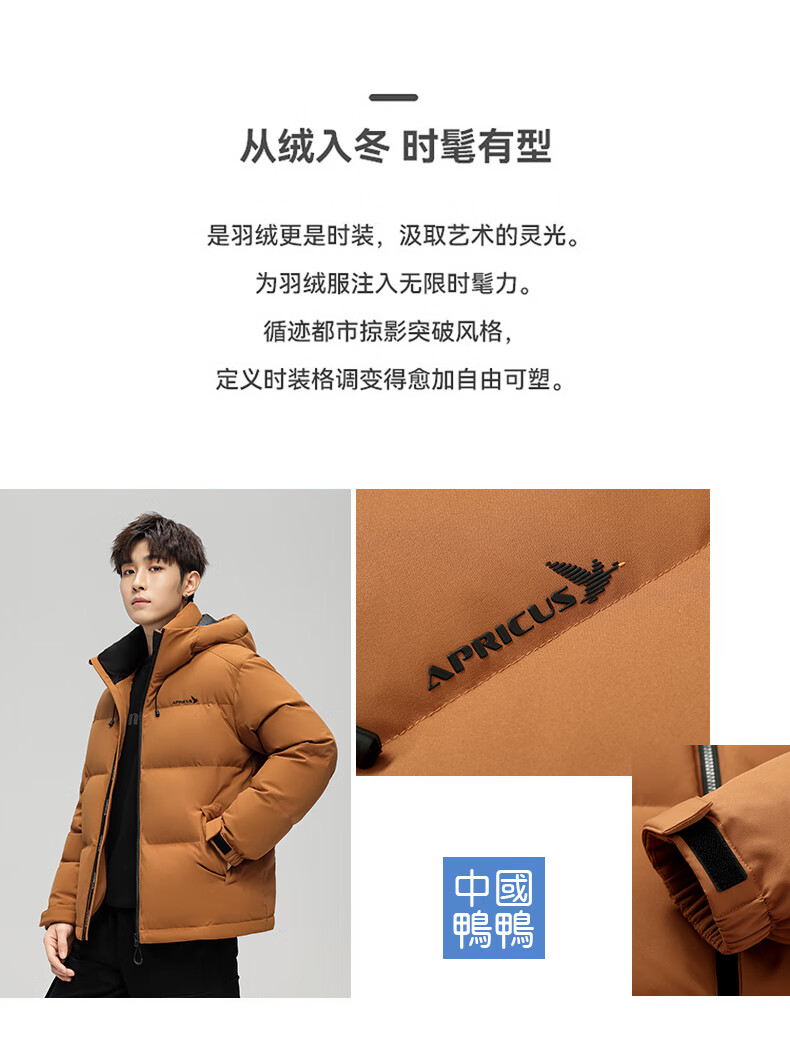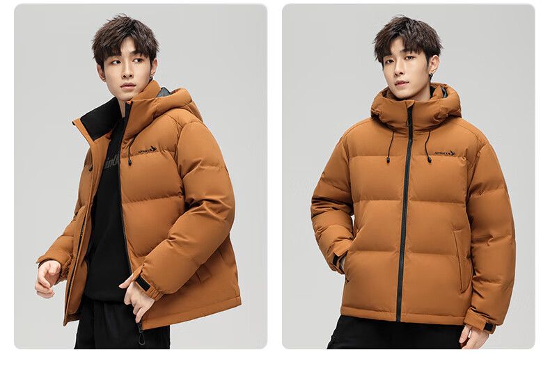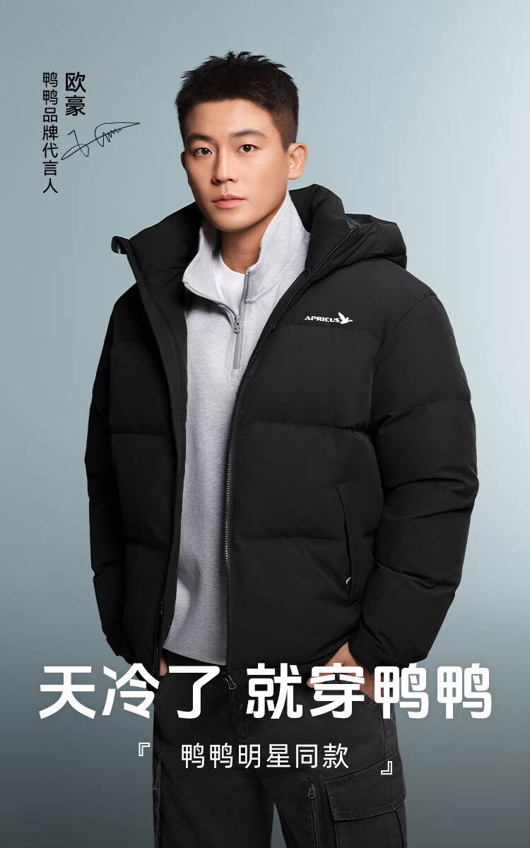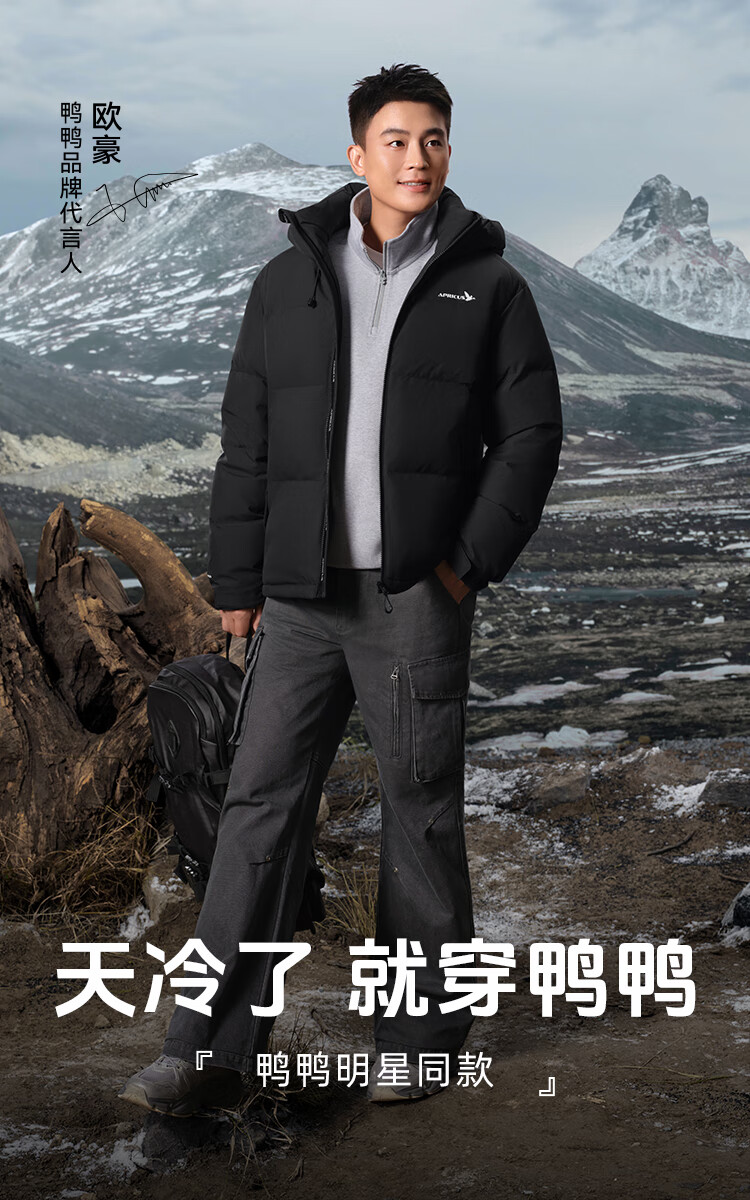 鸭鸭欧豪同款90鸭绒羽绒服短款男连帽面包服2025冬季加厚保暖情侣外套
