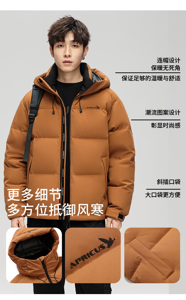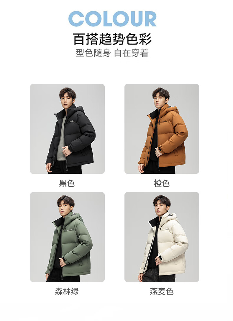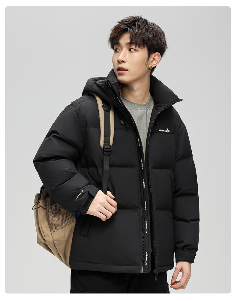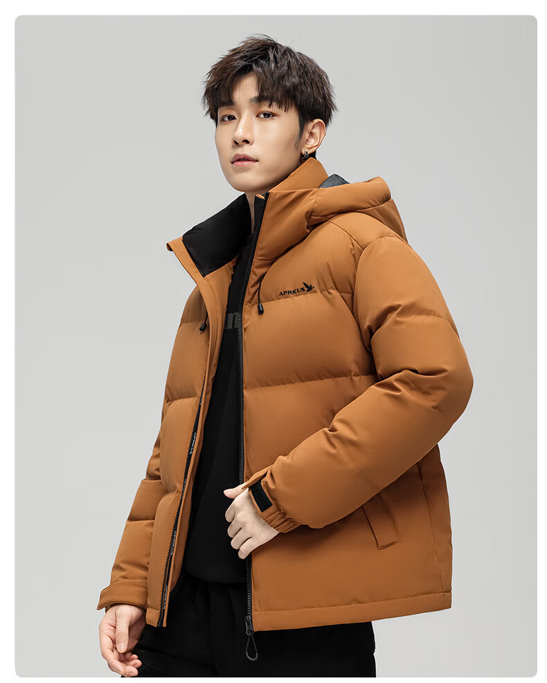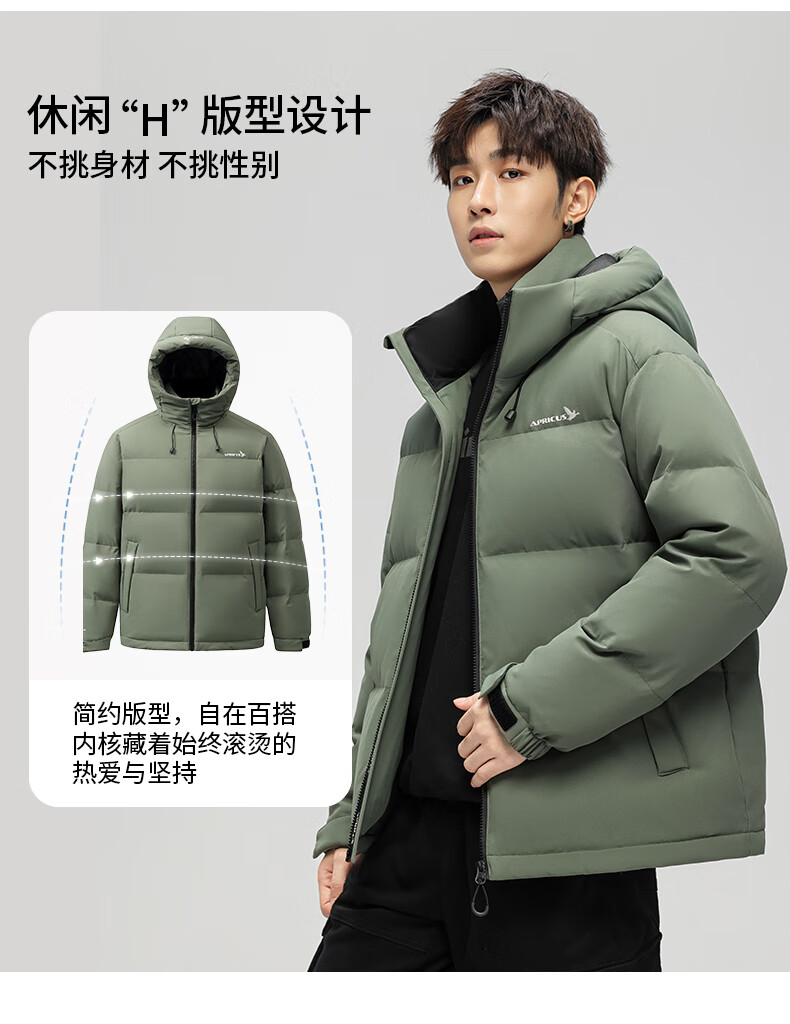 鸭鸭欧豪同款90鸭绒羽绒服短款男连帽面包服2025冬季加厚保暖情侣外套