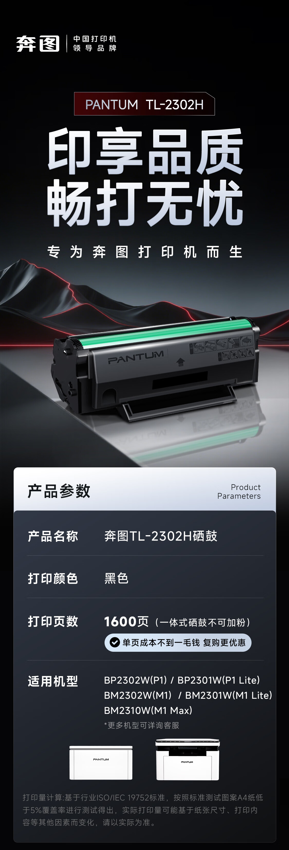 奔图(PANTUM)TL-2302H 奔图原装硒鼓适用P1 lite/M1 lite打印机 M1系列硒鼓 BP2302/2301 BM2302/2301/2310 P1粉盒1600页