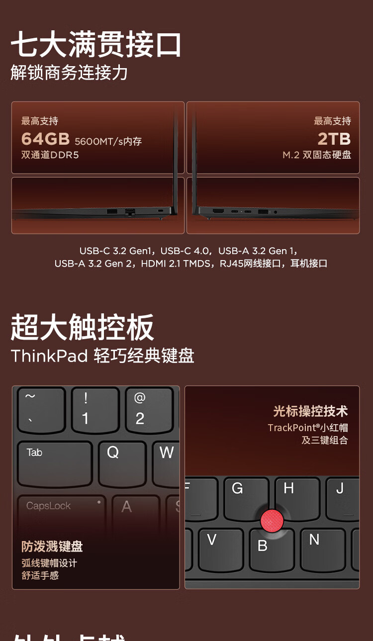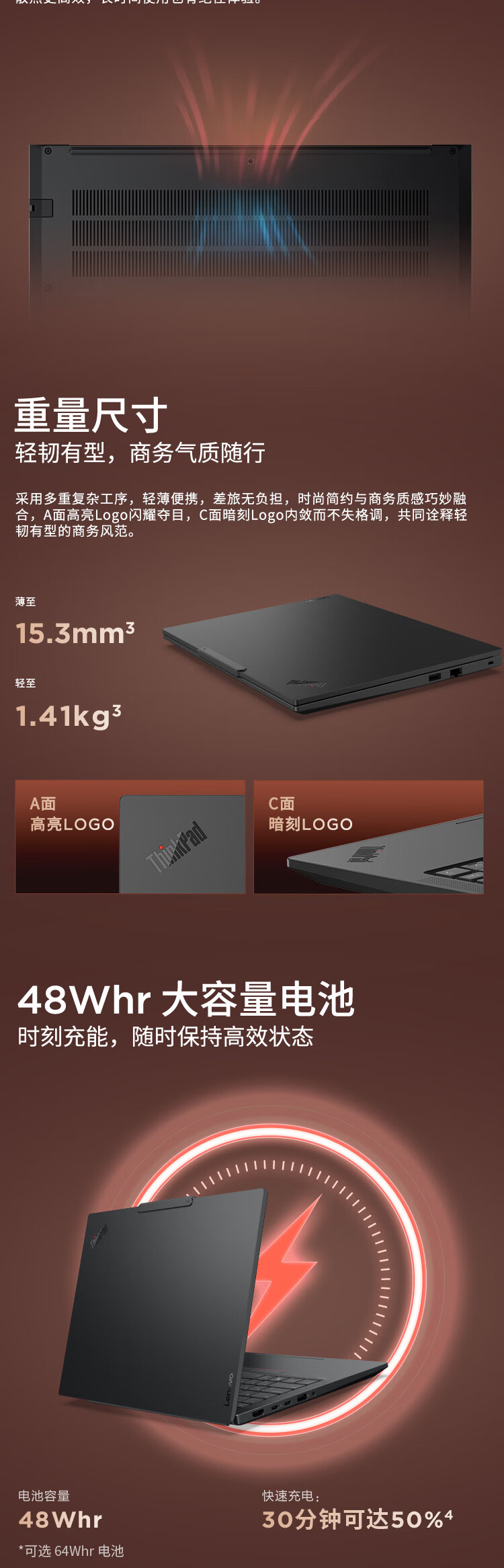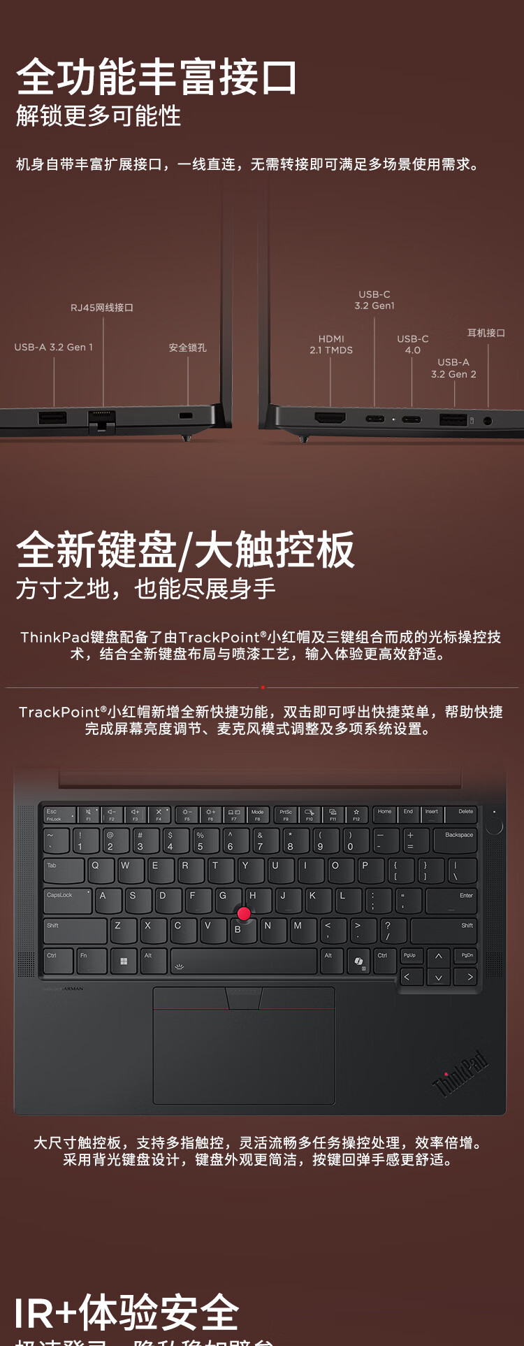 ThinkPad【国家补贴20%】E14 联想轻薄便携笔记本电脑 锐龙R7-H255 32G 1TB 黑 高效办公AI PC
