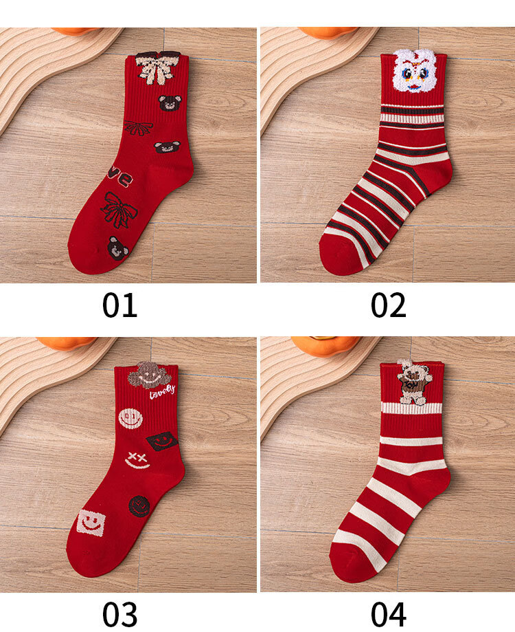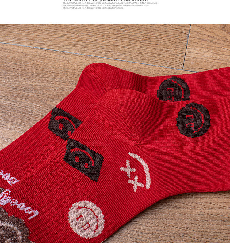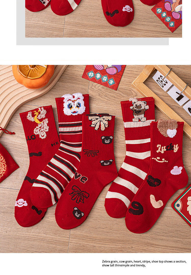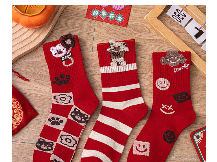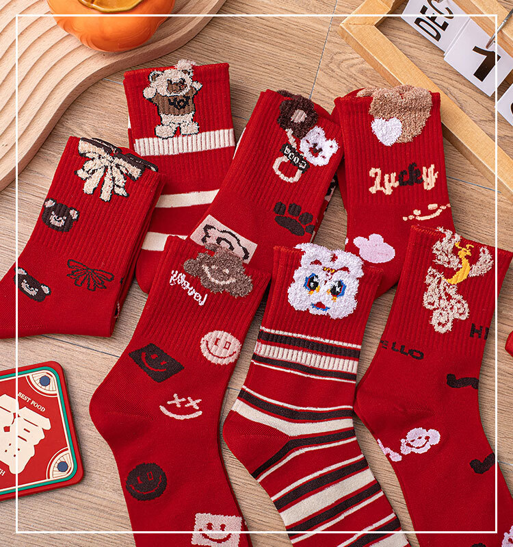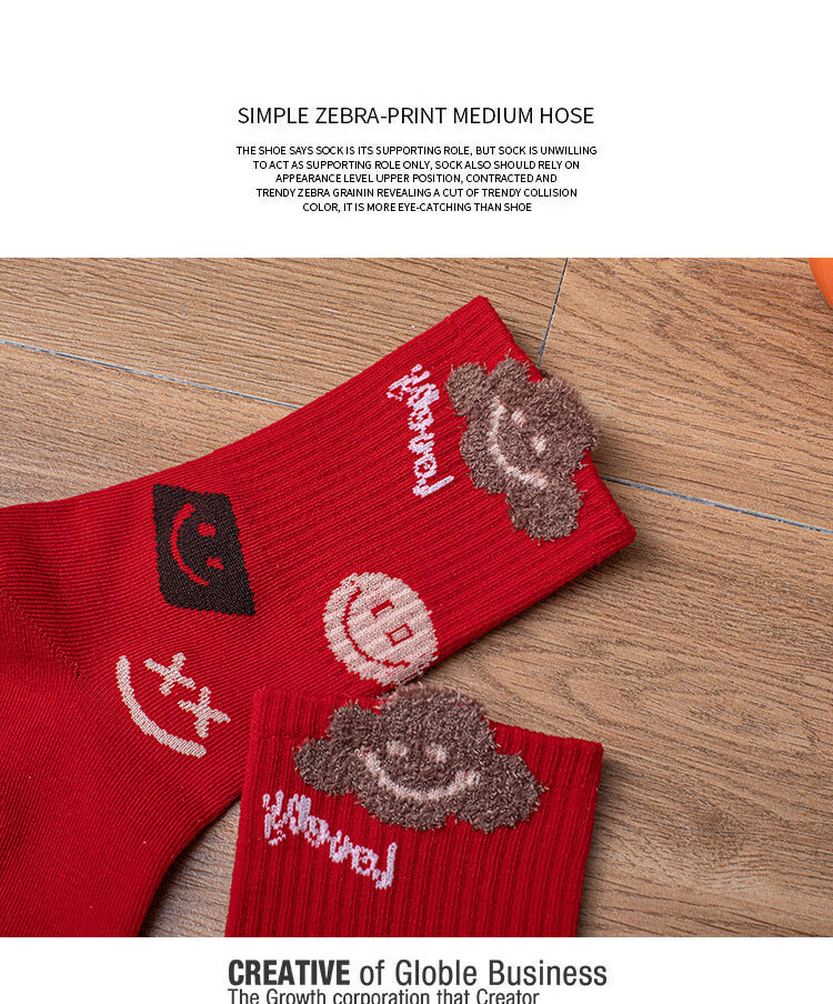 清洁S 红色秋冬中筒袜五双装 保暖百搭红色袜