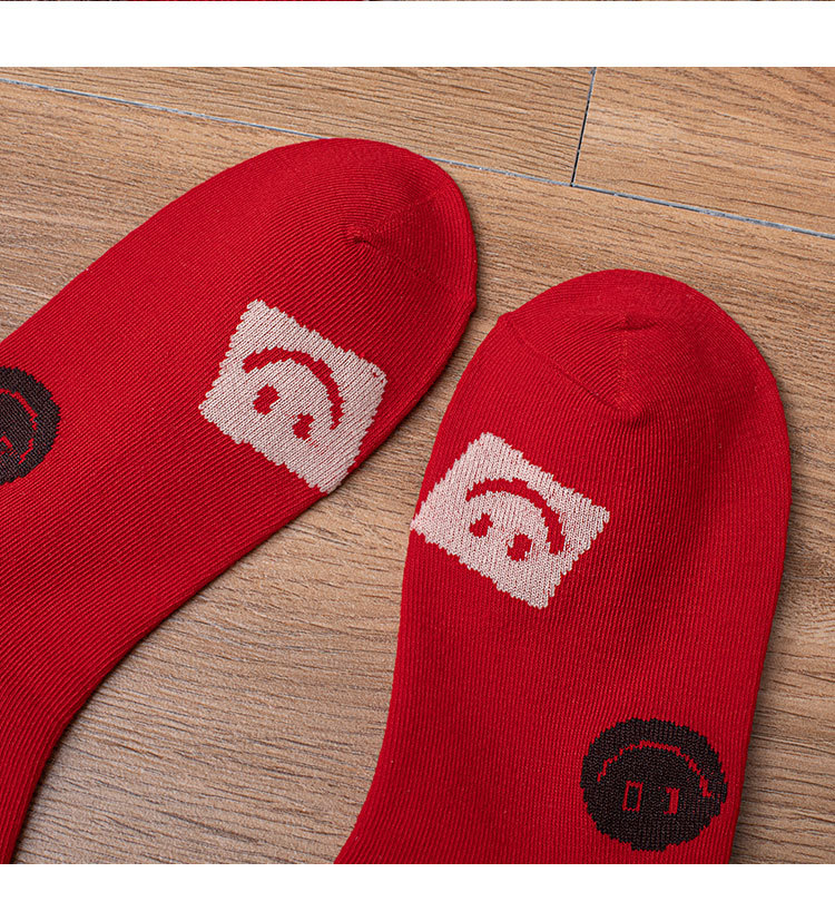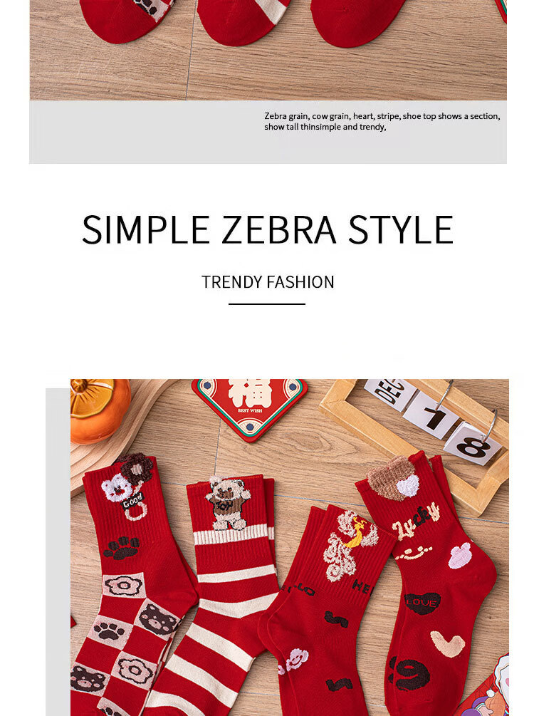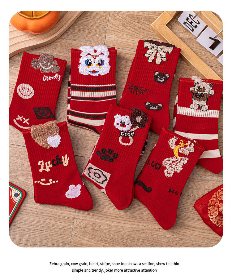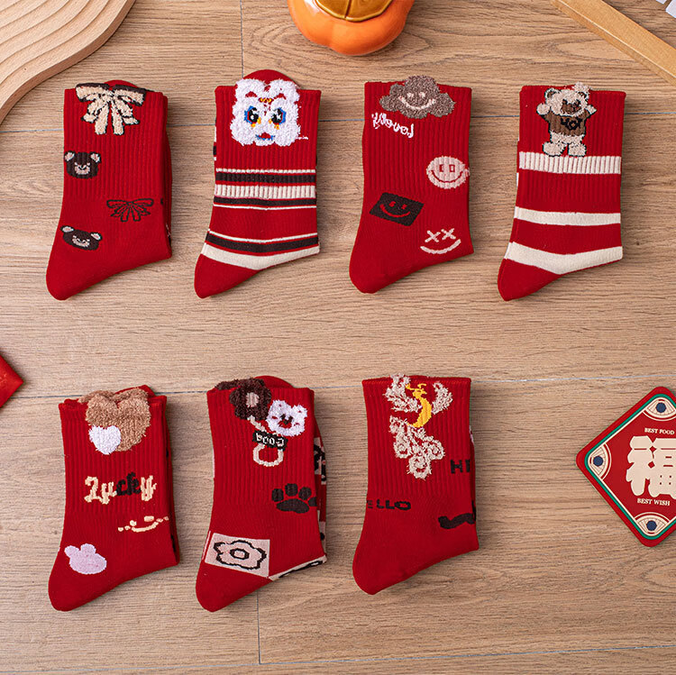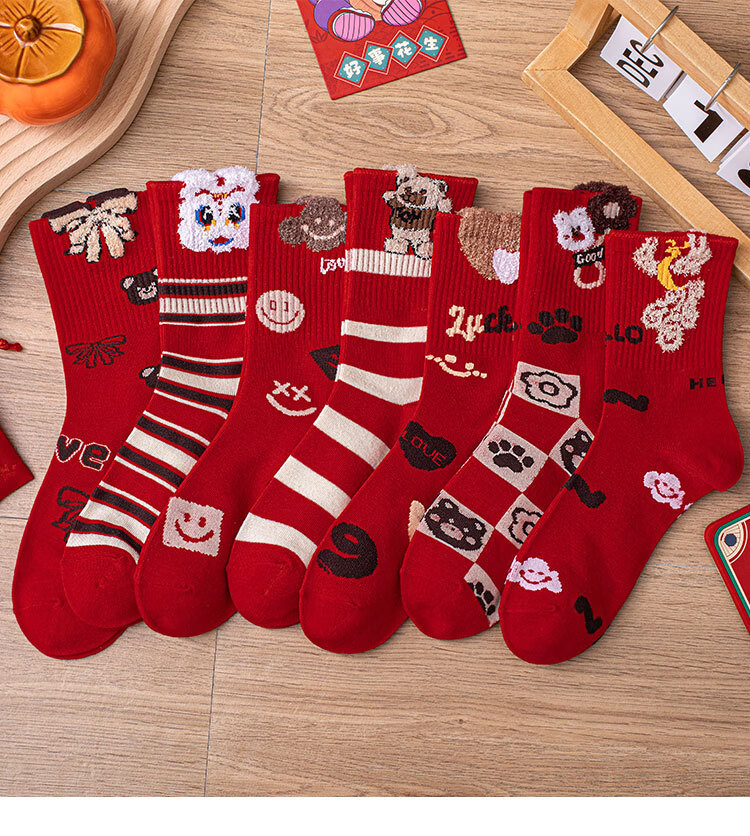 清洁S 红色秋冬中筒袜五双装 保暖百搭红色袜