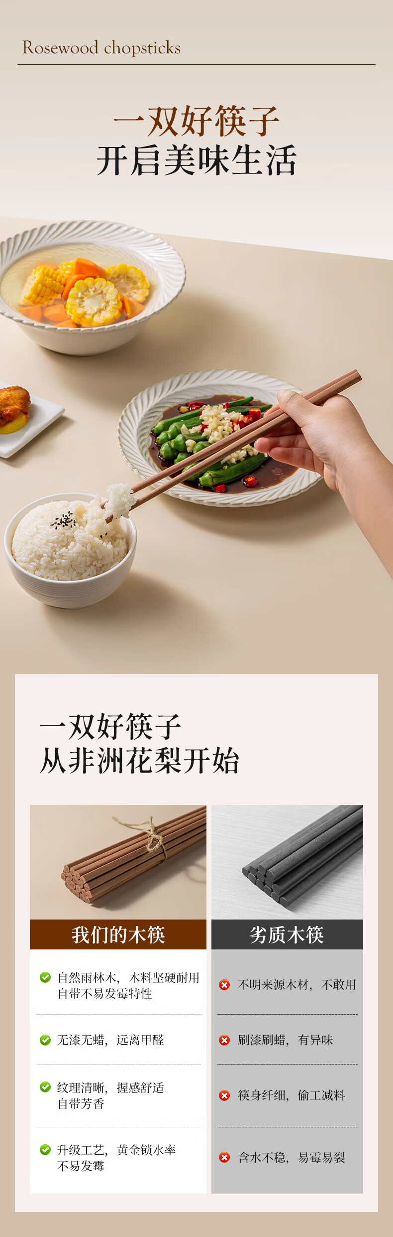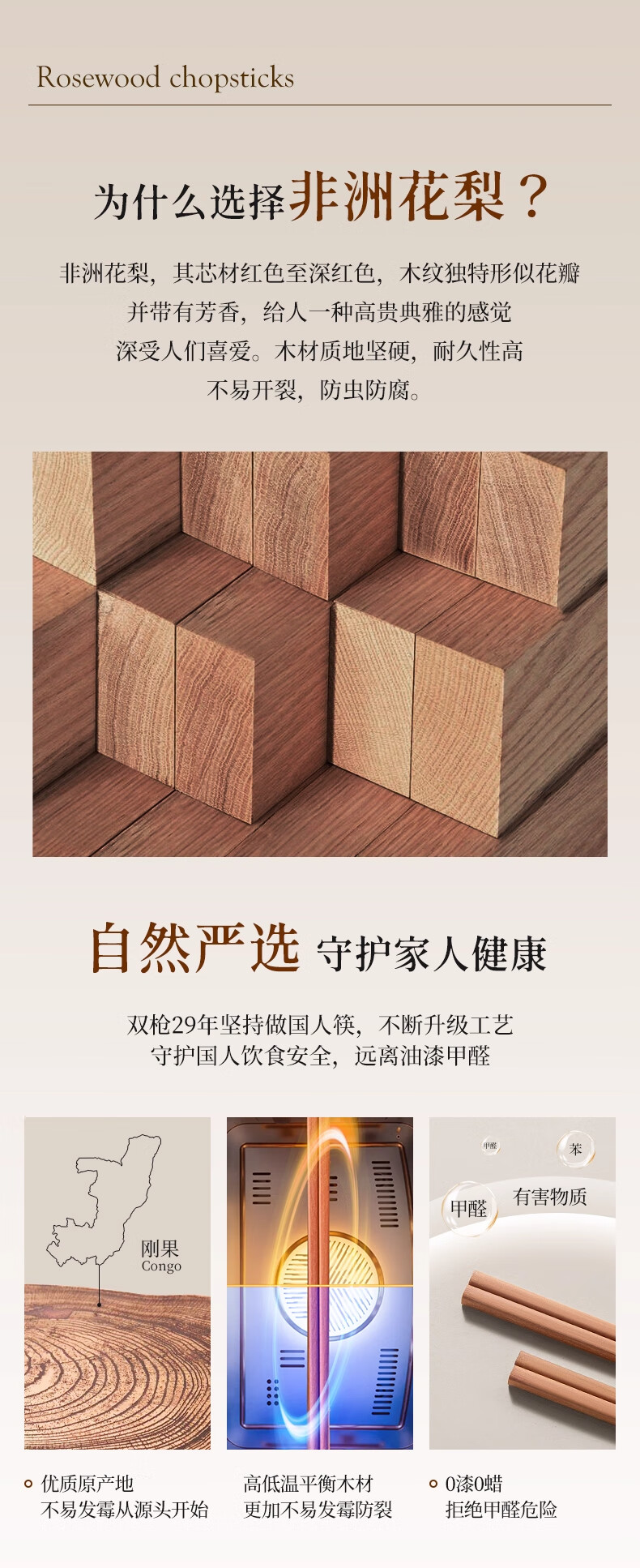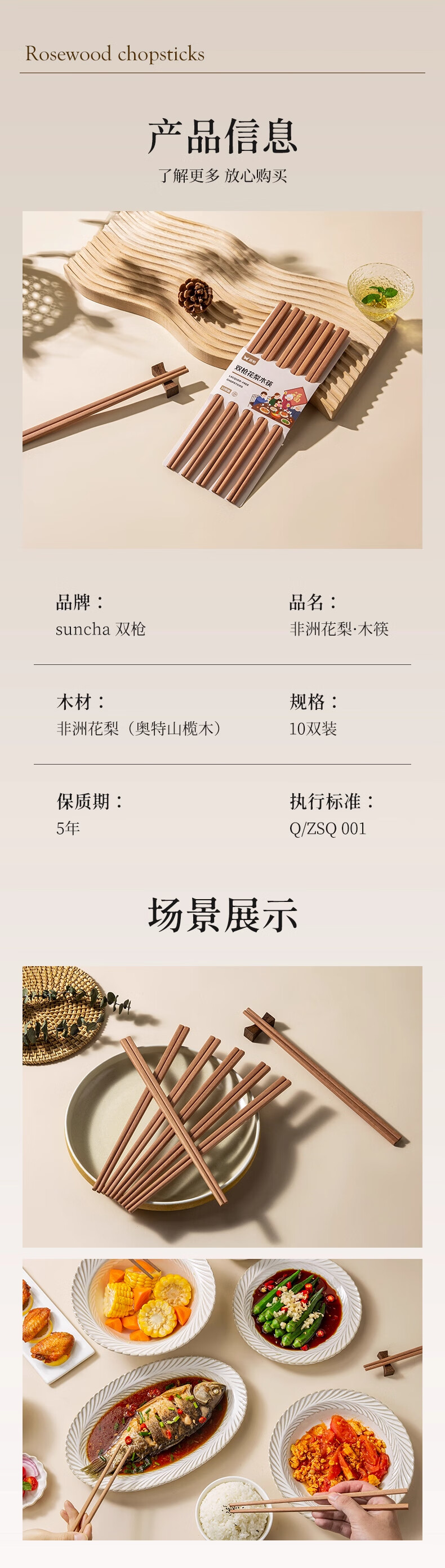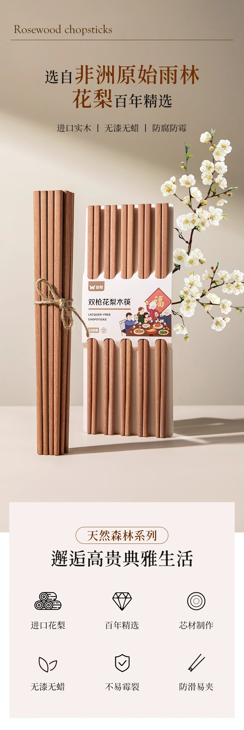 双枪(Suncha) 非洲花梨木筷子天然家用实木无漆无蜡筷子 【活动款】花梨木筷 10双