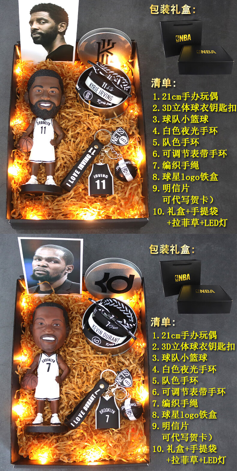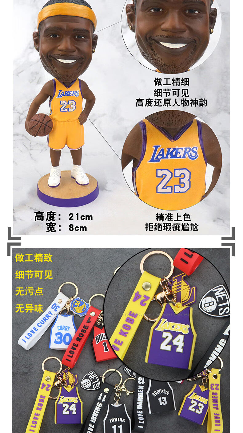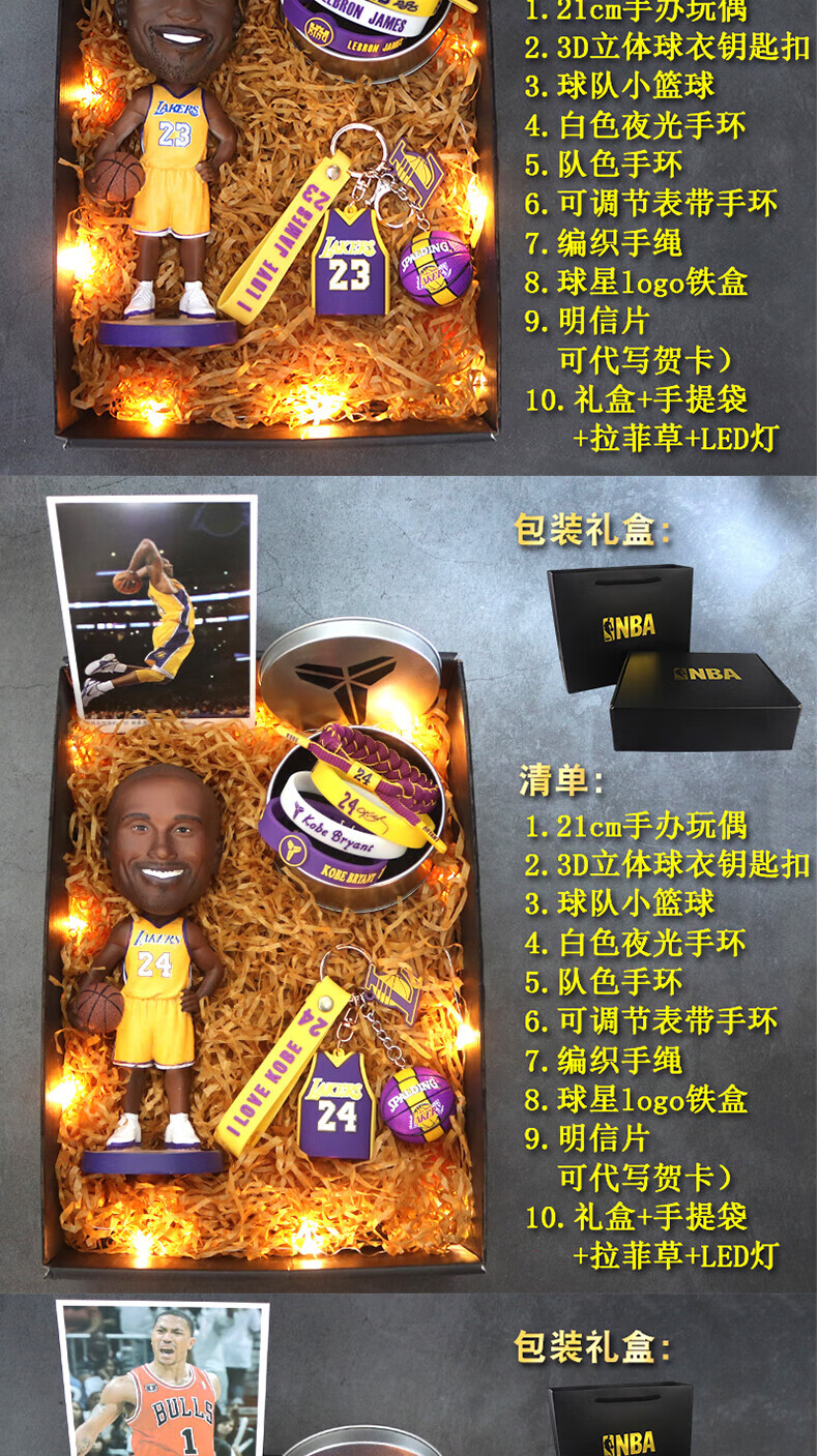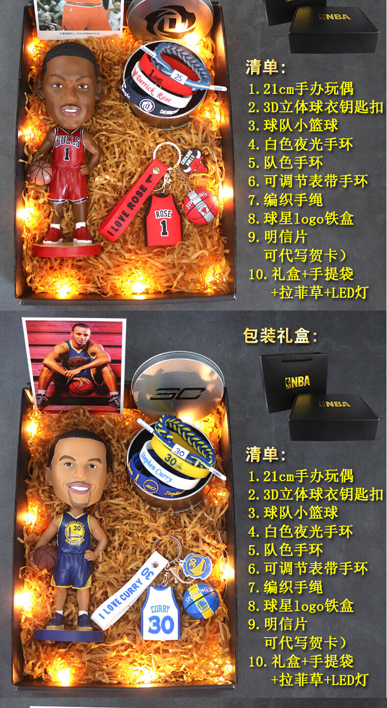 梦京鱼科比詹姆斯欧文库里篮球礼盒NBA生日礼物麦迪保罗斯人偶模型摆件 库里 送卡片+手环+礼袋