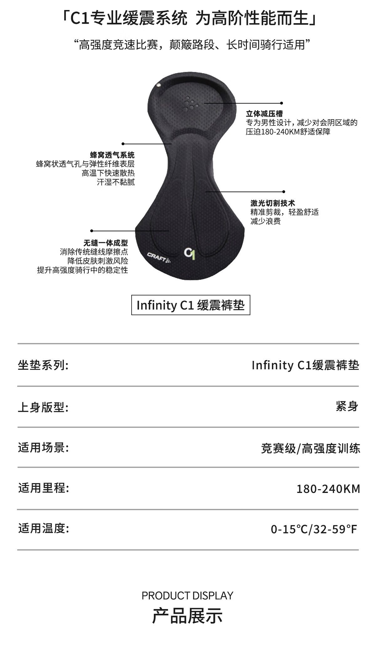 CRAFT骑行Pro Subz男子专业级竞赛骑行裤C1赛用坐垫抗风轻量化公路骑行 经典黑 M