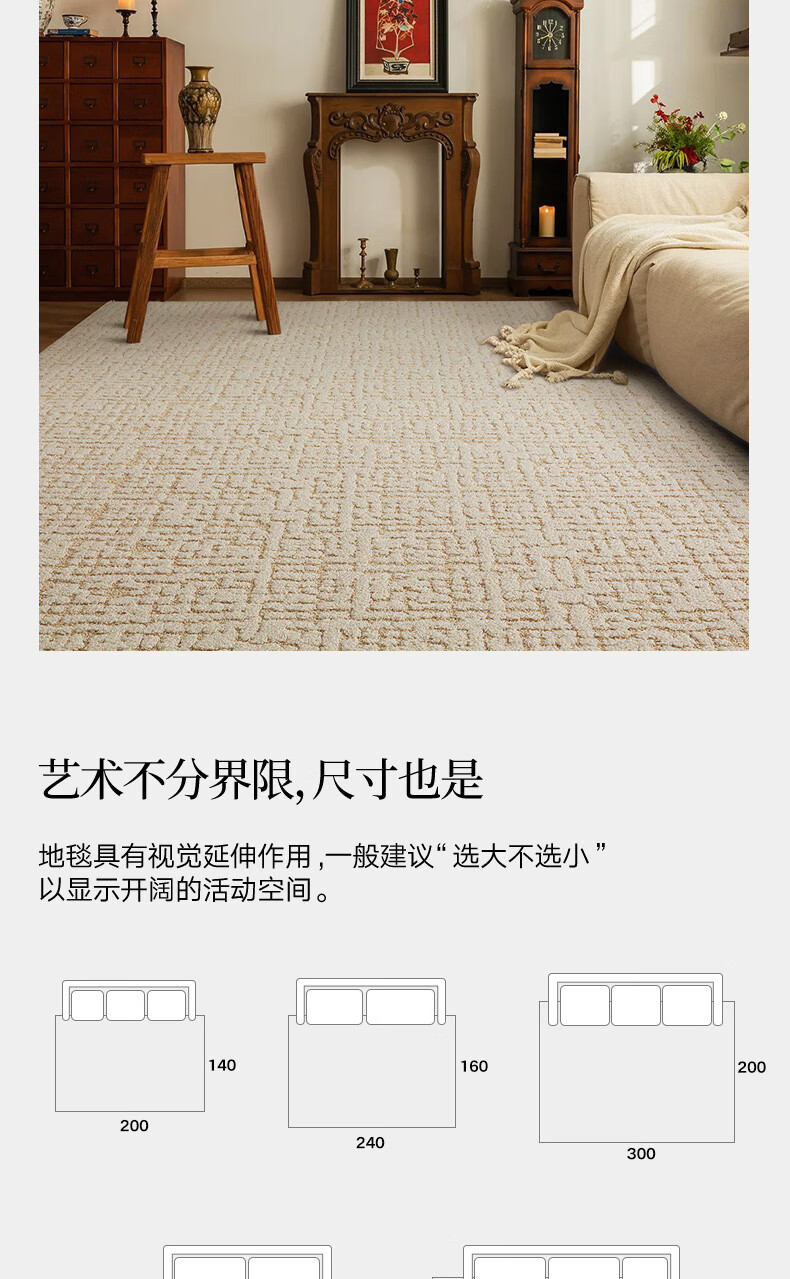 大江大宅标配海藻丝地毯客厅2025新款免洗可擦轻奢高级沙发大地毯卧室 唐顿山庄 300cm*400cm