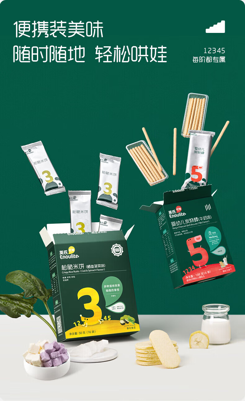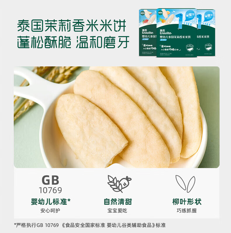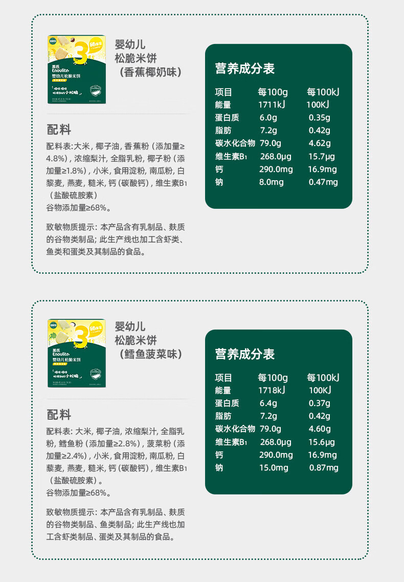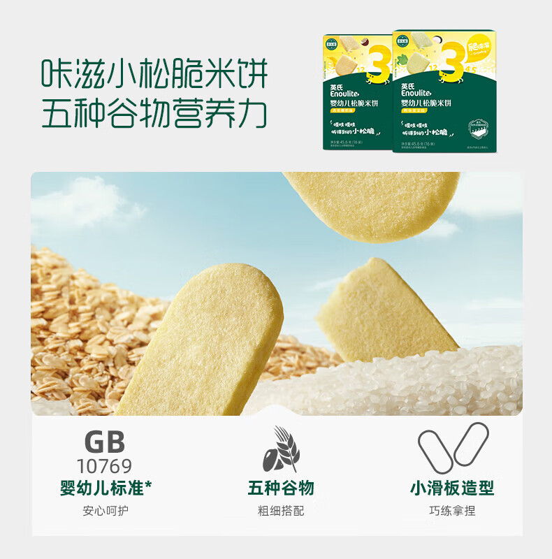 英氏【89选5得9】婴幼儿童宝宝零辅食磨牙棒米饼 饼干华夫小馒头 3阶松脆米饼(香蕉椰奶)45.6g