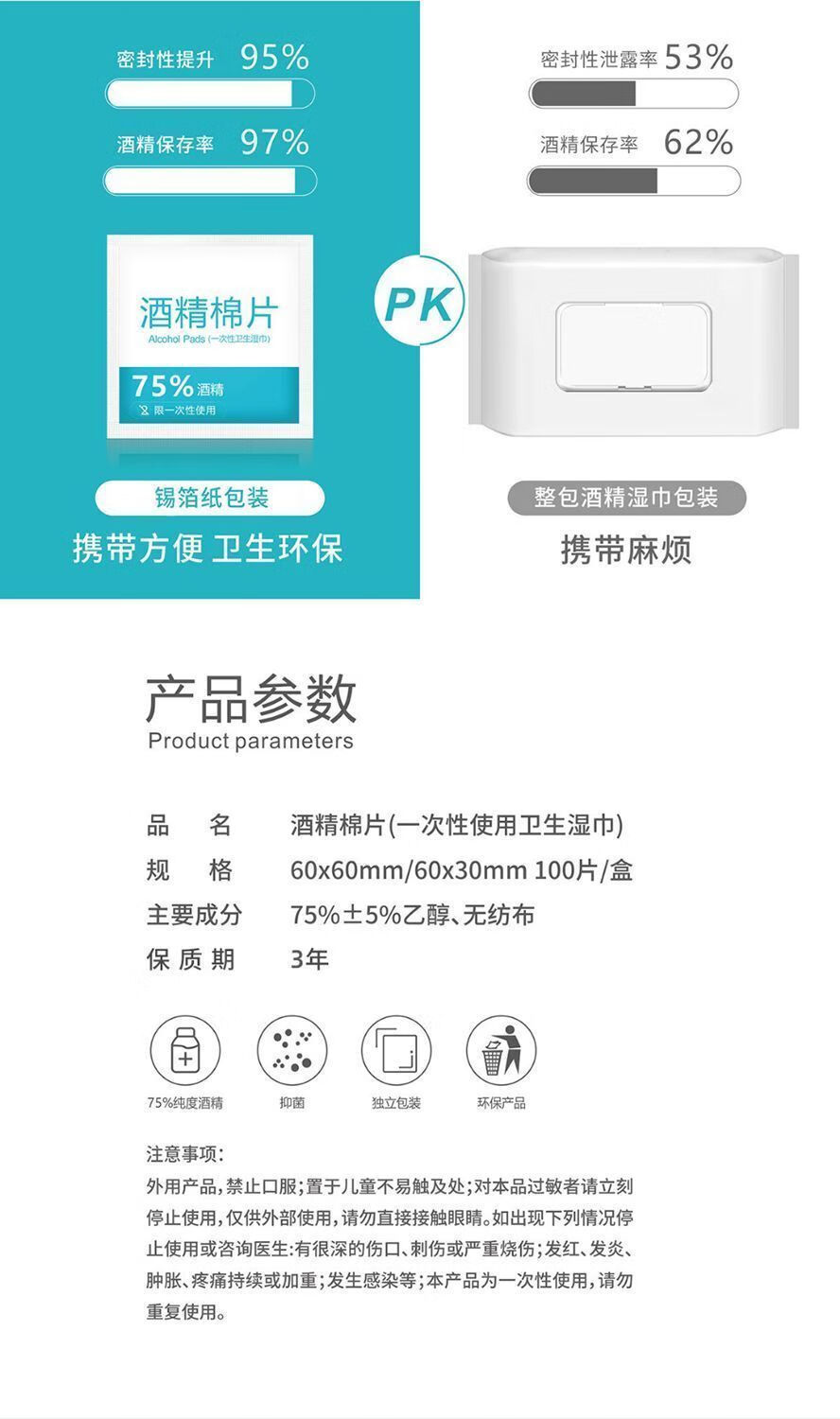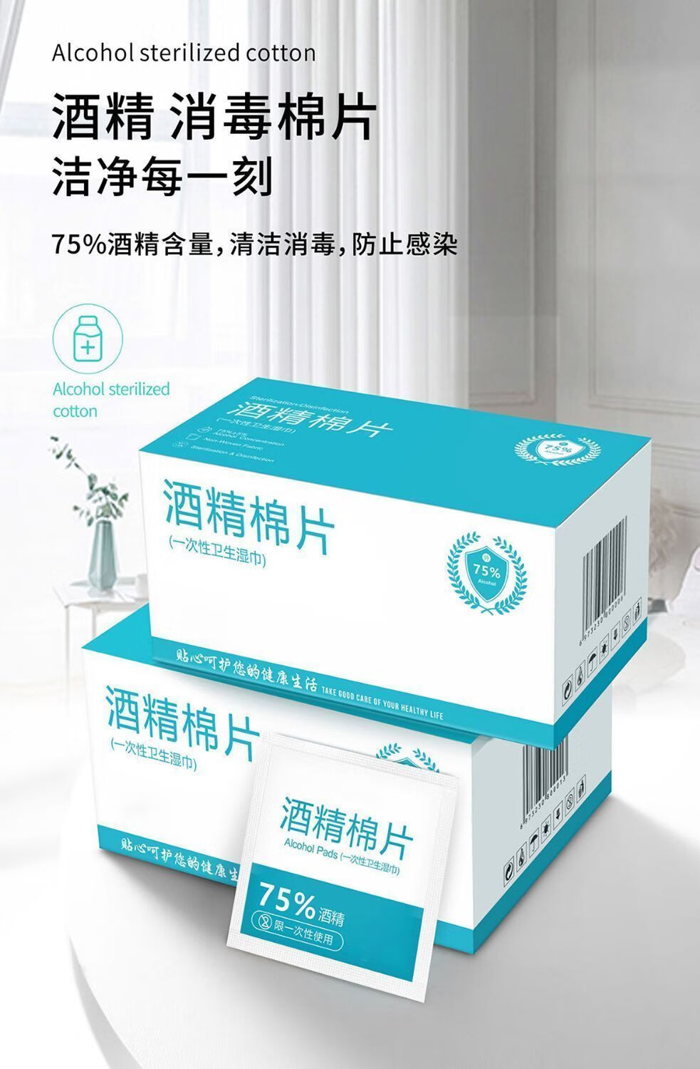 酒精棉片一次性杀菌消毒独立包装小片湿巾便携随身 酒精棉片 药店同款【1盒100片】独立包装