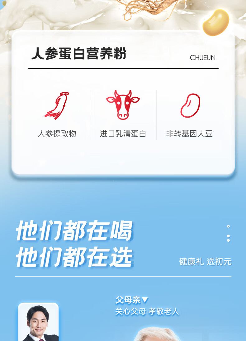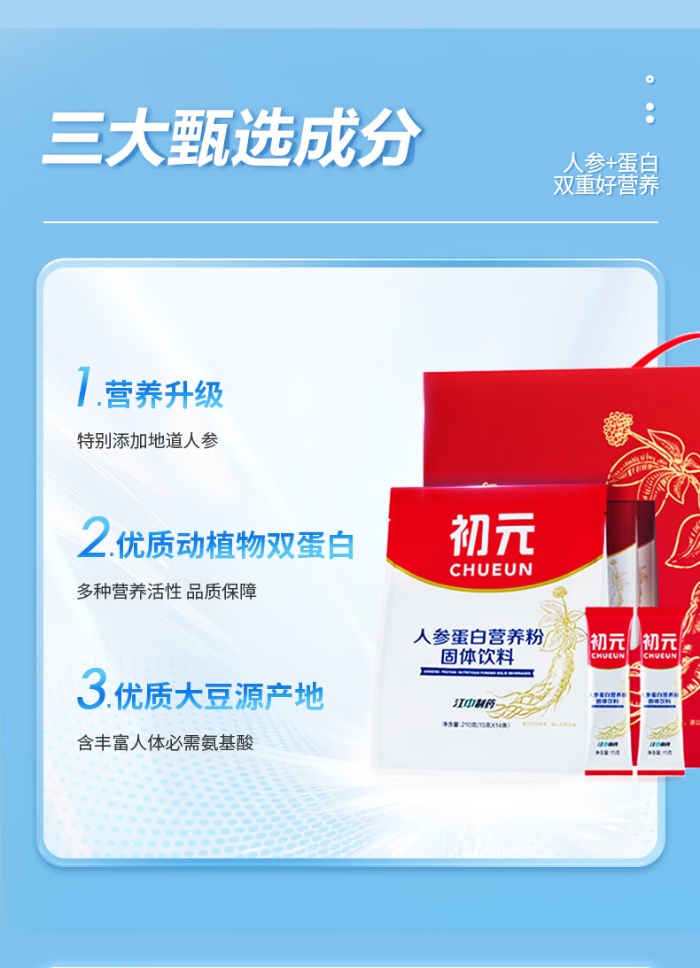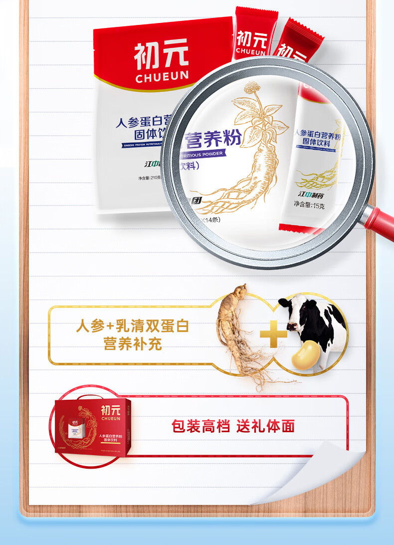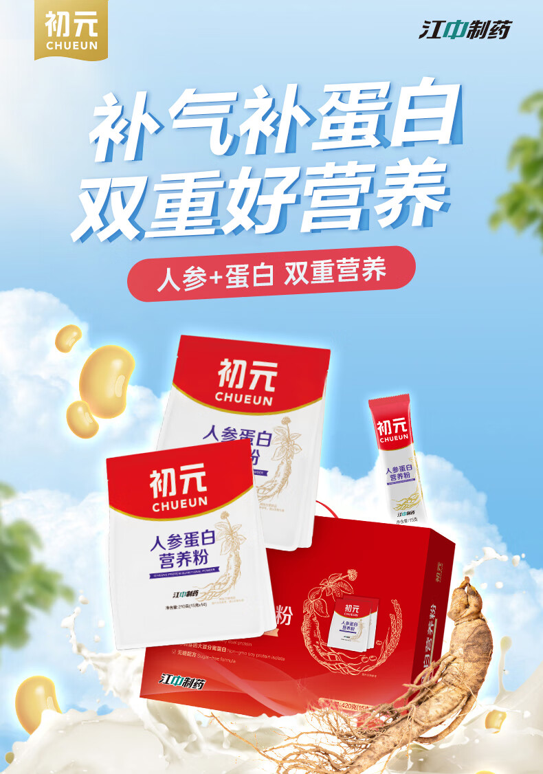 江中蛋白粉 初元人参营养蛋白粉免疫力补充无蔗糖滋补礼品礼盒装 初元pro蛋白粉 400g*2罐 【礼盒装】