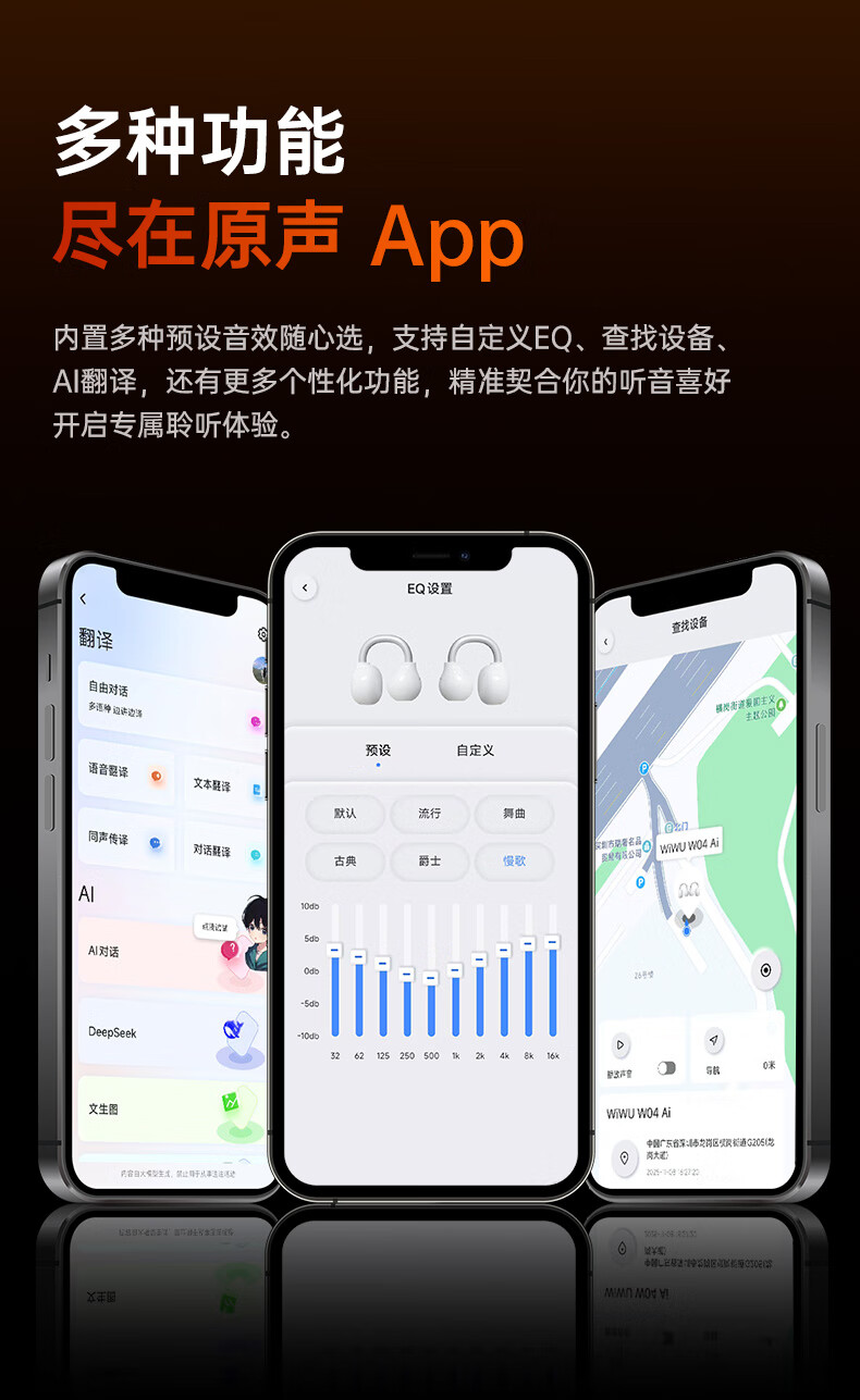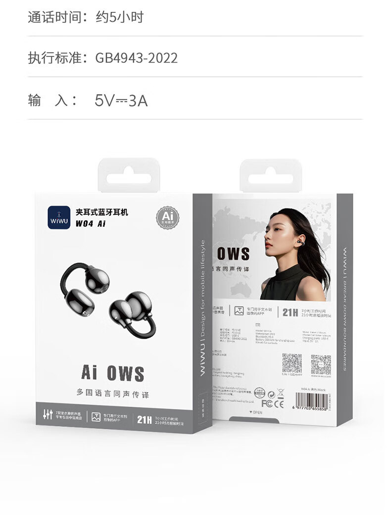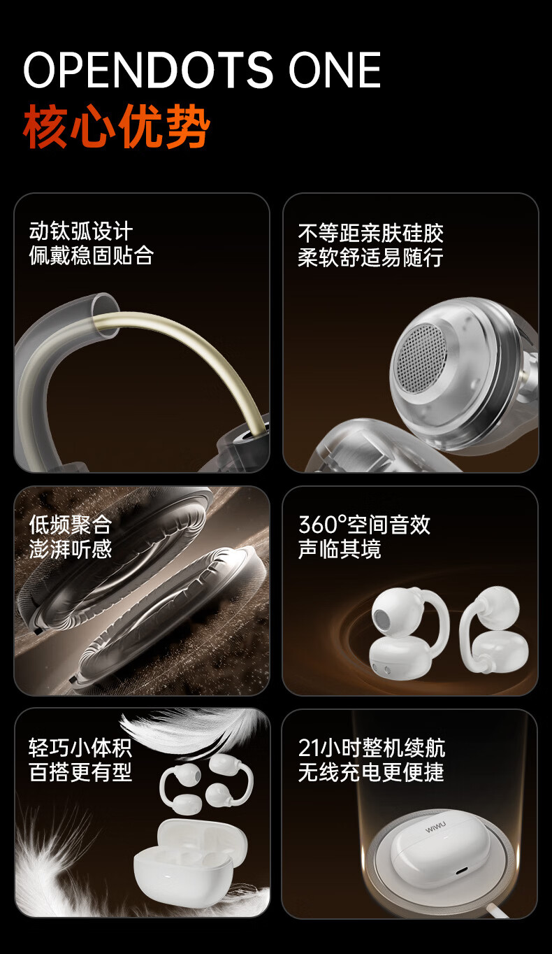 WIWU【EQ调音|空间环绕音效】小云朵耳夹式夹耳式运动耳机开放式无线蓝牙降噪骨传导概念适用苹果安卓 【炫酷黑】l智能AI同步翻译