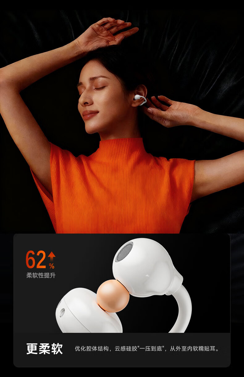 CHUSIRUO【柏林之声丨重磅新品】2025新款无线蓝牙耳机耳夹式不入耳高音质通话降噪FreeClip适配华为苹果 至尊版-云岩白
