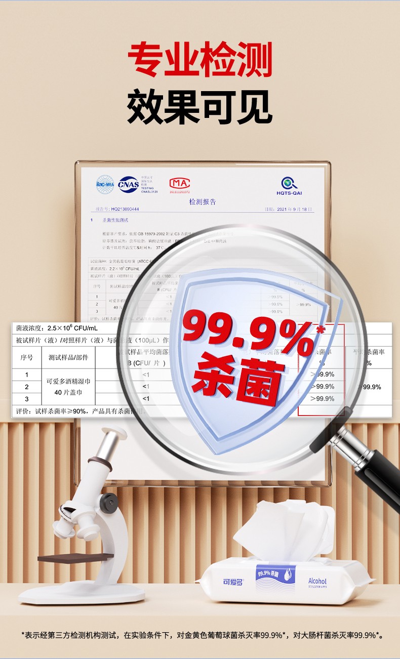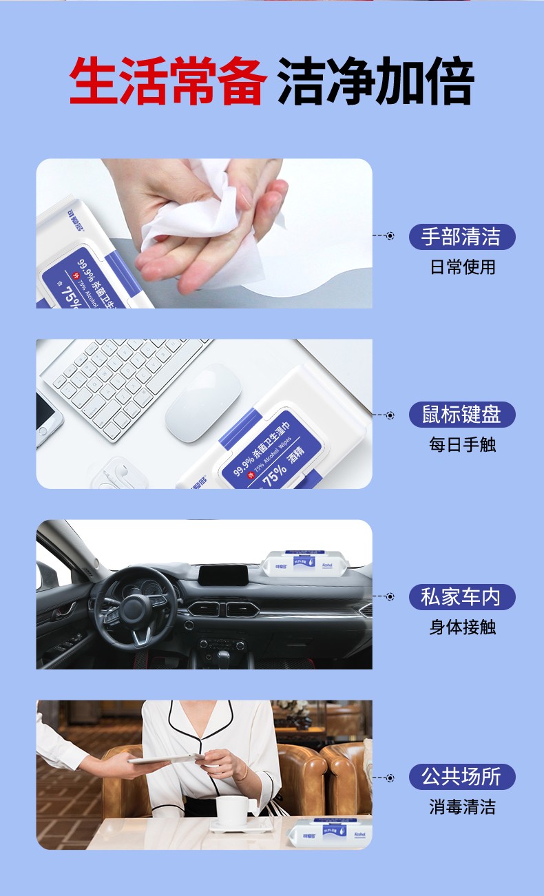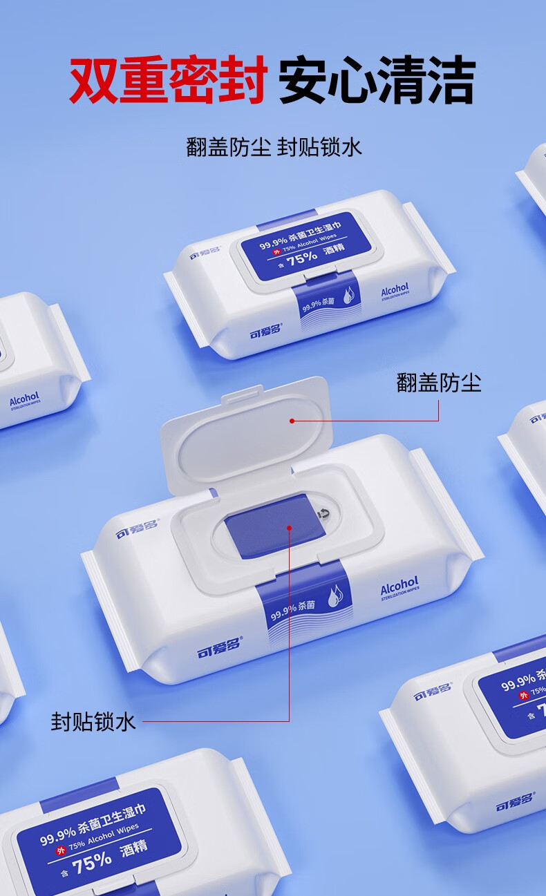 可爱多含75度酒精湿巾纸巾清洁消毒杀菌大包实惠学生办公家用卫生 40抽*4包