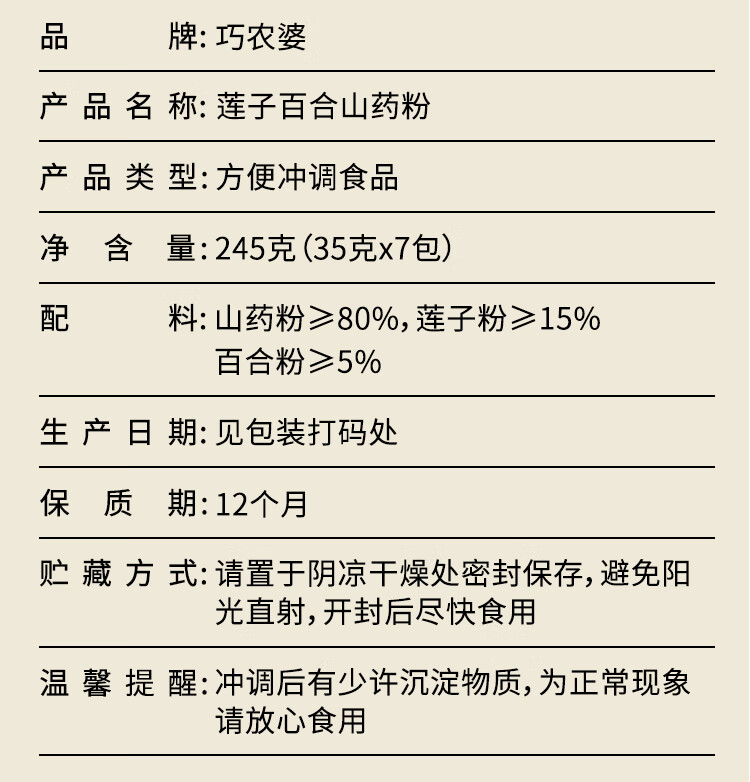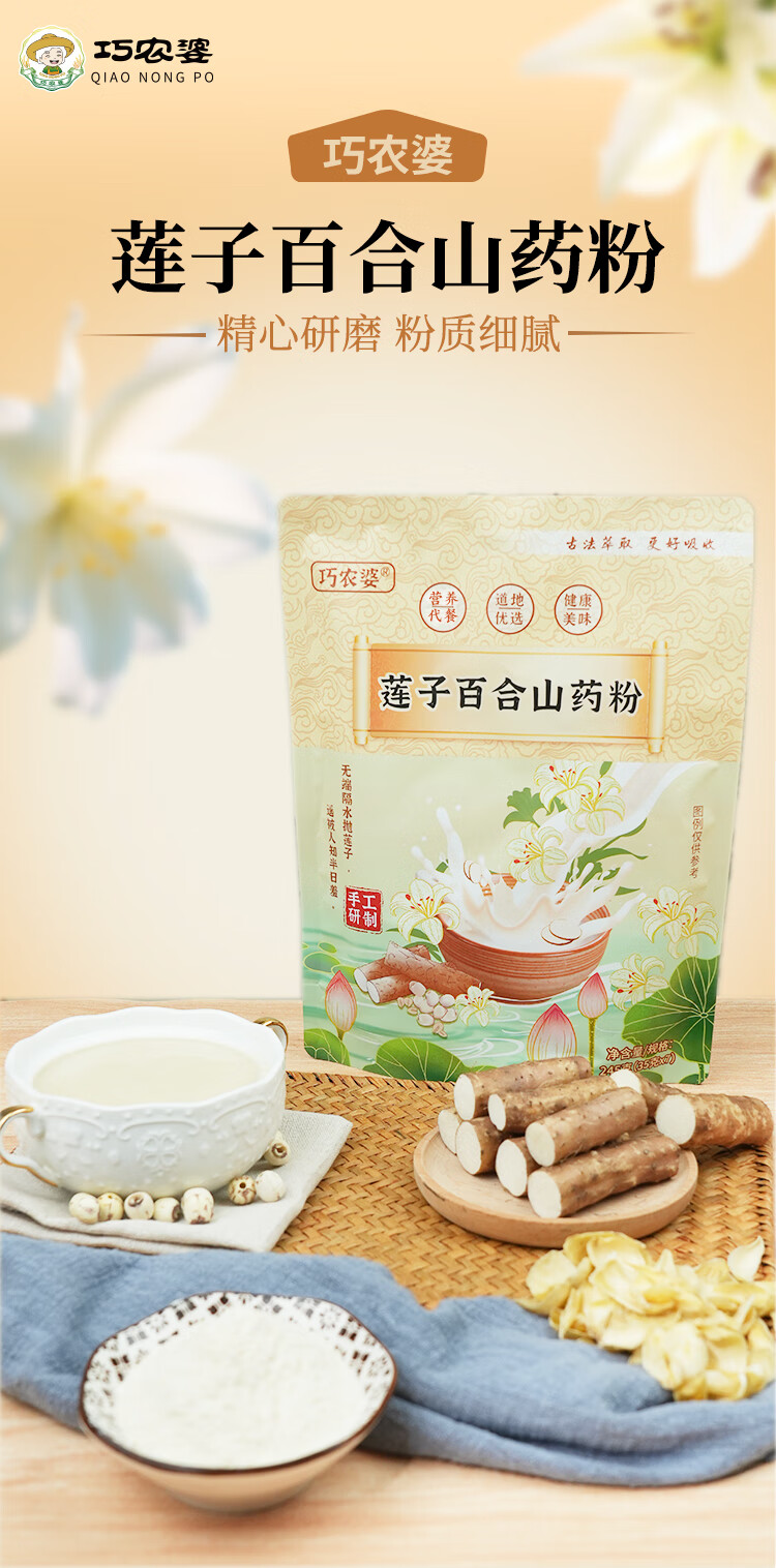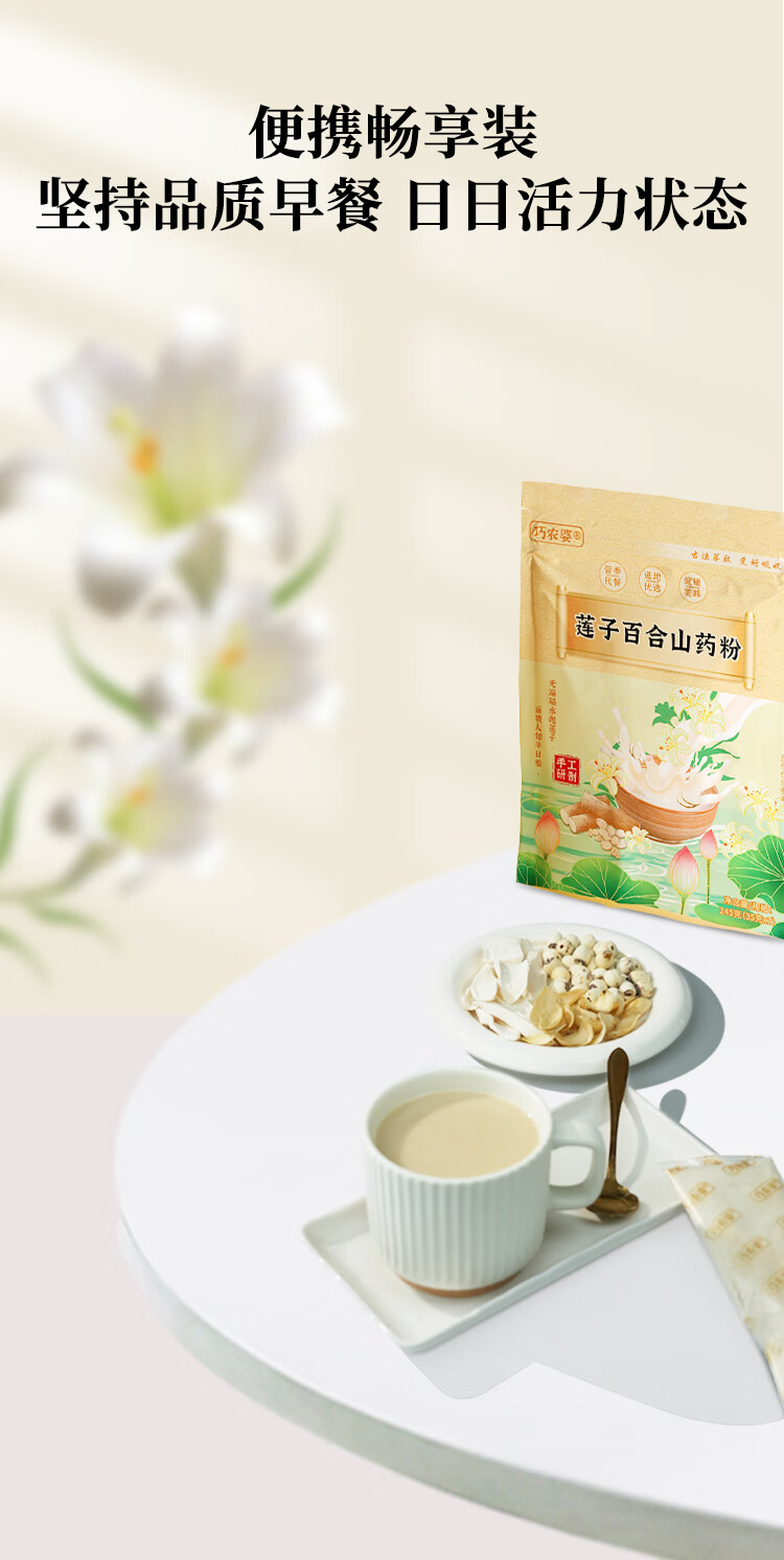 巧农婆莲子百合山药粉营养养胃早餐代餐即食无糖免煮冲泡速食米糊送长辈 【推荐周期装】 245g*4袋 (28小包)
